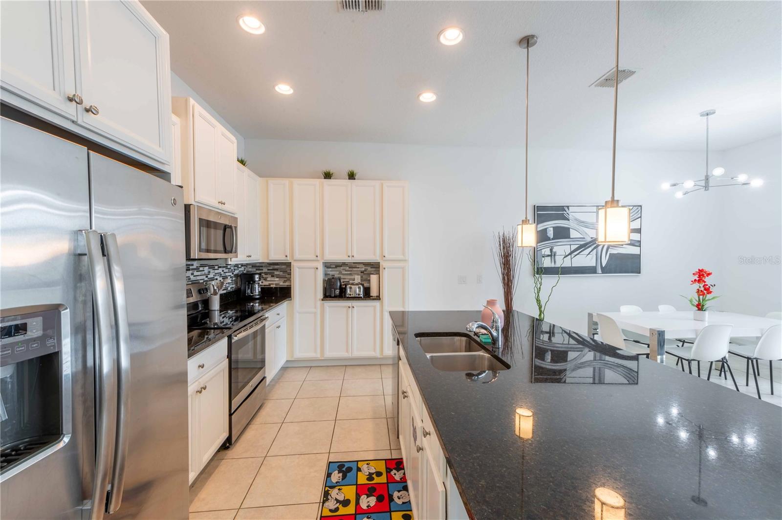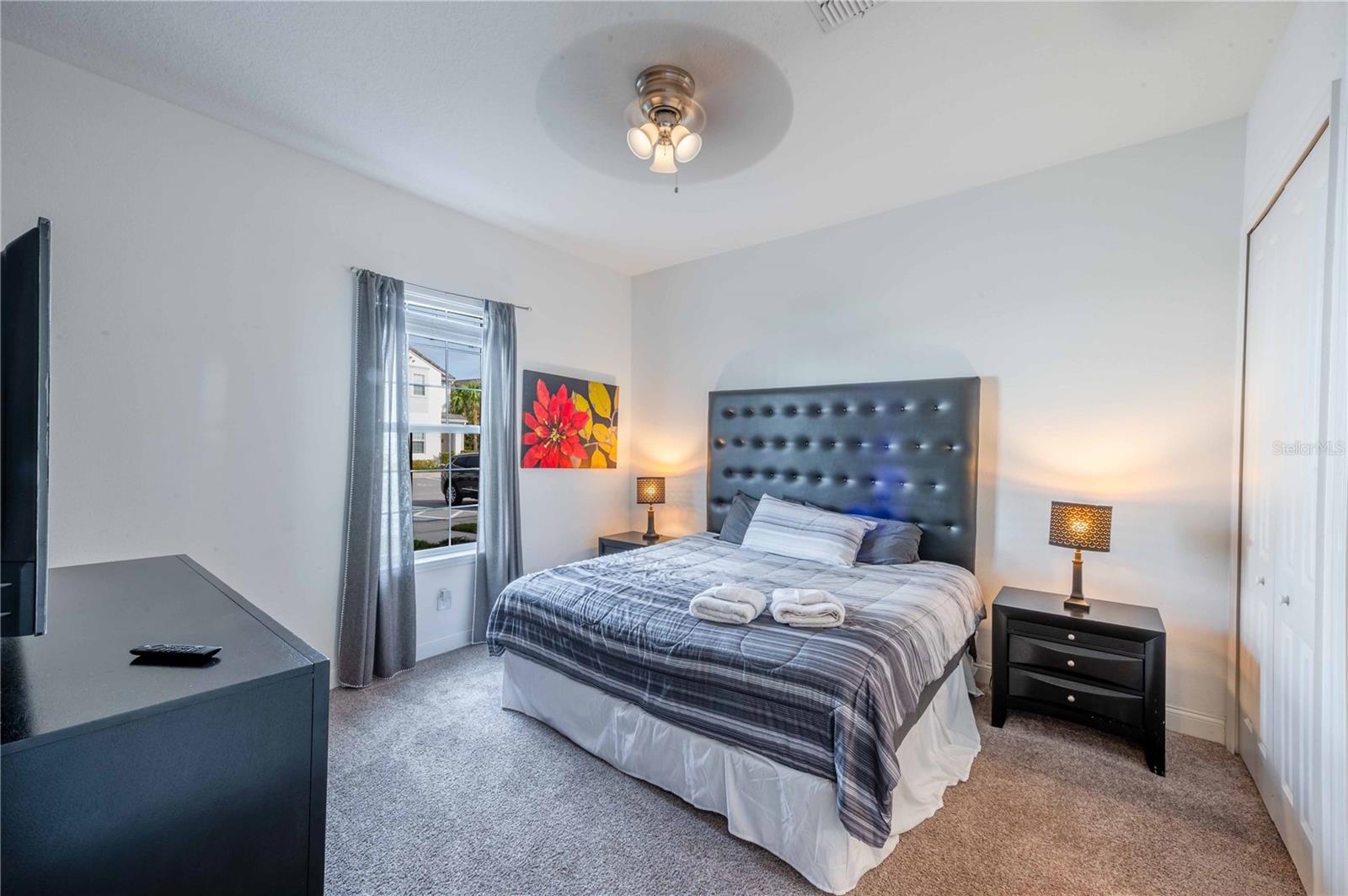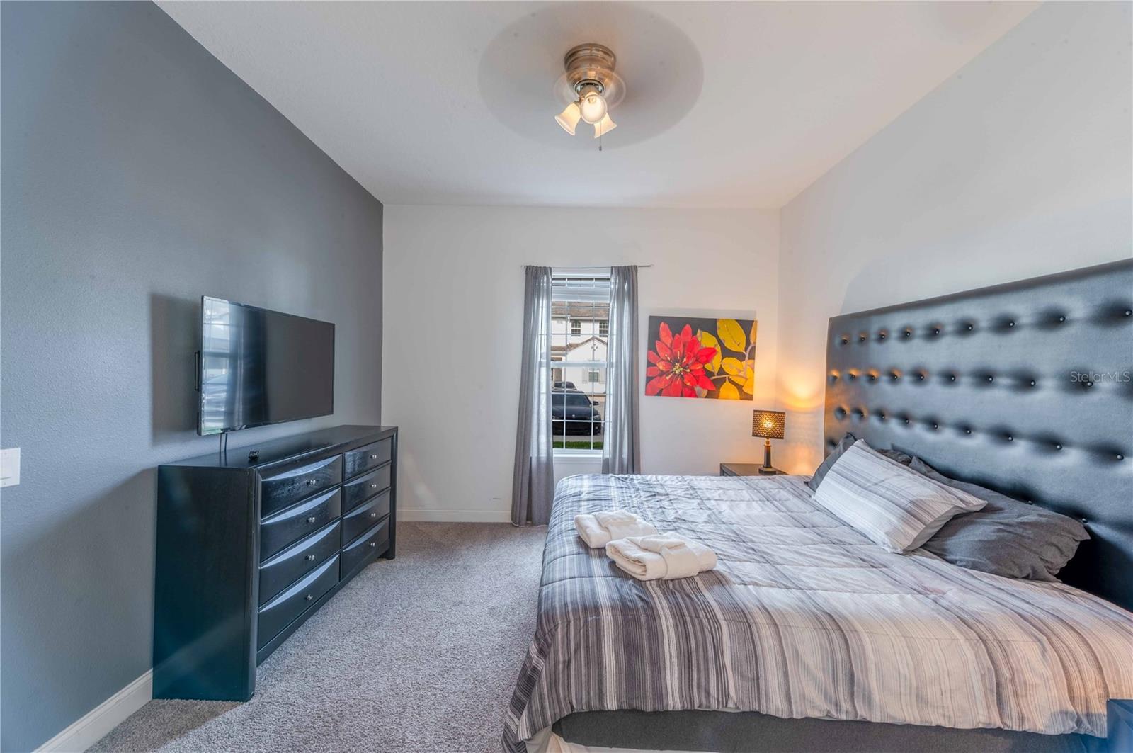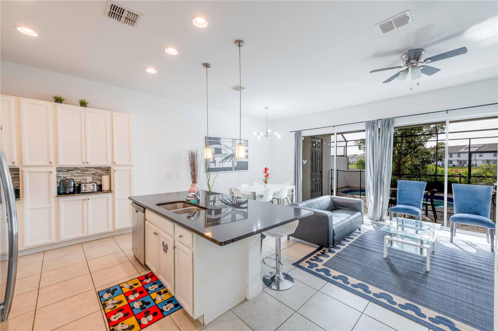 SELLER WILL PAY FOR 1 YEAR OF BUYERS HOA FEES AT CLOSING WITH A FULL PRICE OFFER. Step into this beautifully fully furnished 3-bedroom, 2.5-bathroom townhouse, designed with a contemporary flair and located in the heart of Festival Bay Resort—just minutes away from Orlando’s most iconic attractions! Only 10 minutes to Disney World, 15 minutes to SeaWorld, and 20 minutes to Universal Studios, this home is perfectly situated for both fun and convenience. Nearby, you’ll find top-rated restaurants, convenience stores, and pharmacies, making it an ideal location for exploring Orlando and Central Florida. The gourmet kitchen is a chef’s dream, featuring stainless steel appliances, granite countertops, a spacious island, 42" cabinets with custom moldings, and a stylish backsplash. The bright and airy open-concept living and dining areas create the perfect space for family gatherings or entertaining, complete with a 55" TV and seating for six at the dining table. Sliding glass doors flood the space with natural light and lead to a covered patio, where you can dine al fresco or relax in Florida’s tropical climate. Enjoy the heated pool with a jacuzzi, privacy walls, and serene conservation views—a peaceful retreat right in your backyard. The primary suite on the ground floor is your private oasis, featuring a luxurious king-size bed and an ensuite bathroom with a unique sliding door for added convenience. Upstairs, you’ll find a versatile flex room with a sofa bed, two additional bedrooms, and a beautifully appointed bathroom with double sinks and granite countertops—perfect for hosting family and friends. This townhouse is packed with extras: HOA includes internet, cable, garbage, pest control, water, and exterior/ground maintenance. Resort-style amenities: fitness center, poolside restaurant, resort pool, water park, game room, and more! Whether you're looking for a stunning vacation home or a profitable investment property, this home offers short- and long-term rental options to suit your needs. Don’t miss the chance to own this slice of paradise. Schedule your showing today and discover everything this incredible home has to PROVIDE!