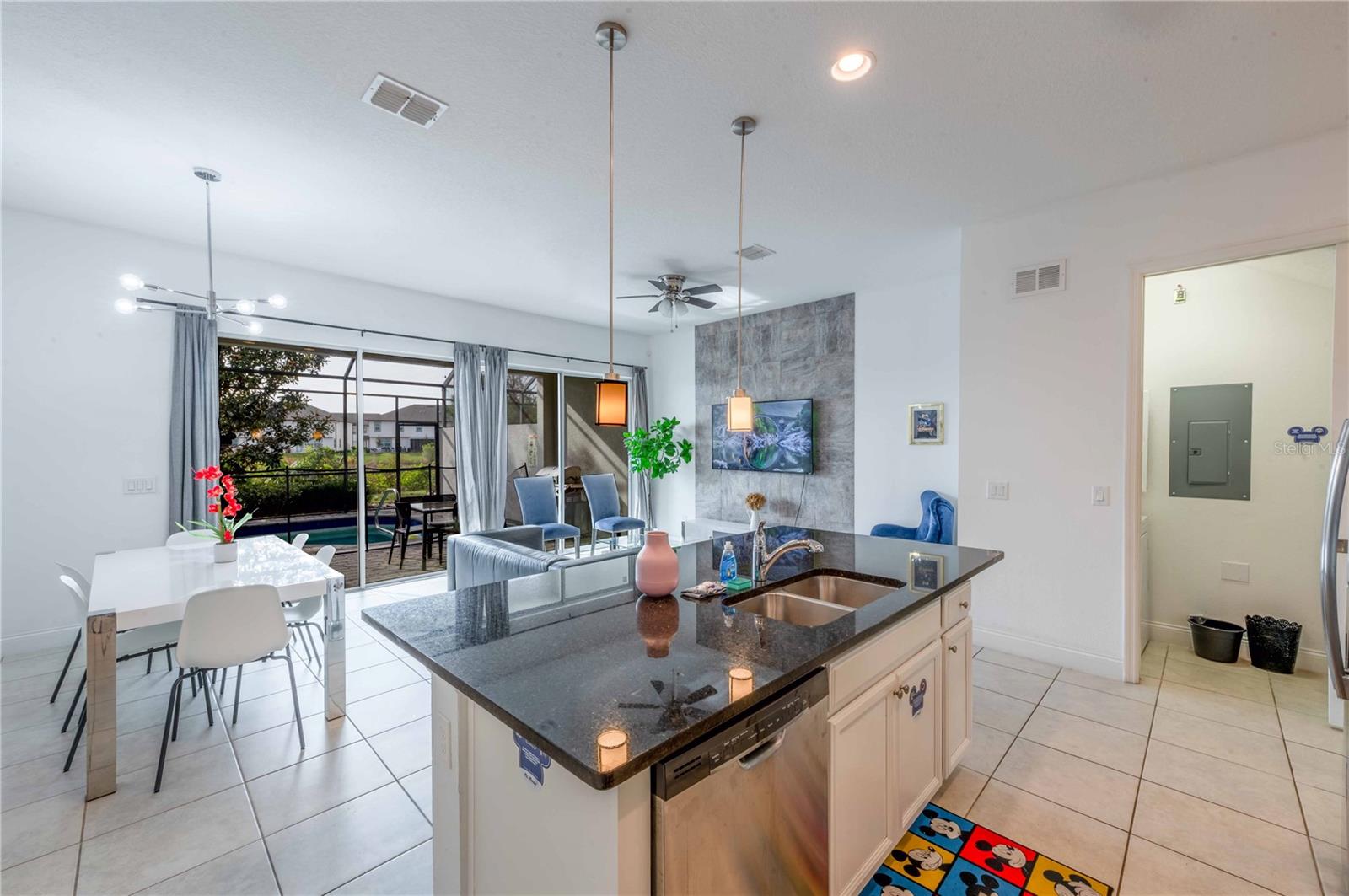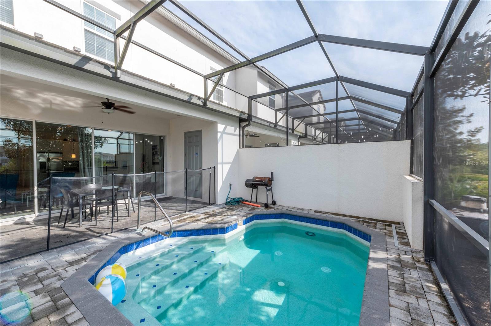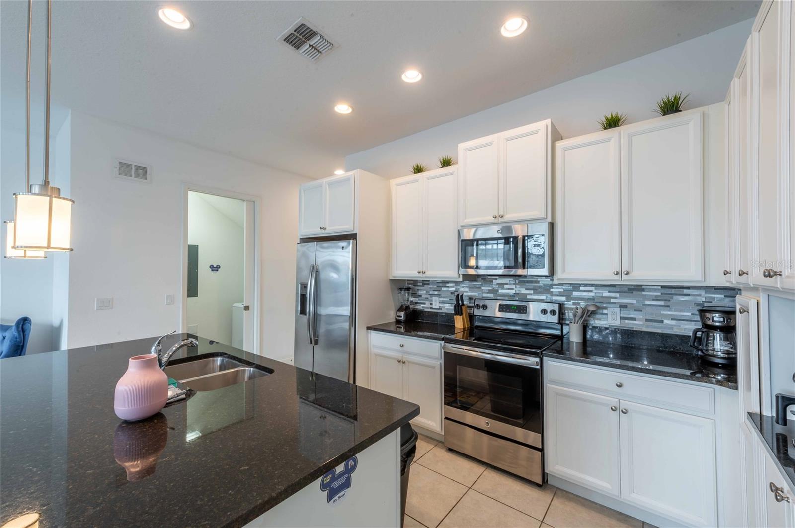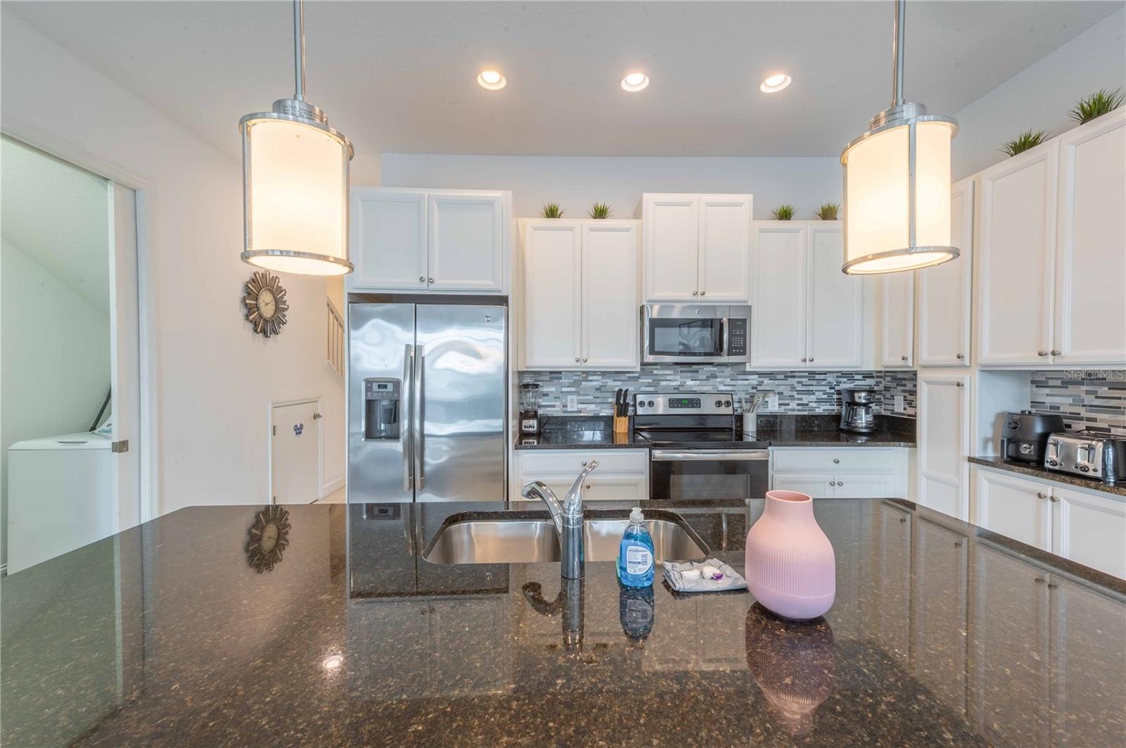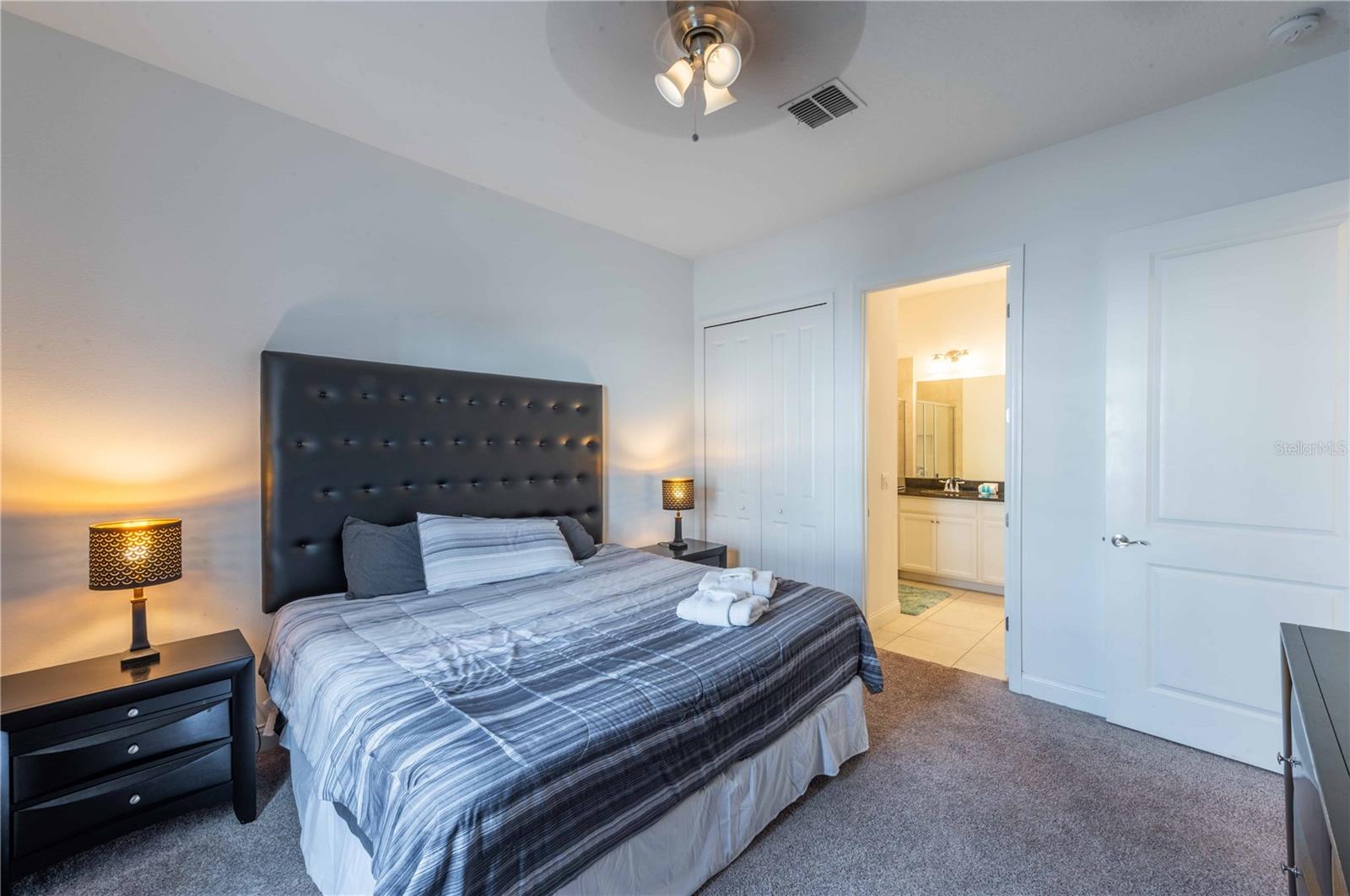 SELLER WILL PAY FOR 1 YEAR OF BUYERS HOA FEES AT CLOSING WITH A FULL PRICE OFFER. Step into this beautifully fully furnished 3-bedroom, 2.5-bathroom townhouse, designed with a contemporary flair and located in the heart of Festival Bay Resort—just minutes away from Orlando’s most iconic attractions! Only 10 minutes to Disney World, 15 minutes to SeaWorld, and 20 minutes to Universal Studios, this home is perfectly situated for both fun and convenience. Nearby, you’ll find top-rated restaurants, convenience stores, and pharmacies, making it an ideal location for exploring Orlando and Central Florida. The gourmet kitchen is a chef’s dream, featuring stainless steel appliances, granite countertops, a spacious island, 42" cabinets with custom moldings, and a stylish backsplash. The bright and airy open-concept living and dining areas create the perfect space for family gatherings or entertaining, complete with a 55" TV and seating for six at the dining table. Sliding glass doors flood the space with natural light and lead to a covered patio, where you can dine al fresco or relax in Florida’s tropical climate. Enjoy the heated pool with a jacuzzi, privacy walls, and serene conservation views—a peaceful retreat right in your backyard. The primary suite on the ground floor is your private oasis, featuring a luxurious king-size bed and an ensuite bathroom with a unique sliding door for added convenience. Upstairs, you’ll find a versatile flex room with a sofa bed, two additional bedrooms, and a beautifully appointed bathroom with double sinks and granite countertops—perfect for hosting family and friends. This townhouse is packed with extras: HOA includes internet, cable, garbage, pest control, water, and exterior/ground maintenance. Resort-style amenities: fitness center, poolside restaurant, resort pool, water park, game room, and more! Whether you're looking for a stunning vacation home or a profitable investment property, this home offers short- and long-term rental options to suit your needs. Don’t miss the chance to own this slice of paradise. Schedule your showing today and discover everything this incredible home has to PROVIDE!