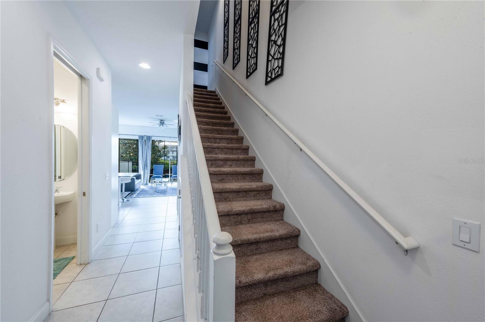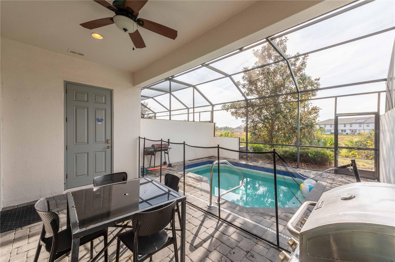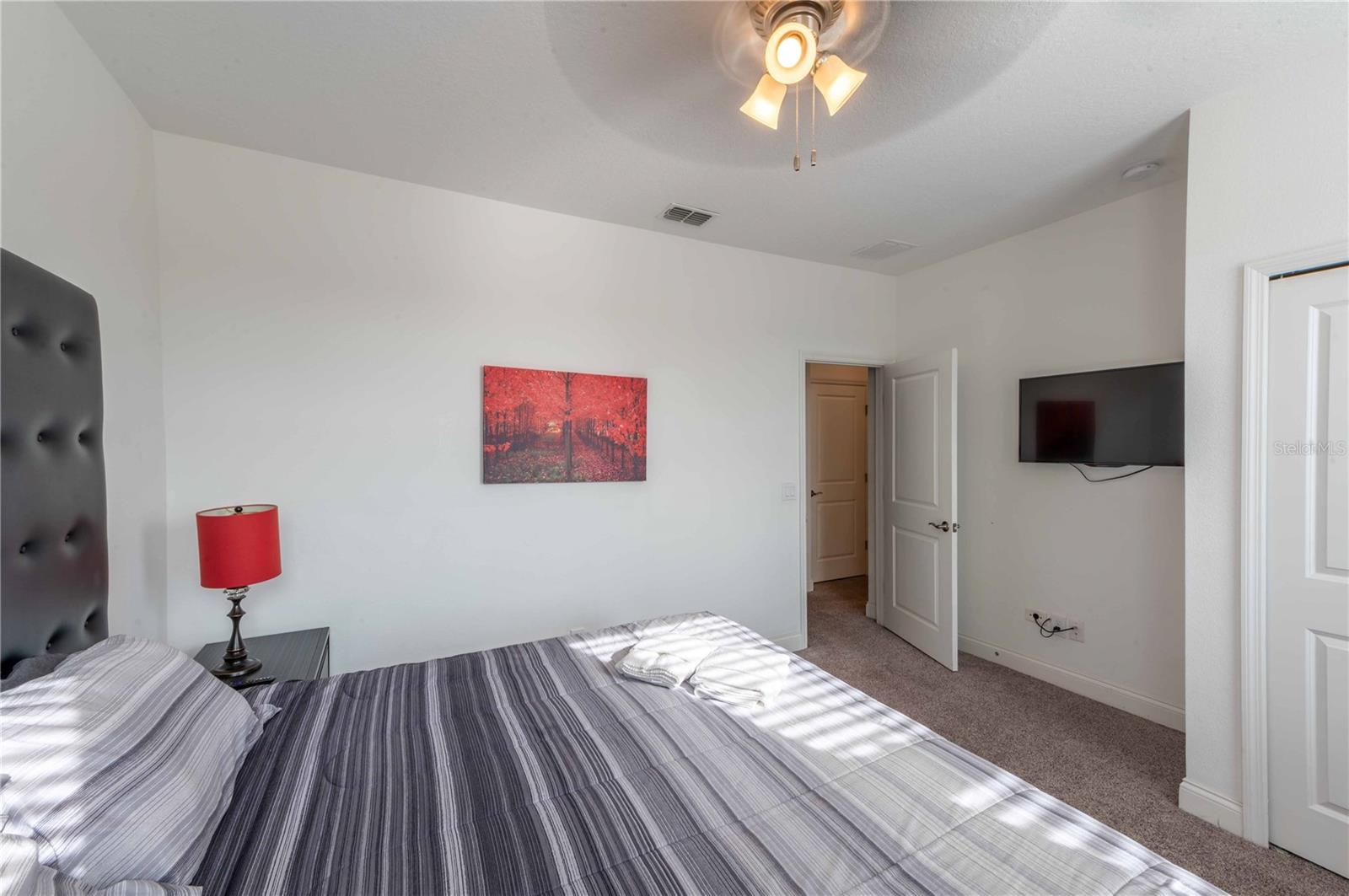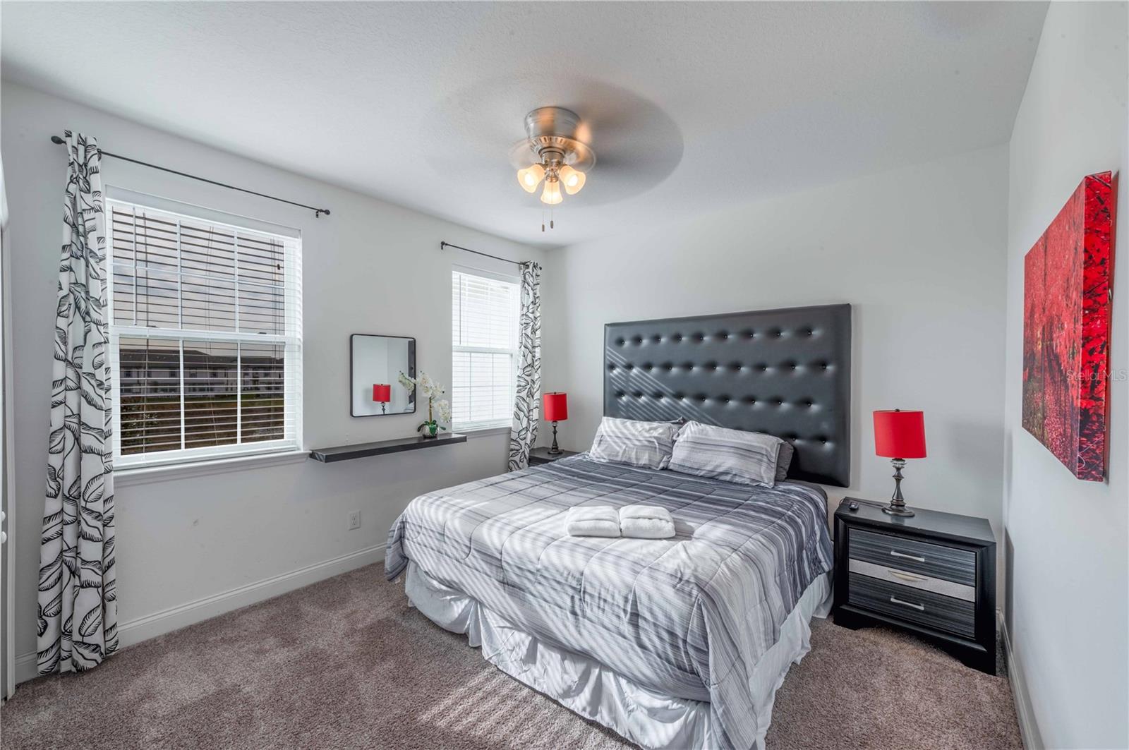 SELLER WILL PAY FOR 1 YEAR OF BUYERS HOA FEES AT CLOSING WITH A FULL PRICE OFFER. Step into this beautifully fully furnished 3-bedroom, 2.5-bathroom townhouse, designed with a contemporary flair and located in the heart of Festival Bay Resort—just minutes away from Orlando’s most iconic attractions! Only 10 minutes to Disney World, 15 minutes to SeaWorld, and 20 minutes to Universal Studios, this home is perfectly situated for both fun and convenience. Nearby, you’ll find top-rated restaurants, convenience stores, and pharmacies, making it an ideal location for exploring Orlando and Central Florida. The gourmet kitchen is a chef’s dream, featuring stainless steel appliances, granite countertops, a spacious island, 42" cabinets with custom moldings, and a stylish backsplash. The bright and airy open-concept living and dining areas create the perfect space for family gatherings or entertaining, complete with a 55" TV and seating for six at the dining table. Sliding glass doors flood the space with natural light and lead to a covered patio, where you can dine al fresco or relax in Florida’s tropical climate. Enjoy the heated pool with a jacuzzi, privacy walls, and serene conservation views—a peaceful retreat right in your backyard. The primary suite on the ground floor is your private oasis, featuring a luxurious king-size bed and an ensuite bathroom with a unique sliding door for added convenience. Upstairs, you’ll find a versatile flex room with a sofa bed, two additional bedrooms, and a beautifully appointed bathroom with double sinks and granite countertops—perfect for hosting family and friends. This townhouse is packed with extras: HOA includes internet, cable, garbage, pest control, water, and exterior/ground maintenance. Resort-style amenities: fitness center, poolside restaurant, resort pool, water park, game room, and more! Whether you're looking for a stunning vacation home or a profitable investment property, this home offers short- and long-term rental options to suit your needs. Don’t miss the chance to own this slice of paradise. Schedule your showing today and discover everything this incredible home has to PROVIDE!