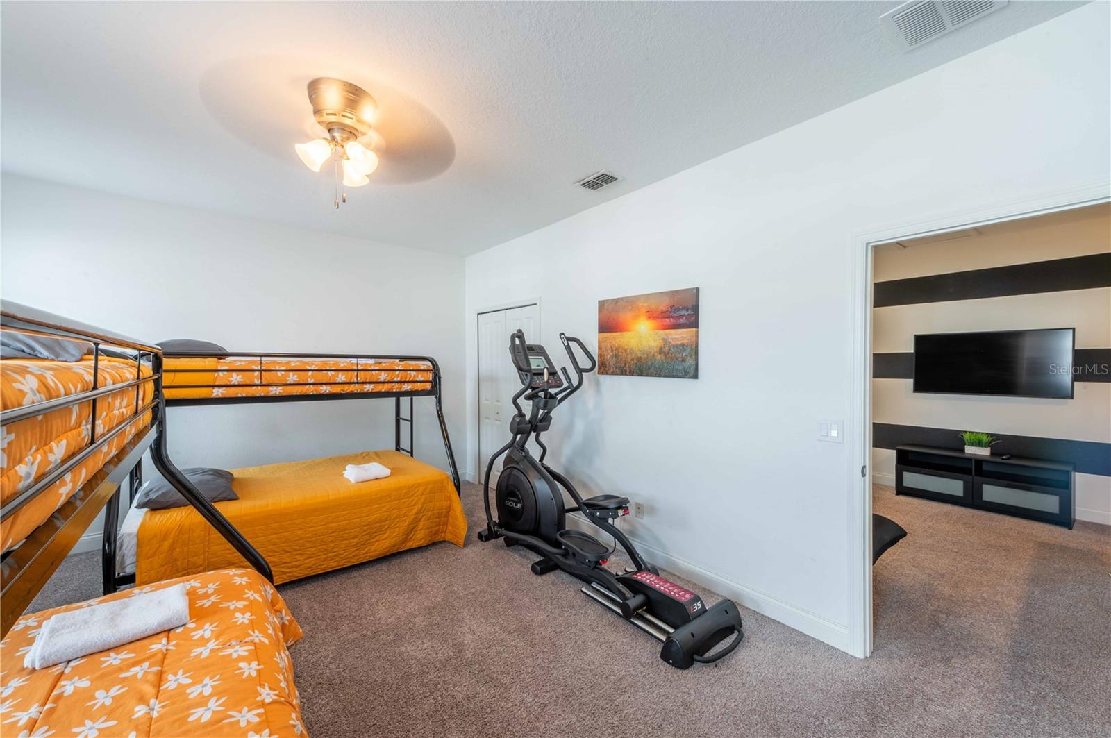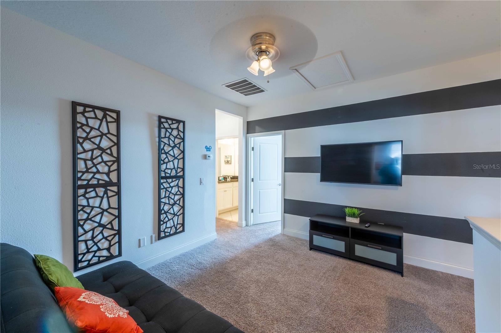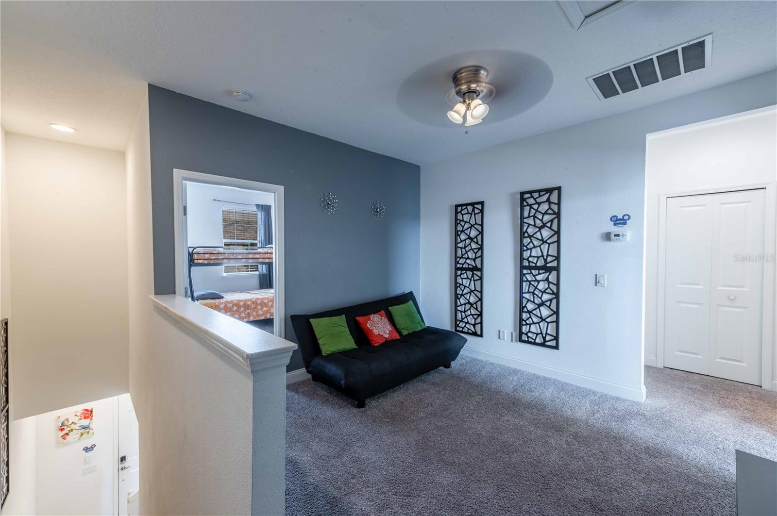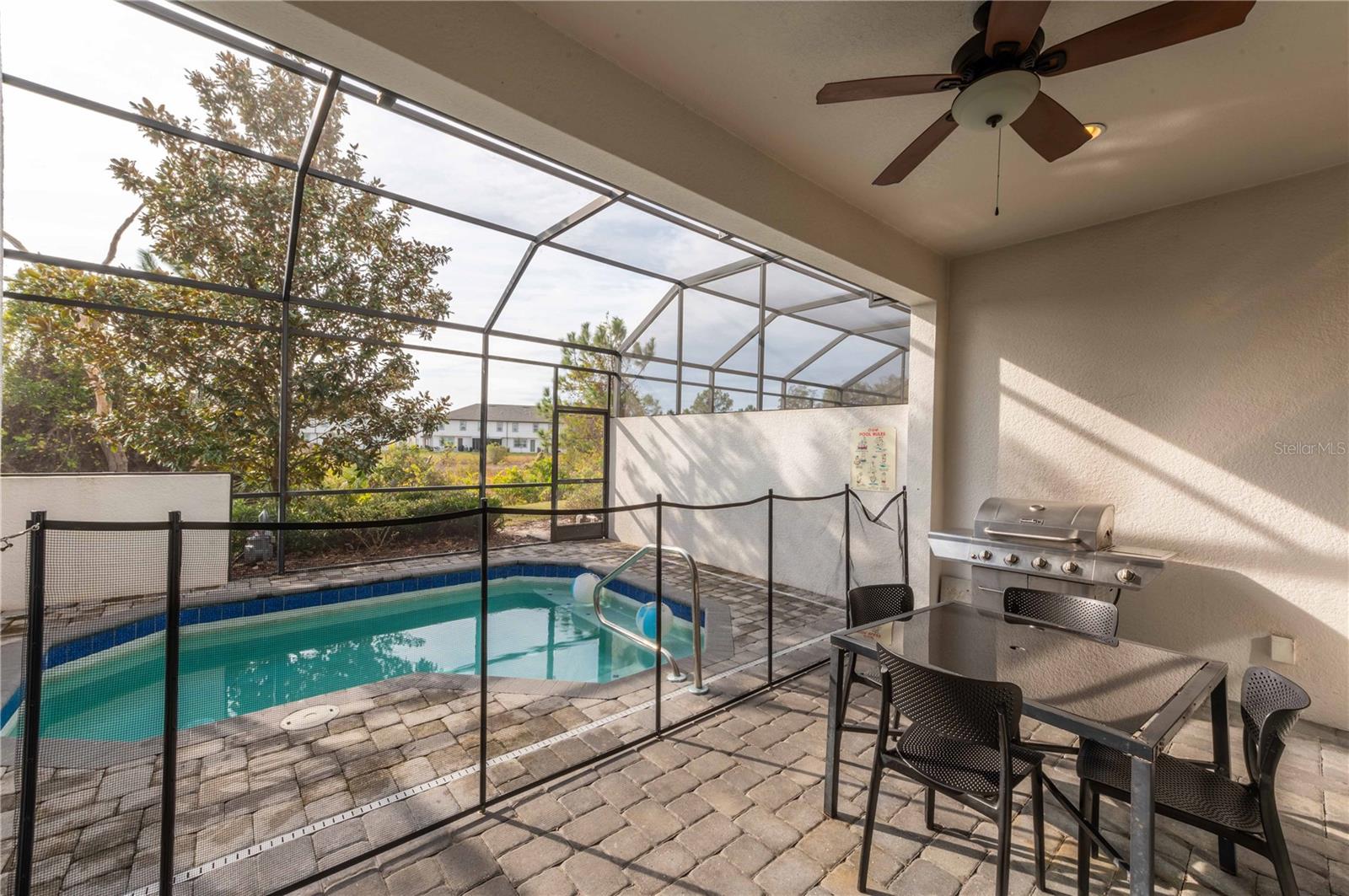 SELLER WILL PAY FOR 1 YEAR OF BUYERS HOA FEES AT CLOSING WITH A FULL PRICE OFFER. Step into this beautifully fully furnished 3-bedroom, 2.5-bathroom townhouse, designed with a contemporary flair and located in the heart of Festival Bay Resort—just minutes away from Orlando’s most iconic attractions! Only 10 minutes to Disney World, 15 minutes to SeaWorld, and 20 minutes to Universal Studios, this home is perfectly situated for both fun and convenience. Nearby, you’ll find top-rated restaurants, convenience stores, and pharmacies, making it an ideal location for exploring Orlando and Central Florida. The gourmet kitchen is a chef’s dream, featuring stainless steel appliances, granite countertops, a spacious island, 42" cabinets with custom moldings, and a stylish backsplash. The bright and airy open-concept living and dining areas create the perfect space for family gatherings or entertaining, complete with a 55" TV and seating for six at the dining table. Sliding glass doors flood the space with natural light and lead to a covered patio, where you can dine al fresco or relax in Florida’s tropical climate. Enjoy the heated pool with a jacuzzi, privacy walls, and serene conservation views—a peaceful retreat right in your backyard. The primary suite on the ground floor is your private oasis, featuring a luxurious king-size bed and an ensuite bathroom with a unique sliding door for added convenience. Upstairs, you’ll find a versatile flex room with a sofa bed, two additional bedrooms, and a beautifully appointed bathroom with double sinks and granite countertops—perfect for hosting family and friends. This townhouse is packed with extras: HOA includes internet, cable, garbage, pest control, water, and exterior/ground maintenance. Resort-style amenities: fitness center, poolside restaurant, resort pool, water park, game room, and more! Whether you're looking for a stunning vacation home or a profitable investment property, this home offers short- and long-term rental options to suit your needs. Don’t miss the chance to own this slice of paradise. Schedule your showing today and discover everything this incredible home has to PROVIDE!
