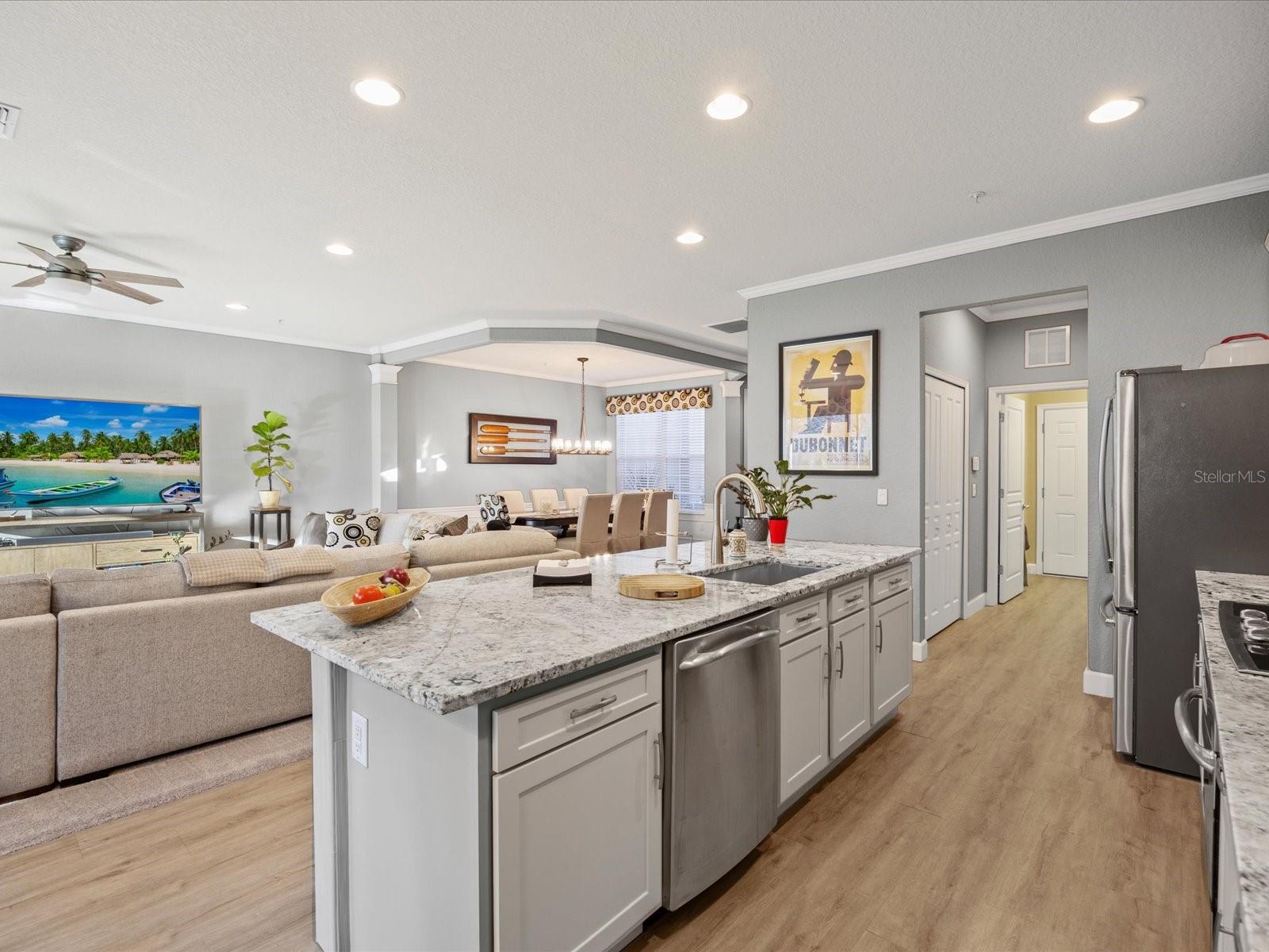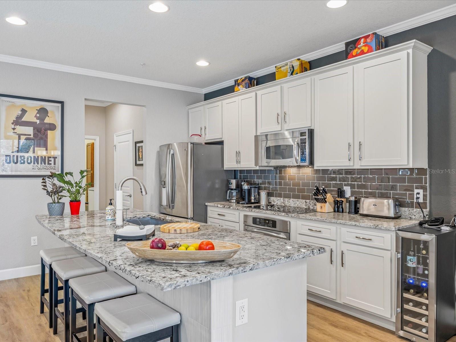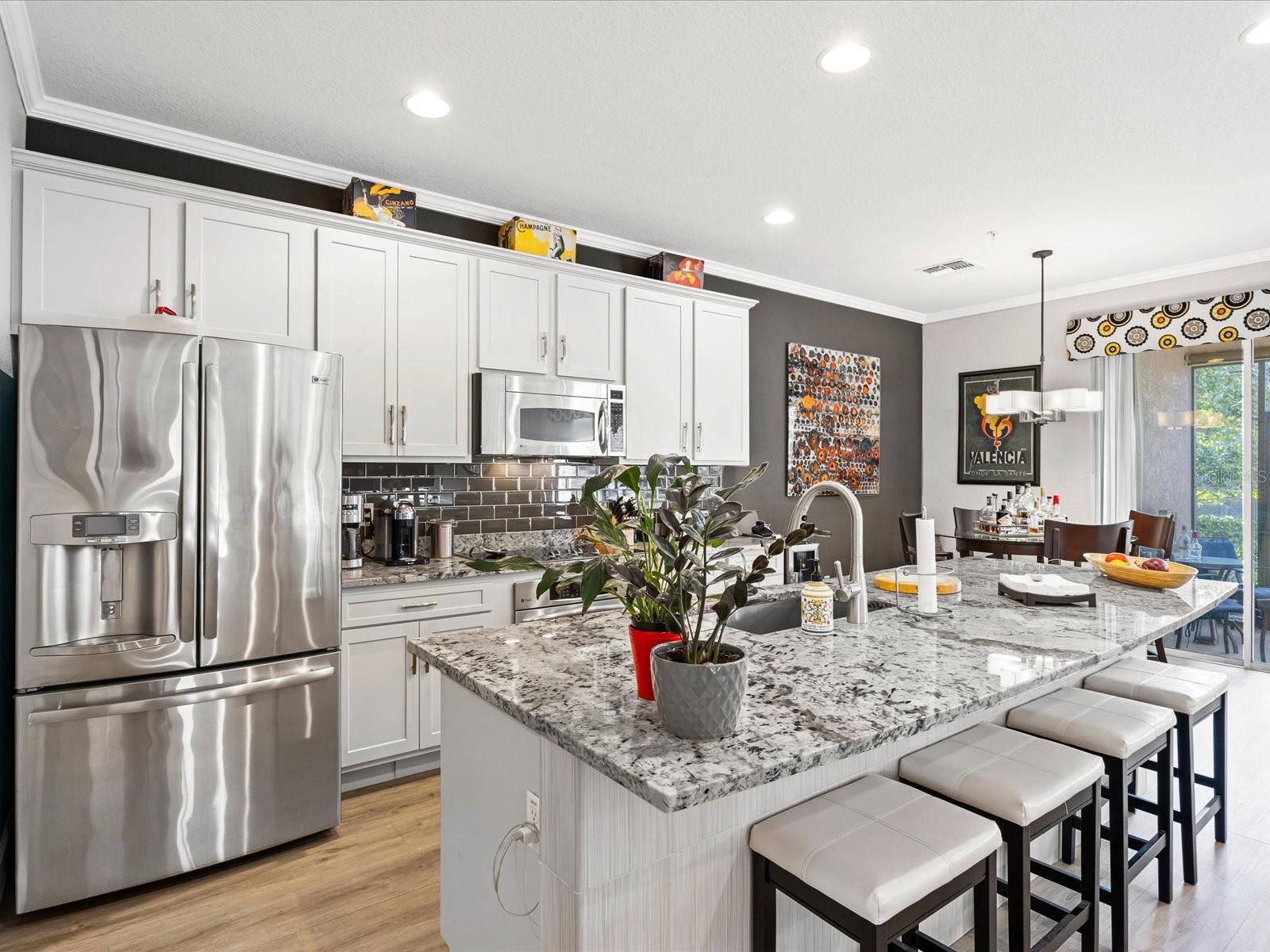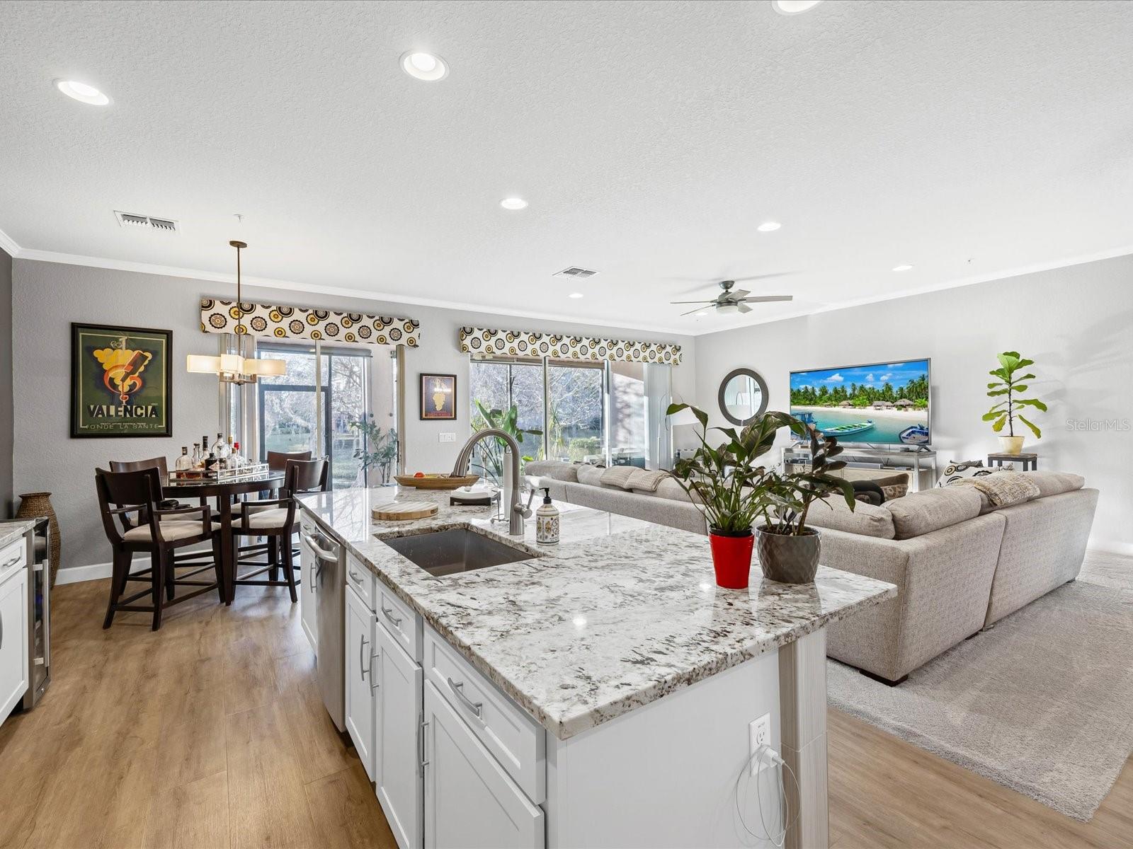 Price reduced!! Take a look at this luxurious water view townhome in the Bella Trae community – fully upgraded & move-In ready! Discover elegance, comfort, and maintenance-free living in this beautifully upgraded water-view townhome, nestled within the gated resort-style community of Bella Trae. Step inside to freshly painted interiors adorned with crown molding and wainscoting, adding timeless charm and sophistication. The remodeled kitchen is a chef’s dream, featuring granite countertops, stainless steel appliances, and a stylish new backsplash. A cozy dining nook seamlessly connects to the enclosed lanai, blending indoor and outdoor living effortlessly. Upstairs, the spacious primary suite offers serene water views, an expansive walk-in closet, and a luxurious en-suite bath complete with dual sinks, modern lighting, a walk-in shower, and a soaker tub. Two additional bedrooms provide ample space for guests, complemented by an updated guest bathroom for added convenience. Additional highlights include: Enclosed, tiled patio with sunshades – the perfect retreat for relaxation or entertaining New washer and dryer in a well-appointed laundry room with custom storage cabinets Two-car garage with built-in cabinetry for organized storage Stacking sliding doors that open to the living room, enhancing the open-concept feel Enjoy a maintenance-free lifestyle, with HOA dues covering grounds maintenance, cable/internet, pest control, and access to resort-style amenities. Bella Trae offers a clubhouse, fitness center, billiards room, library, meeting spaces, community grills, a zero-entry pool, spa, putting green, and tennis courts—everything you need for an exceptional lifestyle. Perfectly located near major highways, top-rated restaurants, shopping, and entertainment, this townhome offers a rare blend of luxury and convenience. Don’t miss your chance to own this stunning Bella Trae gem—schedule your private showing today