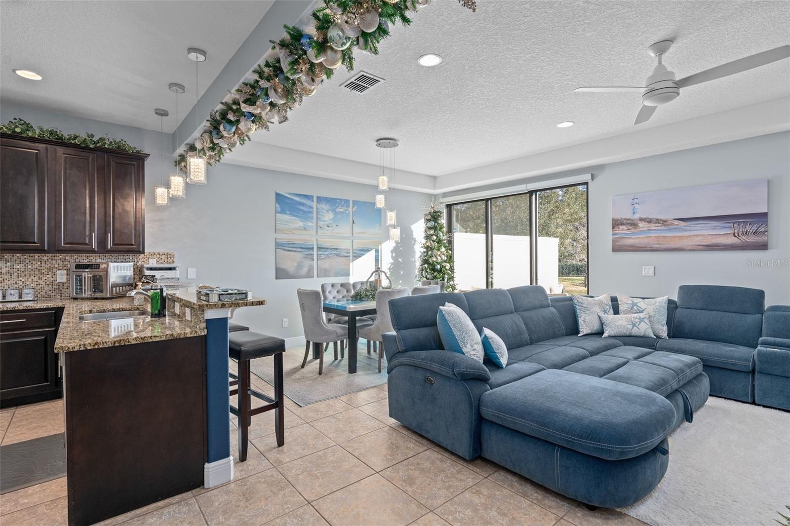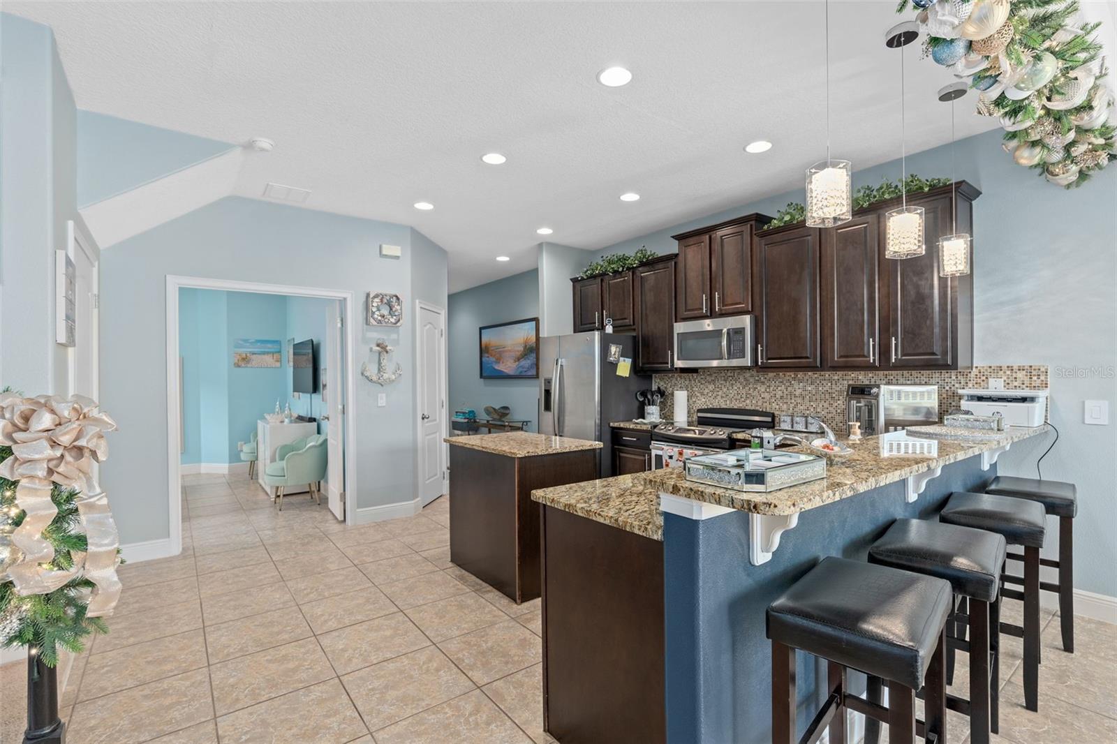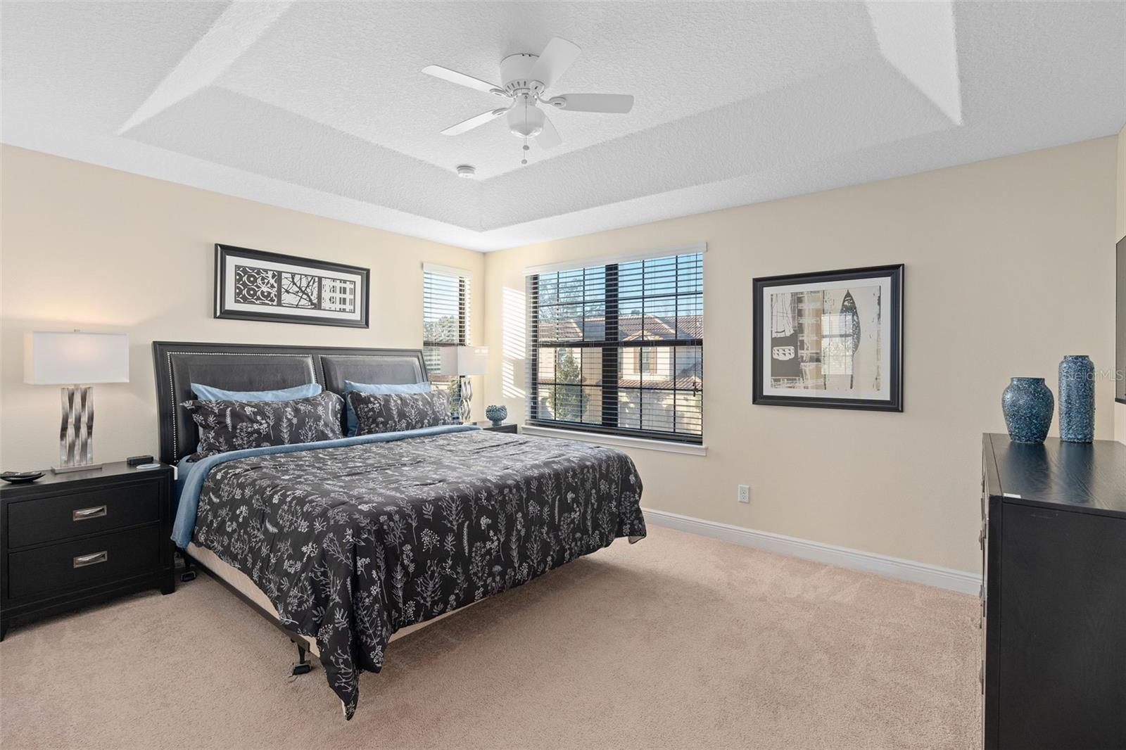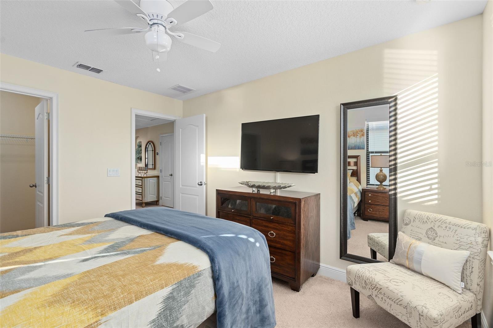 Welcome home to this FULLY FURNISHED 4-bedroom, 3.5-bathroom townhouse in the highly sought-after Champions Gate community at The Fountains! This stunning property is move-in ready and offers everything you need for a luxurious and convenient lifestyle. From the turnkey kitchen to the spacious living areas, this home features a variety of upgrades throughout. Downstairs, you’ll find an open-concept layout that includes a gourmet kitchen with granite countertops, an island, breakfast bar, and stainless steel appliances. The kitchen flows seamlessly into the living room and dining room, both freshly painted and with new light fixtures. One of two primary suites is conveniently located on the first floor, featuring dual sinks and a large walk-in closet. There is also a half-bath for added convenience. The home has been meticulously maintained, with a fresh coat of paint in all rooms and the carpets shampooed for a fresh and clean feel. Additionally, the shower tiling has been replaced in both the upstairs and downstairs bathrooms, adding a modern touch to the space. A new deck off the dining room provides the perfect spot to relax while enjoying the tranquil views of the fountains. Upstairs, you’ll discover the second primary suite, also with dual sinks and a walk-in closet. At the other end of the hall, there are two additional guest bedrooms, a full bathroom, and a separate laundry area. Additional upgrades include a new air conditioner (replaced in May 2021), new flooring in the garage, a new patio deck, and smart plugs throughout the kitchen, giving you access to Alexa for added convenience. The home also features new light fixtures downstairs. This property is steps away from the clubhouse and resort-style pool and spa, offering the ultimate in luxury living and convenience. The location of this home is perfectly located off I-4 just minutes from Disney Parks, Disney Springs, Disney’s Boardwalk and about an hour drive to Cocoa Beach. This property is perfect for short-term rentals or primary residence.