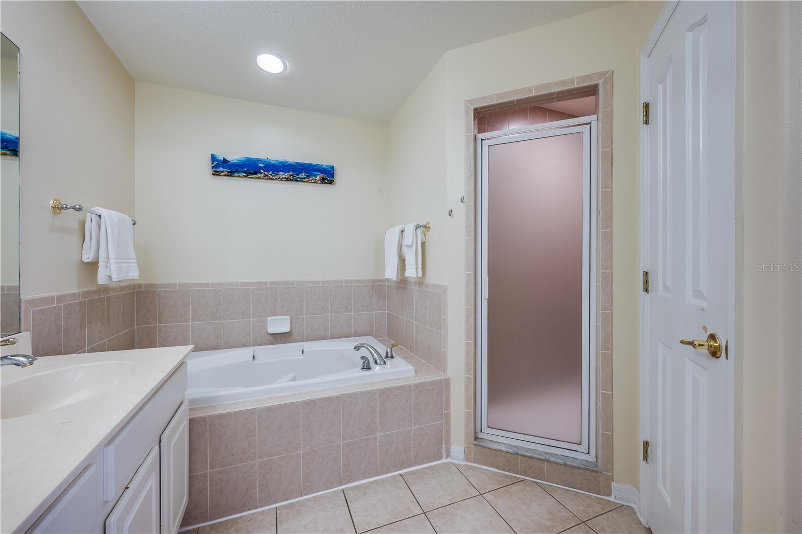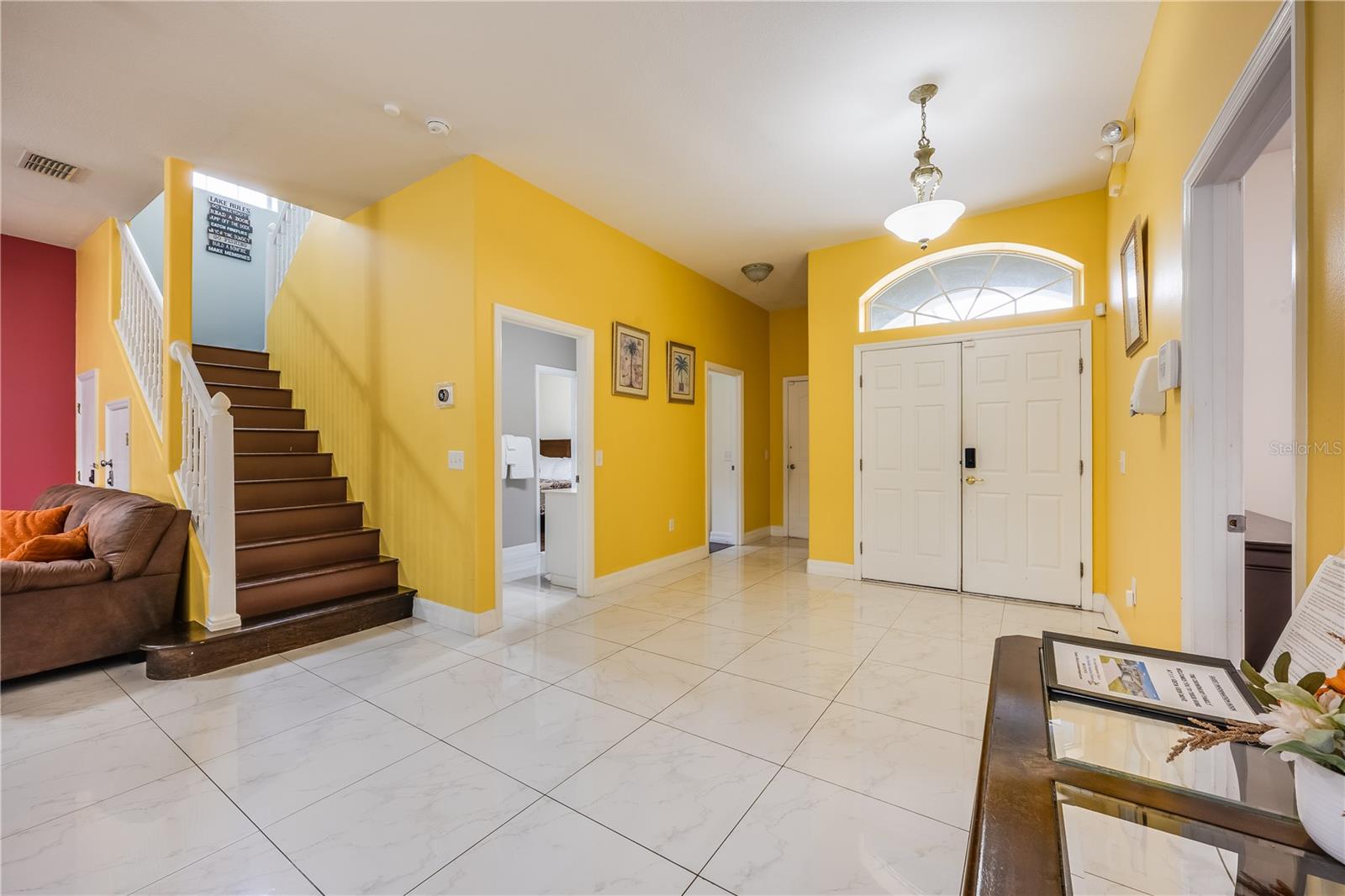 Excellent investment opportunity just minutes from Disney in this spacious 6-bedroom, 4-full bath POOL HOME with TWO PRIMARY SUITES, a NEW A/C (2023), FRESH INTERIOR & EXTERIOR PAINT (2023), a NEW 6 PERSON HOT TUB (2023), GARAGE GAME ROOM UNDER A/C, a NEW POOL HEATER (2022) and full SMART HOME FEATURES all in a GATED ACCESS community with a LOW HOA! Welcome to Vista Drive in the quiet and friendly Vista Park and this FURNISHED pool home ready and waiting with bookings in place to be your next INVESTMENT/SHORT TERM RENTAL or home away from home. There are TILE & LUXURY VINYL PLANK floors throughout making maintenance a breeze, light and bright OPEN CONCEPT LIVING with French doors that open up to a COVERED PAVER LANAI and your HEATED & SCREENED POOL (with smart controls!), two main floor bedrooms and a well equipped kitchen complete with stainless steel appliances. Upstairs you have your choice of en-suite bedrooms, a larger primary suite at the back of the home with bay windows for great natural light, WALK-IN CLOSET and spacious private bath, a junior suite also featuring a private en-suite and two additional bedrooms both with access to a fourth full bath. In a great location just East of US Hwy 127 for easy access to area theme parks and resorts as well as shopping, dining, major golf courses and so much more. Call today to schedule a tour and discover the endless possibilities on Vista Drive!