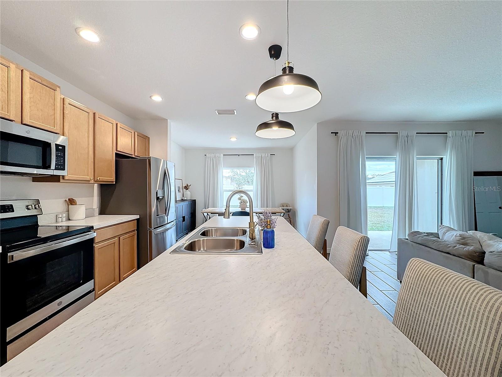 Welcome to this stunning 4-bedroom, 2-bathroom home located in the gated community of Davenport Estate! With 1,819 Sq Ft of thoughtfully designed living space, this property offers a perfect blend of comfort and style. Enjoy the open-concept floor plan featuring an eat-in dining area, a spacious great room, and a modern kitchen that seamlessly connects to a covered lanai—ideal for outdoor relaxation and entertaining. Upgrades include elegant extended tile flooring, a luxurious digital Kohler dual-railhead shower system in the master bath, double vanities in both bathrooms, and a paver driveway and walkways. This home also boasts a separate laundry room and a Beautiful Kitchen that will delight any chef. Conveniently situated just minutes from Hwy 27, I-4, and 17/92, you’ll have quick access to shopping, schools, entertainment, and hospitals. Plus, it's less than 20 miles from Disney theme parks and just 30 miles to Orlando International Airport. Why wait to build when this move-in-ready home with premium upgrades is waiting for you? Schedule your private showing today!