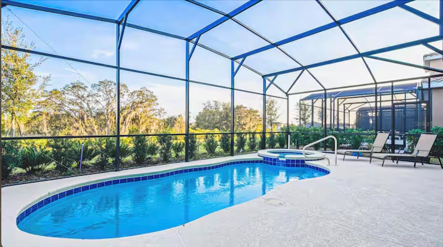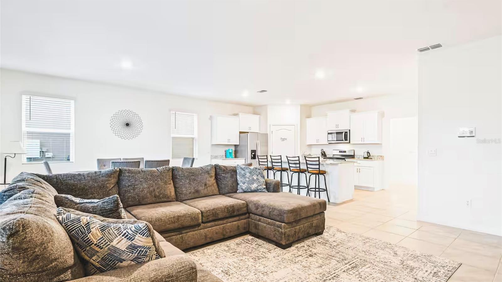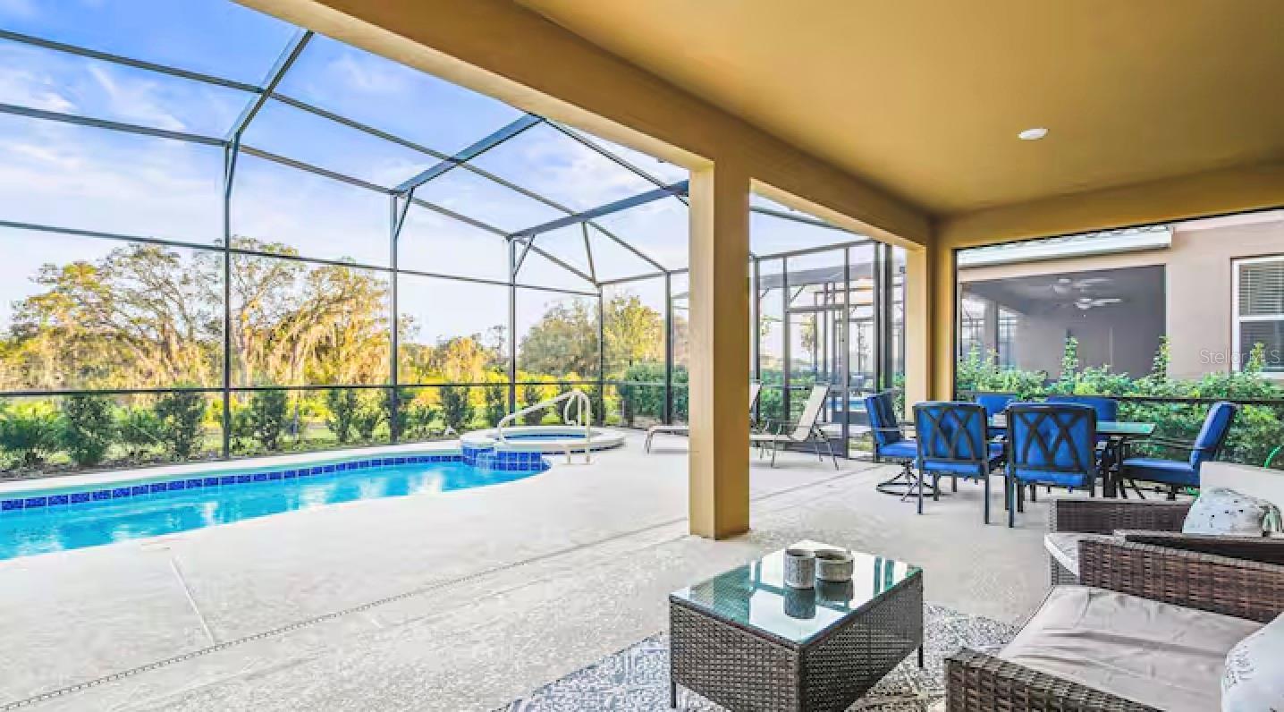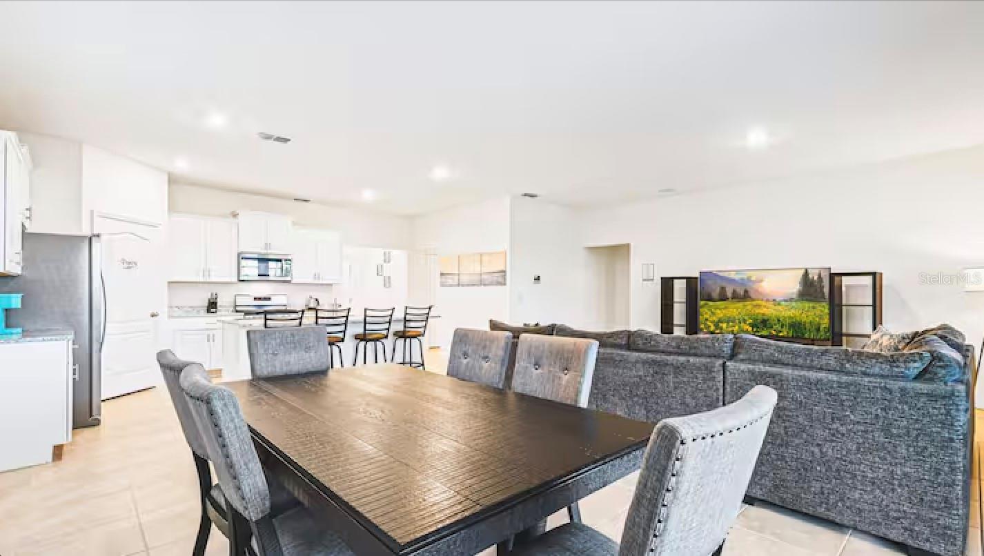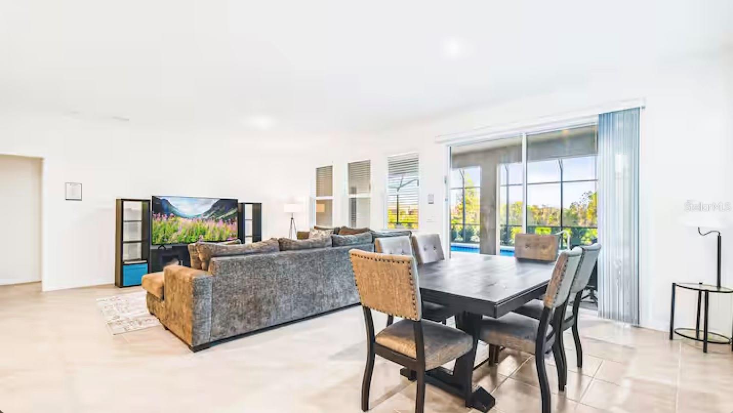 Welcome to your dream home! Fully furnished! This stunning DR Horton property boasts 5 spacious bedrooms and 4 full bathrooms, offering plenty of room for your family and guests. The open floor plan is perfect for entertaining, with a large living area and a beautiful kitchen featuring modern appliances, a walk in pantry, and plenty of counter space. The master suite is a true oasis, with a luxurious en-suite bathroom and a walk-in closet. Other highlights include high end finishes, a beautiful backyard backing up to an open view of beautiful trees and landscape, a covered patio, and a 2-car garage. Located in the sought-after neighborhood of Solterra Resorts, this home offers easy access to schools, a 15 minute drive to Walt Disney World, an assortment of amenities within the gated community, and the structure quality of the homes with both stories being built with block. The HOA fee includes a community resort style pool, internet, the daily trash take away, 24 hour gated security, and in-home security. Don't miss this opportunity to make it yours!