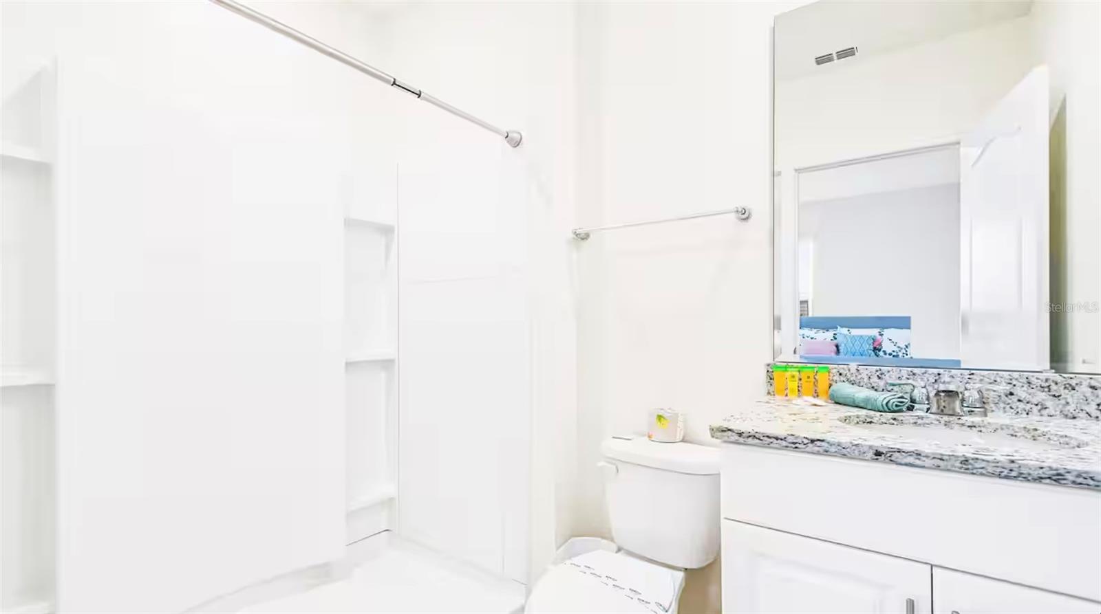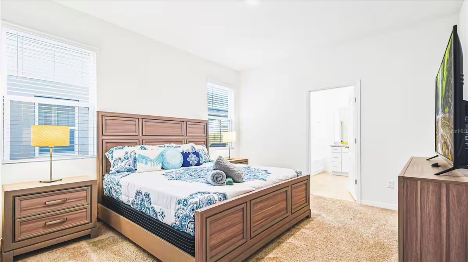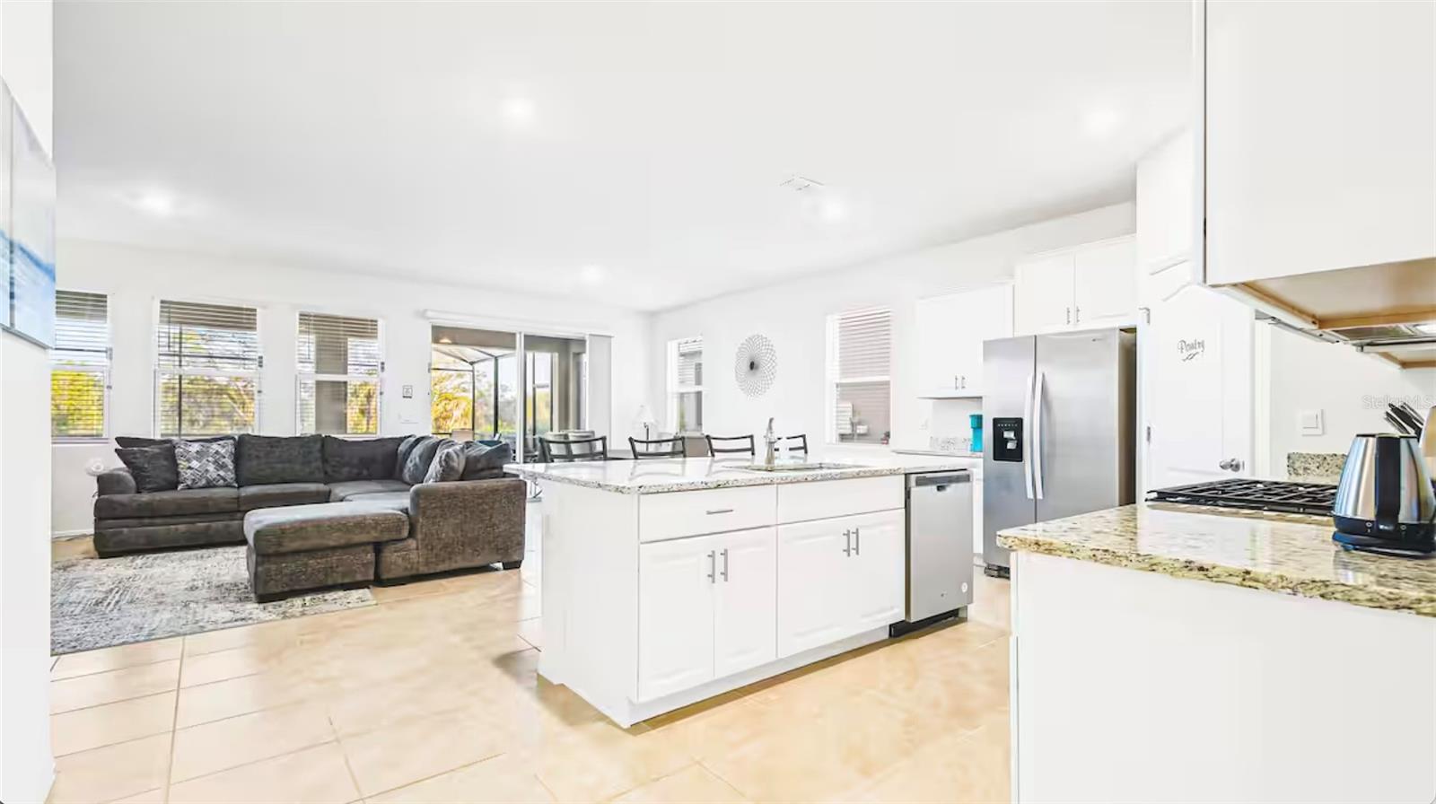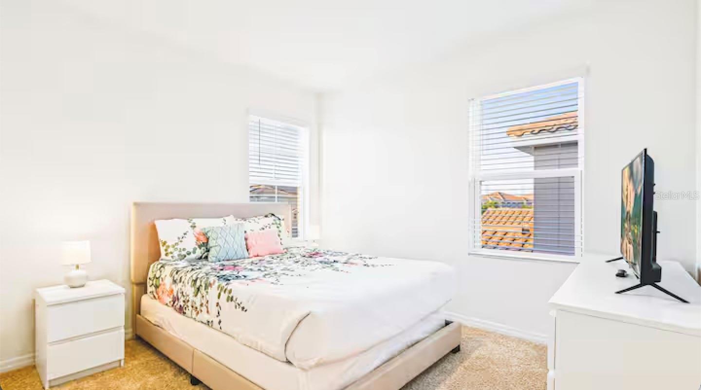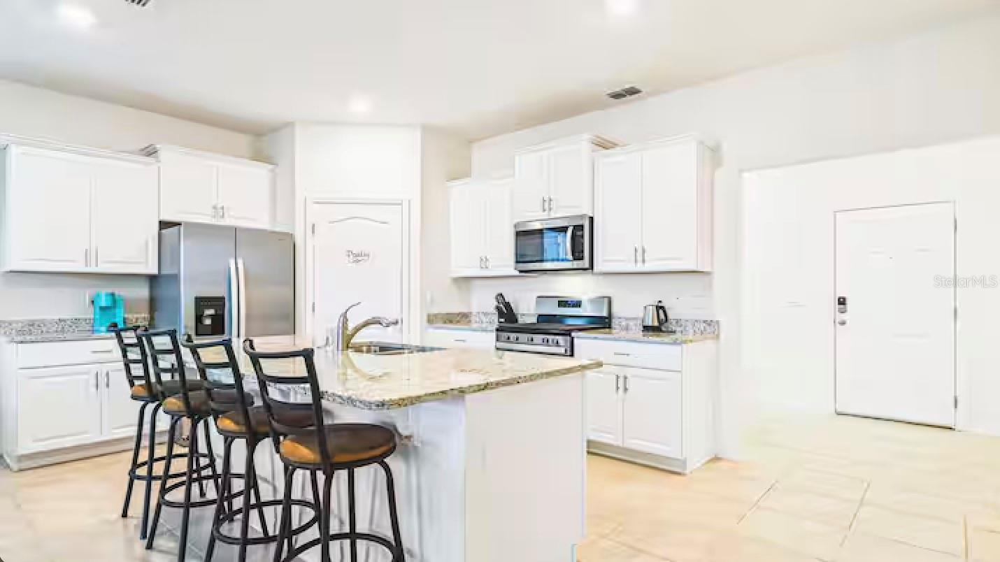 Welcome to your dream home! Fully furnished! This stunning DR Horton property boasts 5 spacious bedrooms and 4 full bathrooms, offering plenty of room for your family and guests. The open floor plan is perfect for entertaining, with a large living area and a beautiful kitchen featuring modern appliances, a walk in pantry, and plenty of counter space. The master suite is a true oasis, with a luxurious en-suite bathroom and a walk-in closet. Other highlights include high end finishes, a beautiful backyard backing up to an open view of beautiful trees and landscape, a covered patio, and a 2-car garage. Located in the sought-after neighborhood of Solterra Resorts, this home offers easy access to schools, a 15 minute drive to Walt Disney World, an assortment of amenities within the gated community, and the structure quality of the homes with both stories being built with block. The HOA fee includes a community resort style pool, internet, the daily trash take away, 24 hour gated security, and in-home security. Don't miss this opportunity to make it yours!