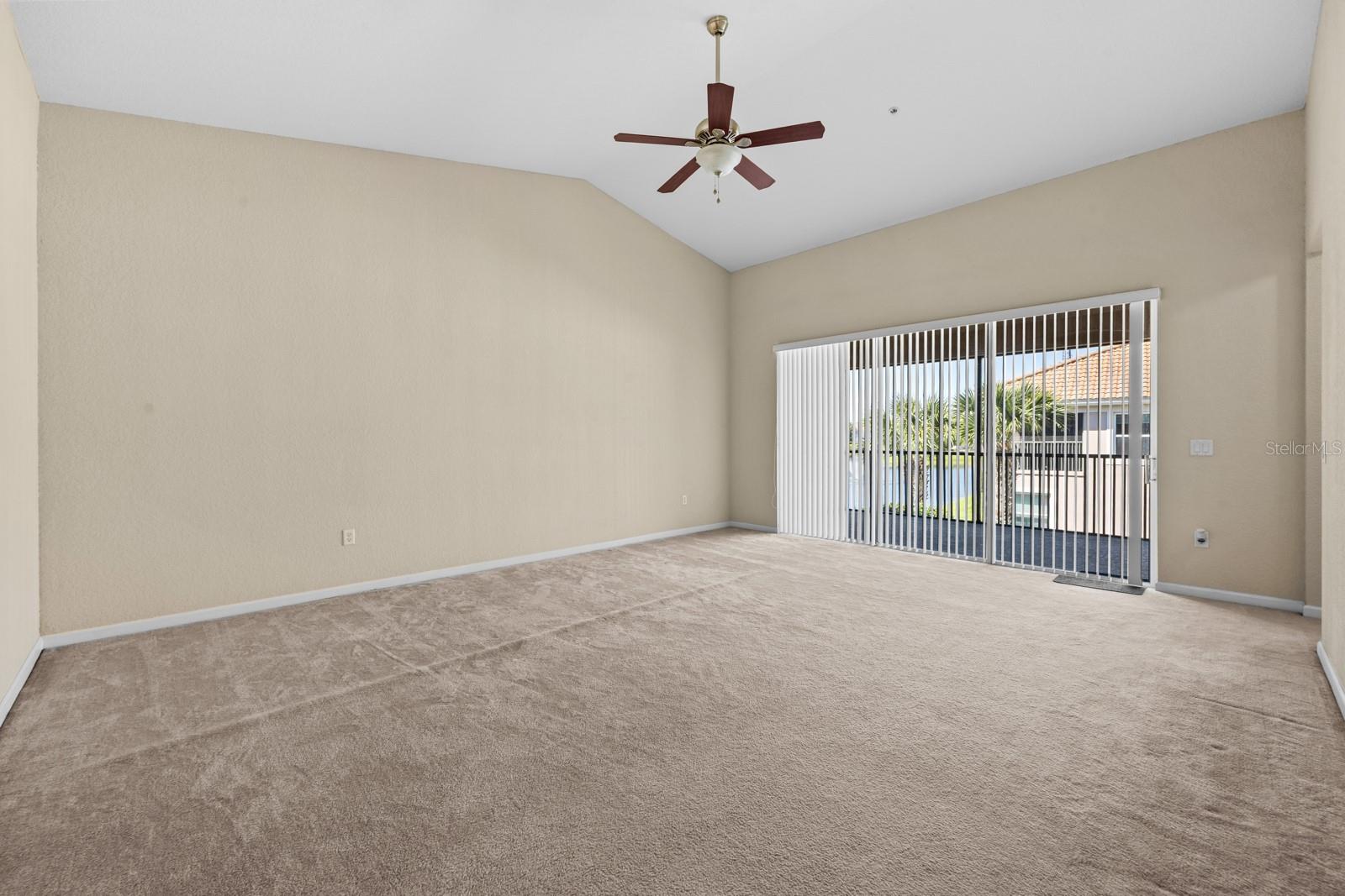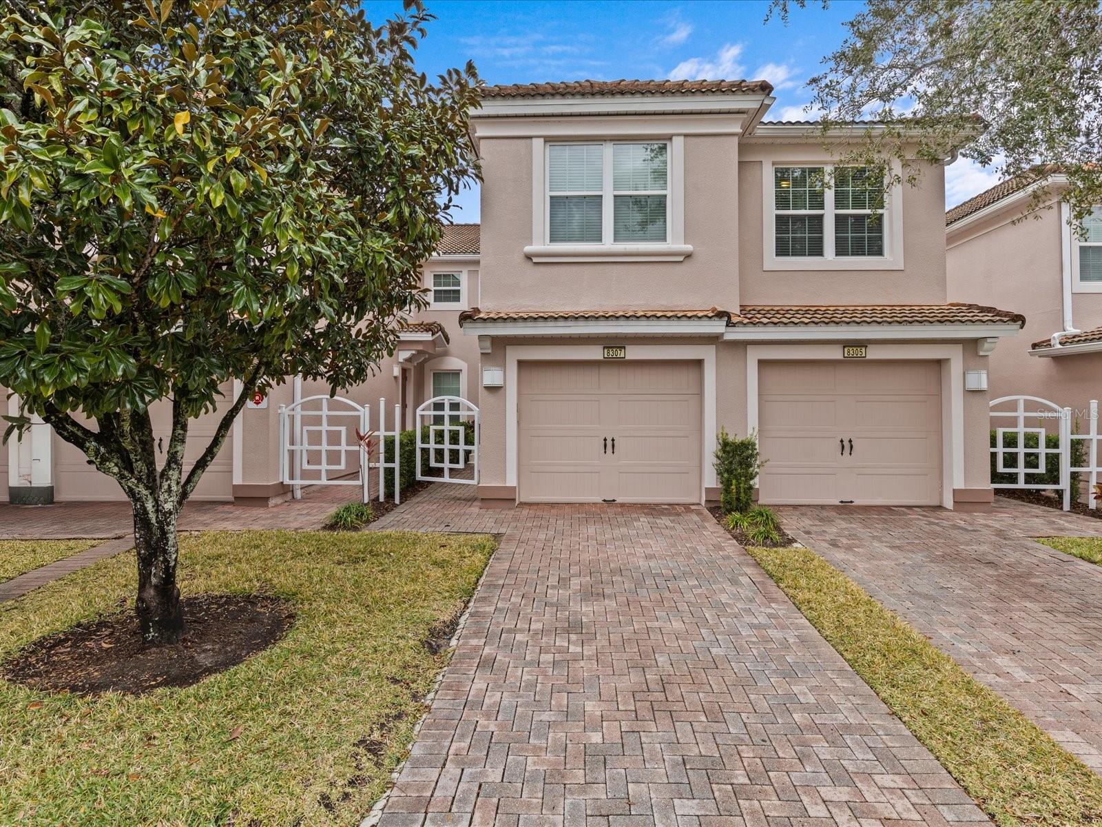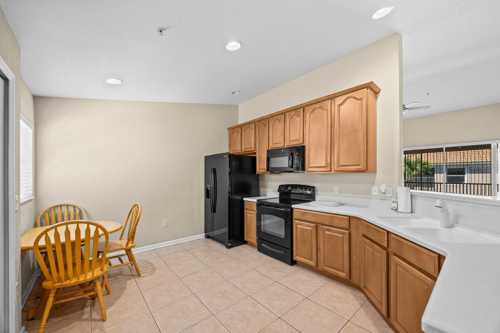 Welcome to this stunning upper-floor condo in the gated community of Bella Trae! This property offers two bedrooms and a versatile flex room that can easily serve as a third bedroom or office. The living room features vaulted ceilings, allowing for an abundance of natural light and creating an airy, open feel. The large kitchen has a cozy dining nook, complemented by an additional dining room area, perfect for entertaining. The thoughtfully designed split-bedroom layout ensures privacy, with the primary bedroom featuring vaulted ceilings, an oversized walk-in closet, and a luxurious ensuite bathroom complete with dual sinks and a large walk-in shower. Step outside to enjoy the oversized enclosed back lanai, ideal for relaxing or entertaining. Additional features include an attached one-car garage with a driveway, providing ample parking and storage. Enjoy the maintenance-free lifestyle with HOA dues that cover grounds maintenance, cable/internet, pest control, and a variety of resort-style amenities. Bella Trae offers a clubhouse with a fitness center, billiards room, library, meeting rooms, community grill stations, a zero-entry pool, spa, putting green, and tennis courts. This property is ideally situated near major highways, restaurants, and shopping. Don't miss this opportunity to enjoy resort-style living in Bella Trae!