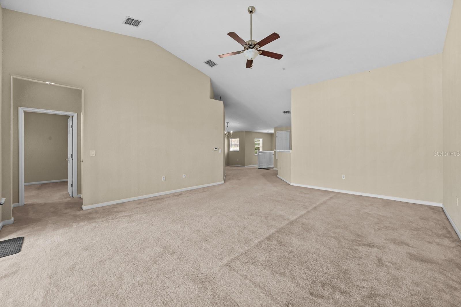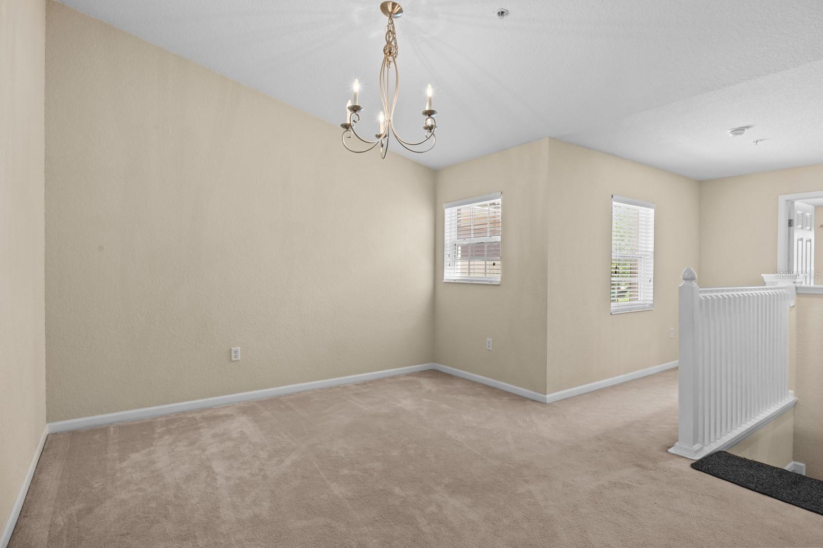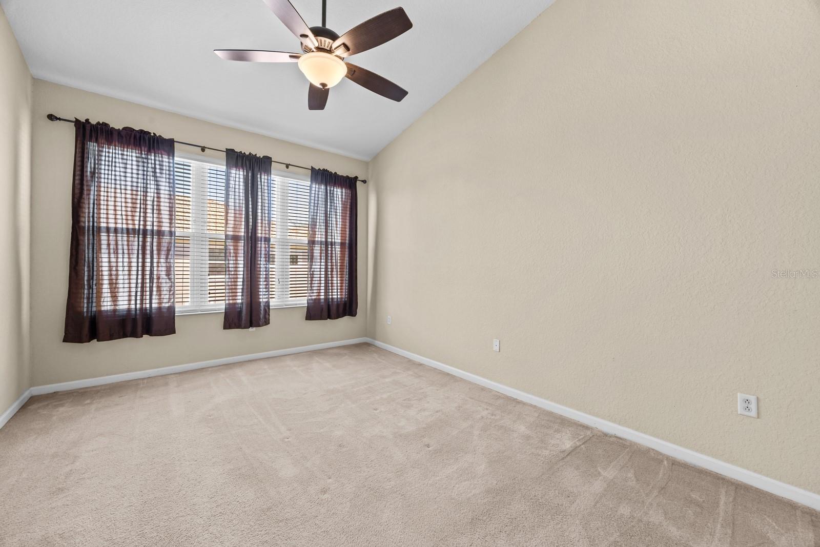 Welcome to this stunning upper-floor condo in the gated community of Bella Trae! This property offers two bedrooms and a versatile flex room that can easily serve as a third bedroom or office. The living room features vaulted ceilings, allowing for an abundance of natural light and creating an airy, open feel. The large kitchen has a cozy dining nook, complemented by an additional dining room area, perfect for entertaining. The thoughtfully designed split-bedroom layout ensures privacy, with the primary bedroom featuring vaulted ceilings, an oversized walk-in closet, and a luxurious ensuite bathroom complete with dual sinks and a large walk-in shower. Step outside to enjoy the oversized enclosed back lanai, ideal for relaxing or entertaining. Additional features include an attached one-car garage with a driveway, providing ample parking and storage. Enjoy the maintenance-free lifestyle with HOA dues that cover grounds maintenance, cable/internet, pest control, and a variety of resort-style amenities. Bella Trae offers a clubhouse with a fitness center, billiards room, library, meeting rooms, community grill stations, a zero-entry pool, spa, putting green, and tennis courts. This property is ideally situated near major highways, restaurants, and shopping. Don't miss this opportunity to enjoy resort-style living in Bella Trae!