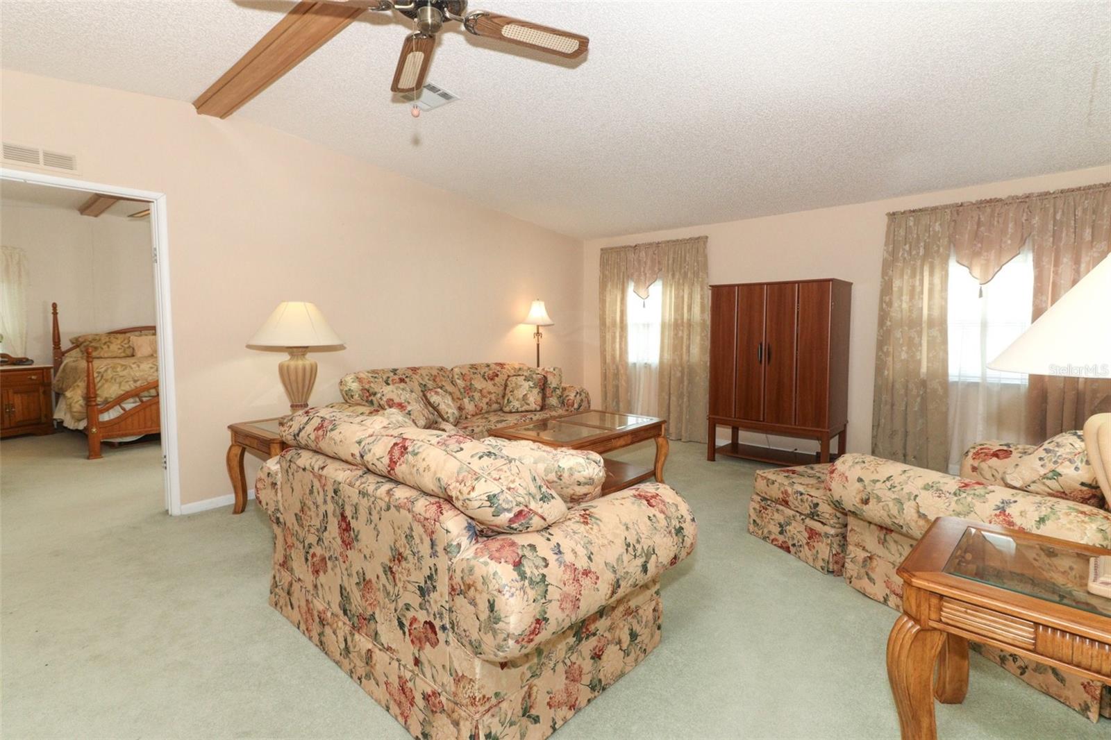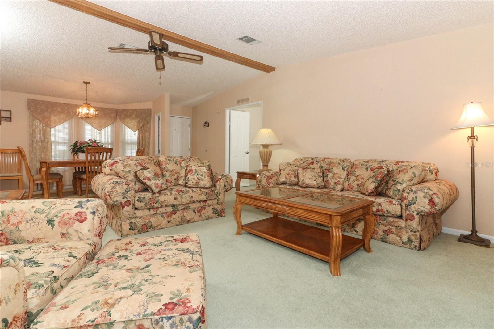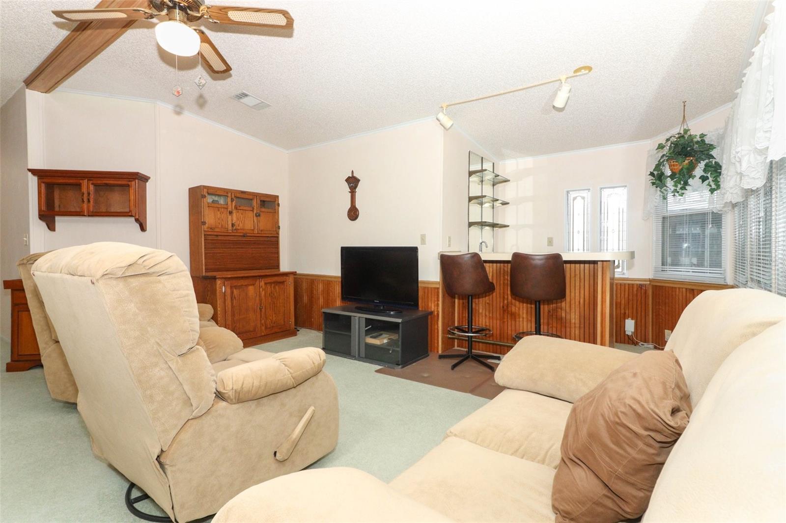 Presenting a beautifully maintained, spacious home located in one of the area's most popular 55+ communities. This inviting 2-bedroom, 2-bathroom residence offers over 1,700 square feet of thoughtfully designed living space, providing a perfect opportunity to move right in and start enjoying your new home. The open floor plan includes a formal living room and dining room, as well as a generously sized kitchen and family room combination, ideal for both daily living and entertaining. The master and guest bedrooms are both spacious, with ample closet space, and the home features a well-appointed bar area adjacent to the family room, enhancing the home's entertainment appeal. Large windows at the rear of the home provide a water view, while skylights in the kitchen flood the space with natural light. The screened enclosed rear patio offers a great place to unwind and relax as well. Updates include replacement windows, and a brand-new water heater, offering peace of mind and low-maintenance living. Additionally, a large shed provides ample storage space. The Polo Park community offers a wealth of amenities, including tennis and pickleball courts, two pools and clubhouses, shuffleboard, a fitness center, a golf course, and a library— all for a low monthly fee of just $60. Conveniently located near shopping and just a short drive to Disney theme parks, this home truly offers the best of both comfort and location. Offered fully furnished, this home is a must-see. Don’t miss the opportunity to make it yours