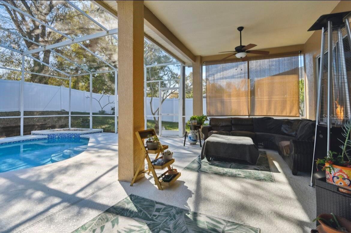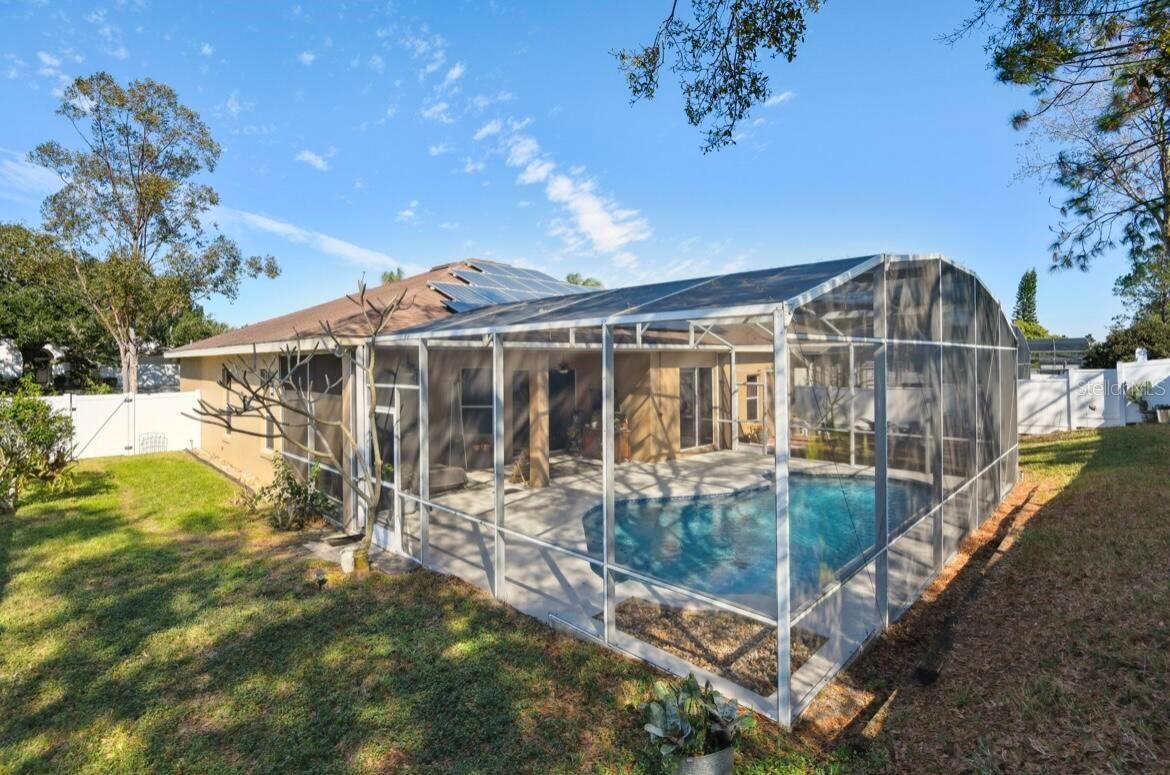 Welcome to this beautiful home located at 345 Via Bianca Dr, Davenport, FL. This charming property features a spacious open floor plan with an in ground pool. A 16 seer A/C, new insulation and 24 owned solar panel provide low monthly electric bills. The modern kitchen boasts stainless steel appliances and quartzite countertops that provide ample counter space, appropriate for culinary enthusiasts. Both bathrooms have quartzite countertops with walk in shower and tub with jets in the master. The backyard provides a great space for outdoor activities with vinyl fencing around it. All windows and sliding glass door's are tinted. Home can be used as primary residence or long term rental. Loma del Sol is a sought after community near Champions Gate conveniently located near shopping, dining, and only 15 minutes from Disney. Make this your new home today!