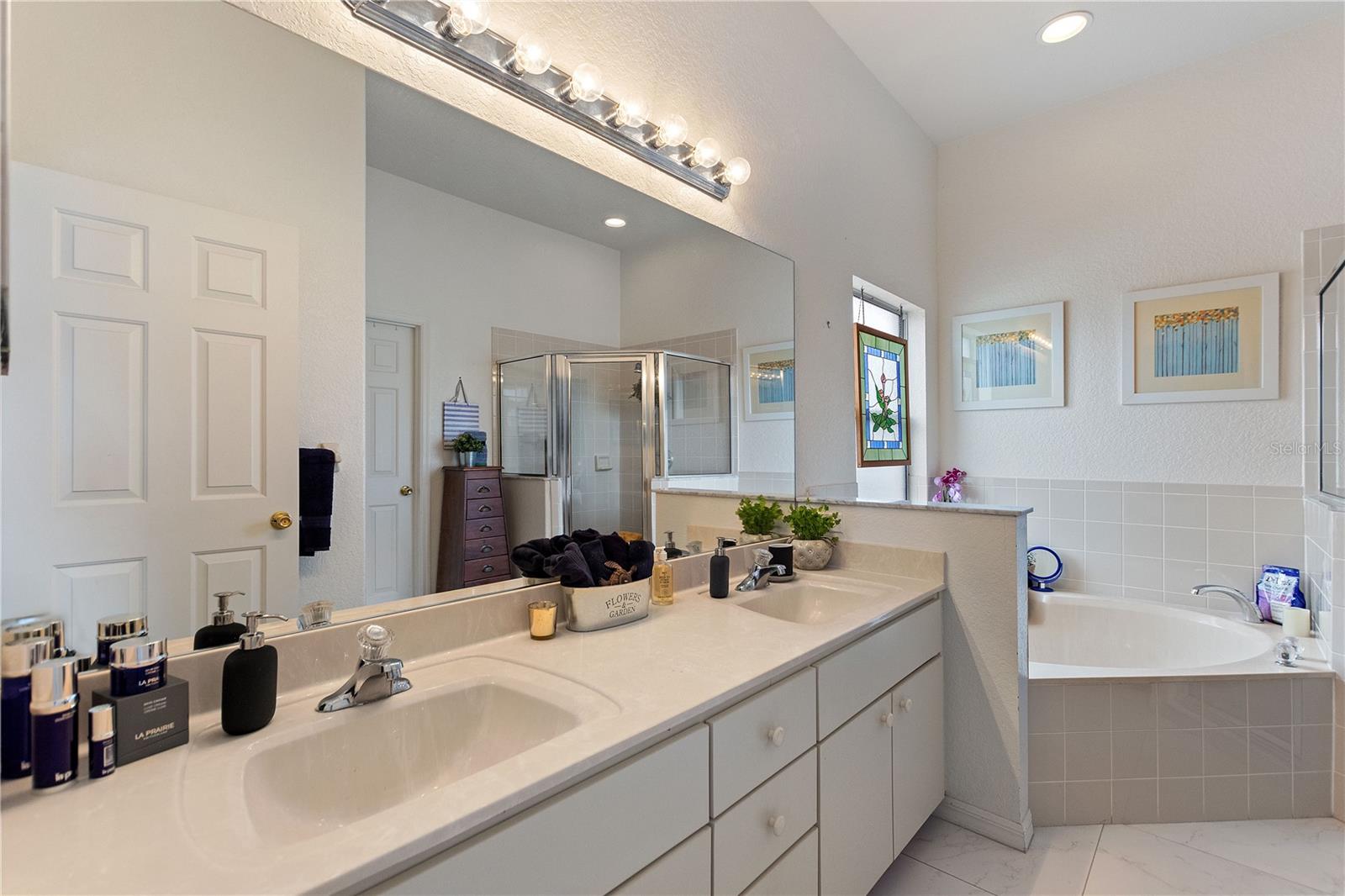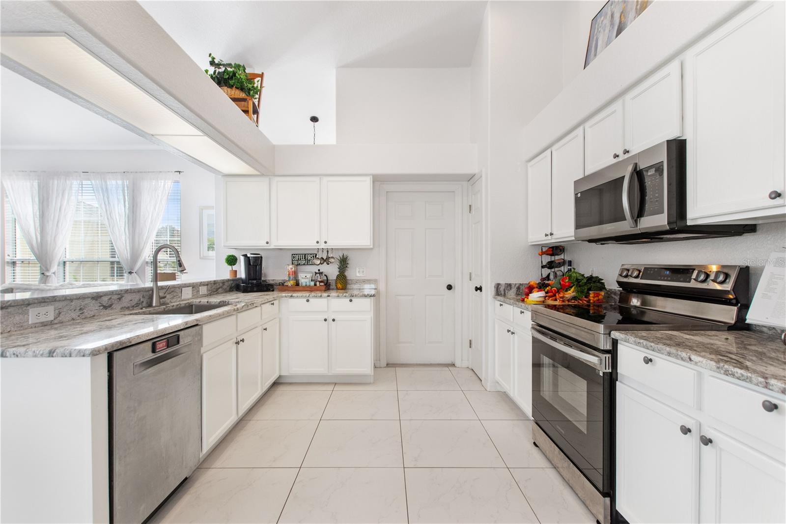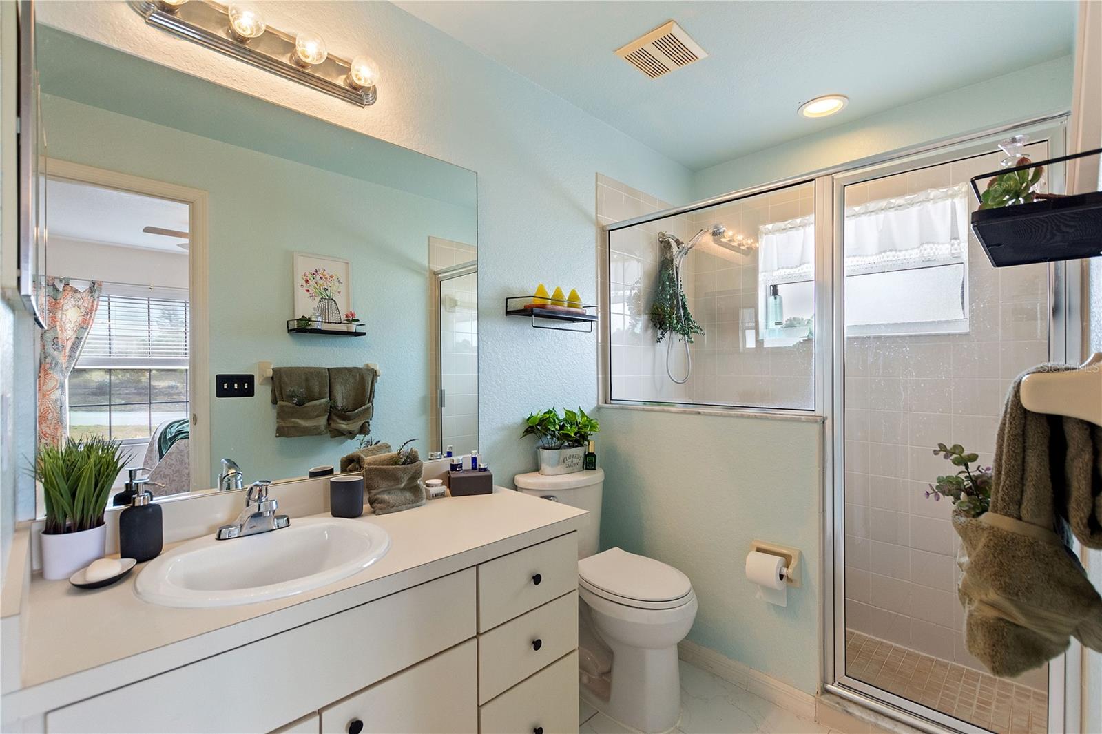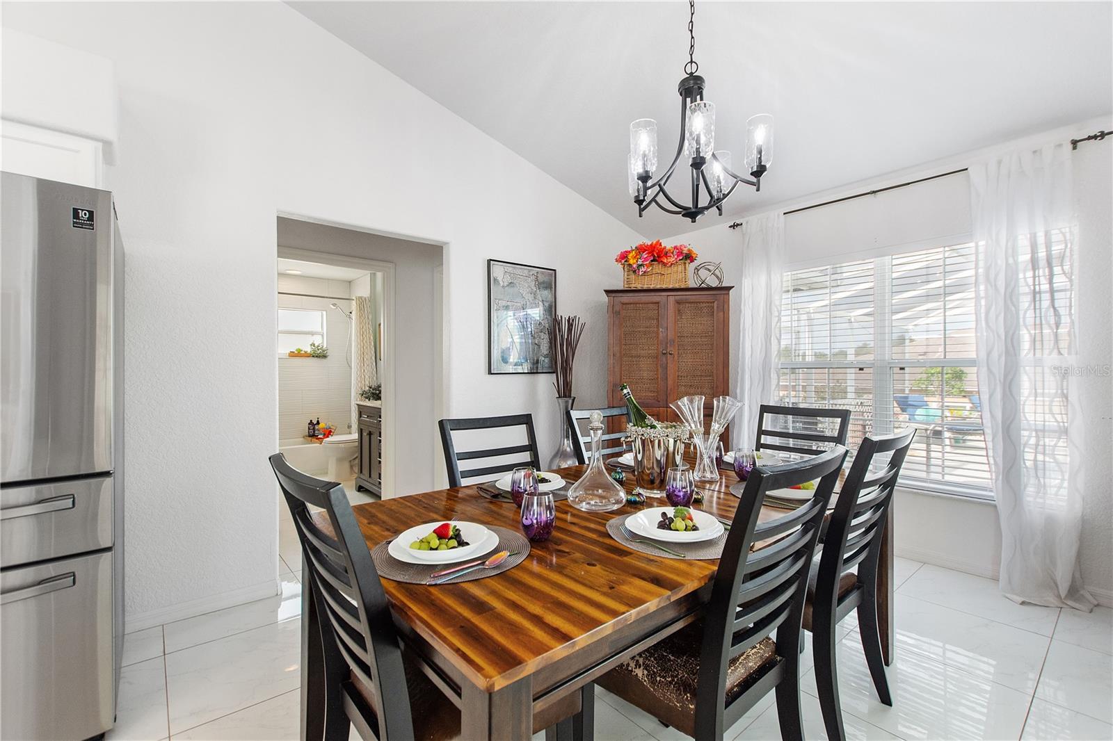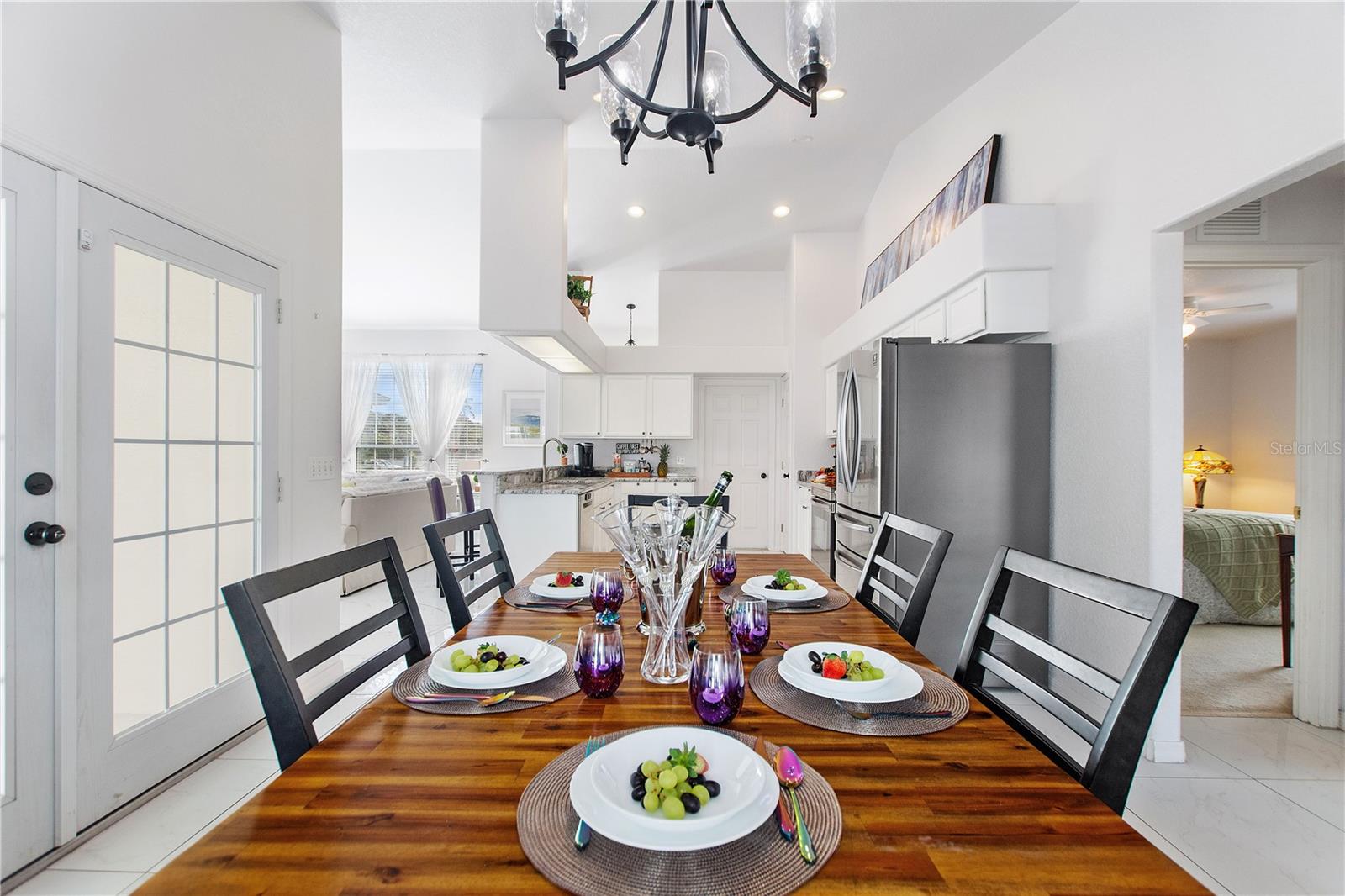 Back on market... Buyer financing fell through last minute...This extremely well maintained single level 4 bedroom, 3 full bath home shines as brightly as Florida's most brilliant sunny days! Located on a 1/4 acre corner lot located a few minutes to abundant shopping, restaurants and Omni's Championsgate Golf Club, not to mention only 15 minutes to Disney! The home rests on high ground with skyward views from almost every vantage point. Delightful from top to bottom, the open/split floor plan enjoys vaulted/cathedral ceilings, skylights, and abundant oversized windows flooding the home with light, providing it with its perfectly sunny disposition. The oversized Porcelain Tiles are a study in Carrera marble and grace nearly the entire home. The bedrooms provide for soft & warm landing with well cared for, high quality carpets. The Kitchen is the heart of the home, overlooking every aspect of the house, and it’s new granite countertops rest exquisitely on white painted solid wood cabinets. The new Samsung suite of stainless steel appliances are a seamless aesthetic blend, and the large single basin under mount kitchen sink is a perfect joy. The Dining Room opens to the large covered lanai with French Doors and an expansive pool & deck for you and your guests to revel in. This is truly an entertaining home with several areas to grill, lounge, dine al fresco, or simply lap up the ubiquitous sunshine. The outdoor shower is both refreshing & convenient. Fully fenced, there are two side gardens which can accommodate your own putting green, fruit trees or herb garden, fire pit, dog run… let your imagination run wild! Once back inside, you’ll find two ensuite bedrooms with Eastern exposures: The Primary (King Sized) Bedroom has pool views, oversized garden tub, corner shower, double walk in closet and privy. The second en suite enjoys a southern exposure. On the West side of the home, are the two guest rooms, sharing the updated bath with new tile surround tub & inserts, cabinet & marble top. All rooms accommodate at least queen sized beds. This fully solar powered home allows for both primary residential or second/vacation home status. With a new roof, solar panels, spray insulation (2022), freshly painted drive, and so much more, this home will be nearly carefree for years to come. The extremely low HOA fees include tennis court & community pool! Come take a look & make your plans. You’ll want to stay.