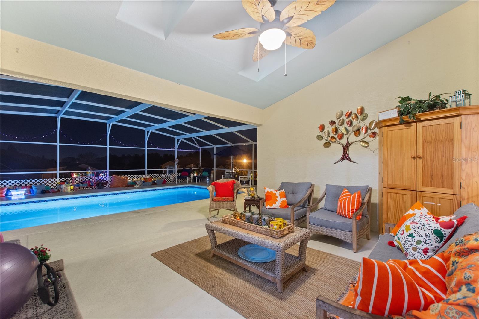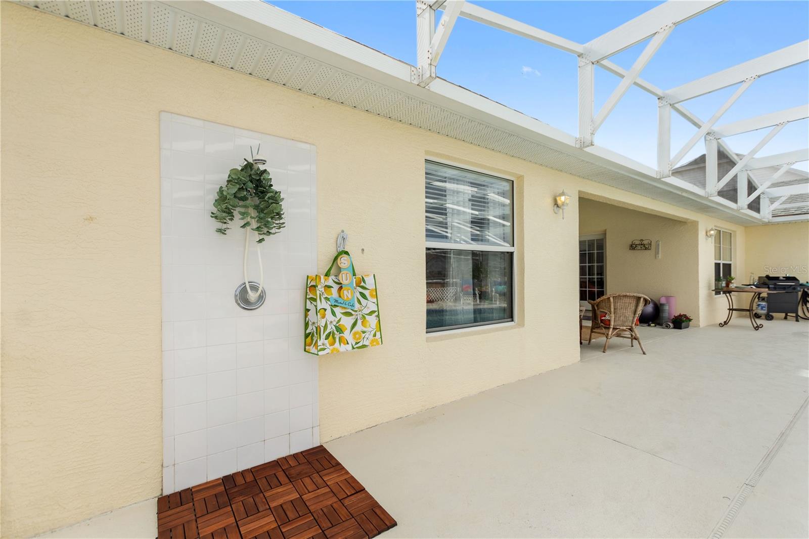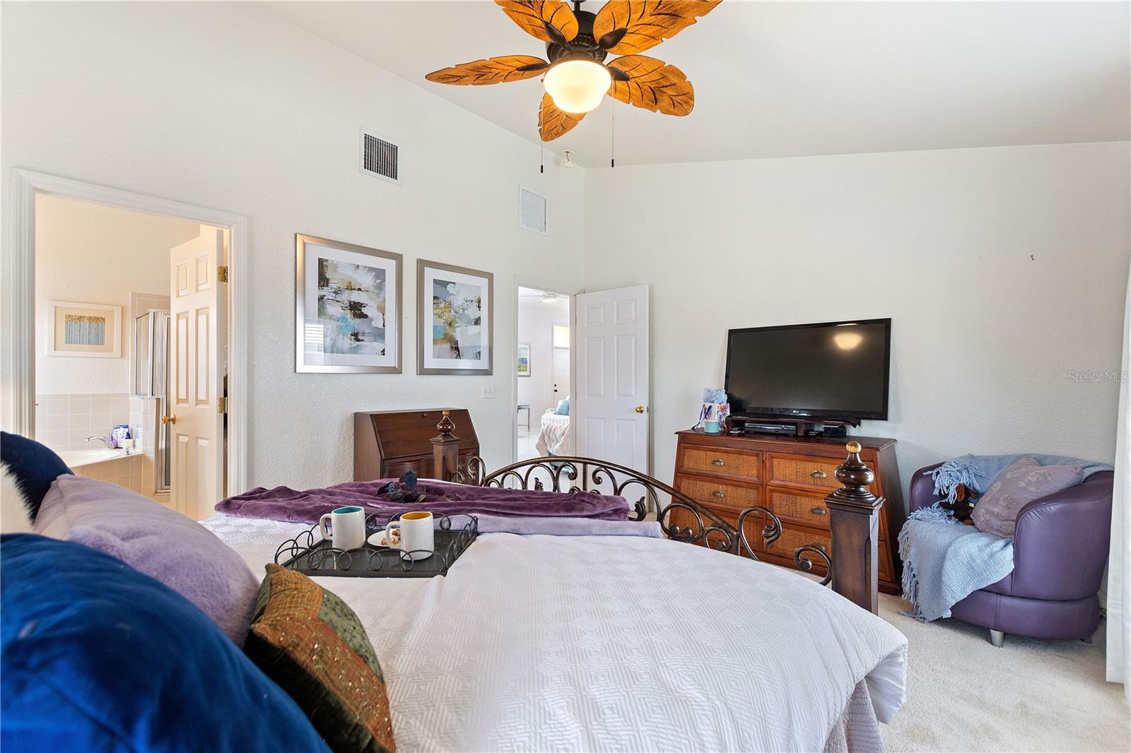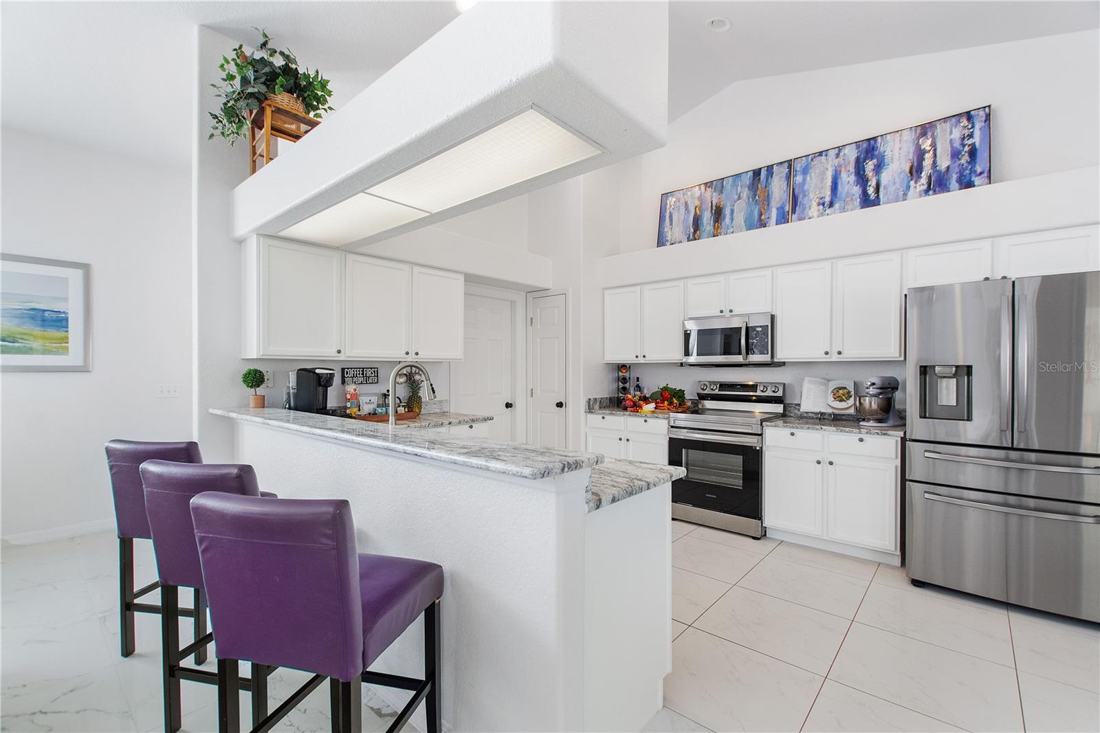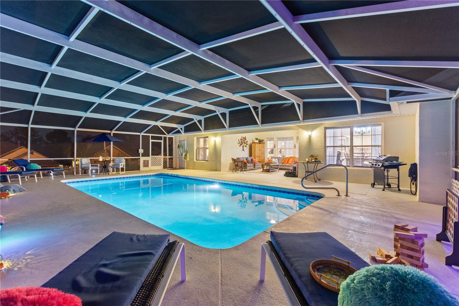 Back on market... Buyer financing fell through last minute...This extremely well maintained single level 4 bedroom, 3 full bath home shines as brightly as Florida's most brilliant sunny days! Located on a 1/4 acre corner lot located a few minutes to abundant shopping, restaurants and Omni's Championsgate Golf Club, not to mention only 15 minutes to Disney! The home rests on high ground with skyward views from almost every vantage point. Delightful from top to bottom, the open/split floor plan enjoys vaulted/cathedral ceilings, skylights, and abundant oversized windows flooding the home with light, providing it with its perfectly sunny disposition. The oversized Porcelain Tiles are a study in Carrera marble and grace nearly the entire home. The bedrooms provide for soft & warm landing with well cared for, high quality carpets. The Kitchen is the heart of the home, overlooking every aspect of the house, and it’s new granite countertops rest exquisitely on white painted solid wood cabinets. The new Samsung suite of stainless steel appliances are a seamless aesthetic blend, and the large single basin under mount kitchen sink is a perfect joy. The Dining Room opens to the large covered lanai with French Doors and an expansive pool & deck for you and your guests to revel in. This is truly an entertaining home with several areas to grill, lounge, dine al fresco, or simply lap up the ubiquitous sunshine. The outdoor shower is both refreshing & convenient. Fully fenced, there are two side gardens which can accommodate your own putting green, fruit trees or herb garden, fire pit, dog run… let your imagination run wild! Once back inside, you’ll find two ensuite bedrooms with Eastern exposures: The Primary (King Sized) Bedroom has pool views, oversized garden tub, corner shower, double walk in closet and privy. The second en suite enjoys a southern exposure. On the West side of the home, are the two guest rooms, sharing the updated bath with new tile surround tub & inserts, cabinet & marble top. All rooms accommodate at least queen sized beds. This fully solar powered home allows for both primary residential or second/vacation home status. With a new roof, solar panels, spray insulation (2022), freshly painted drive, and so much more, this home will be nearly carefree for years to come. The extremely low HOA fees include tennis court & community pool! Come take a look & make your plans. You’ll want to stay.