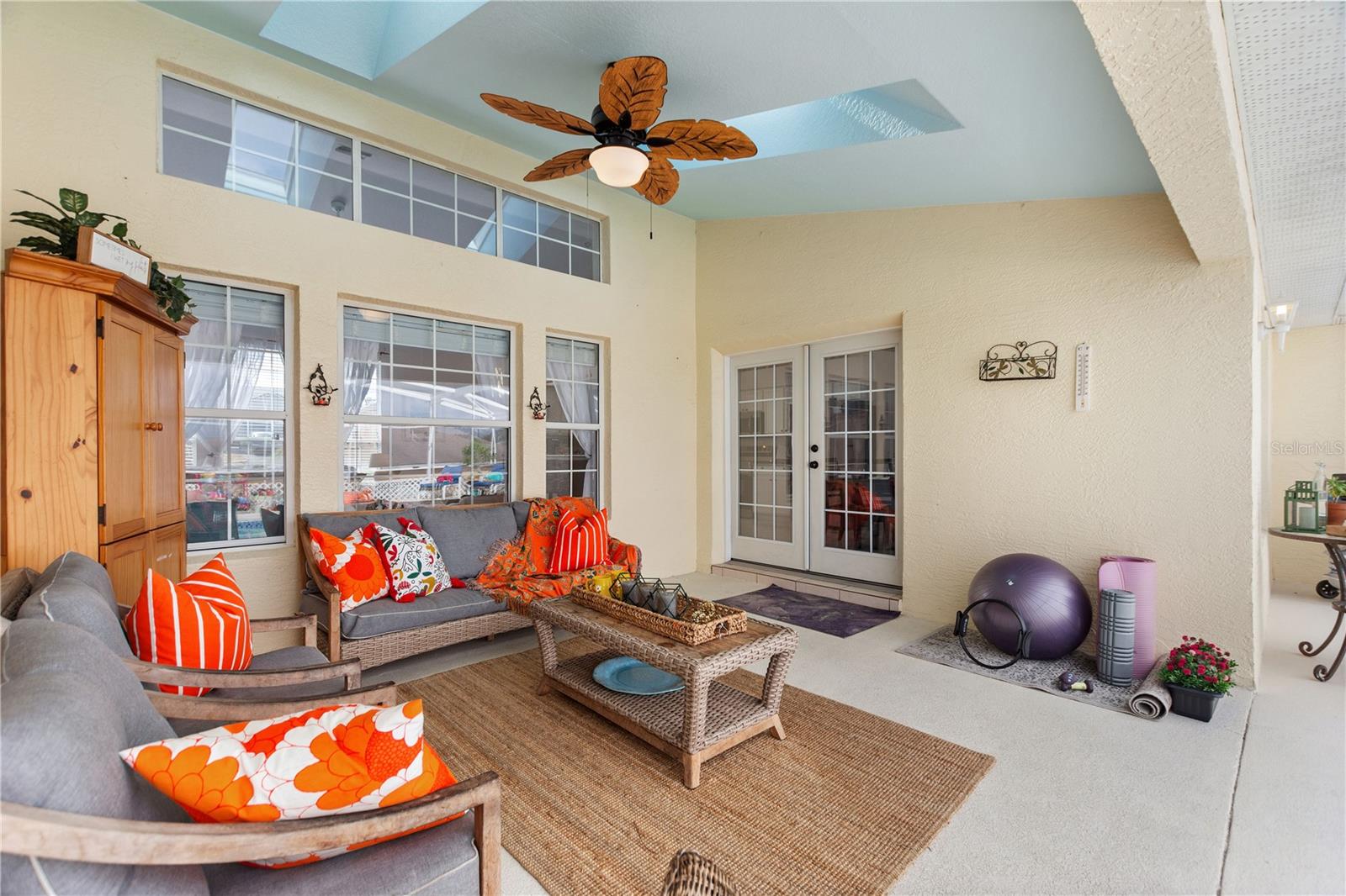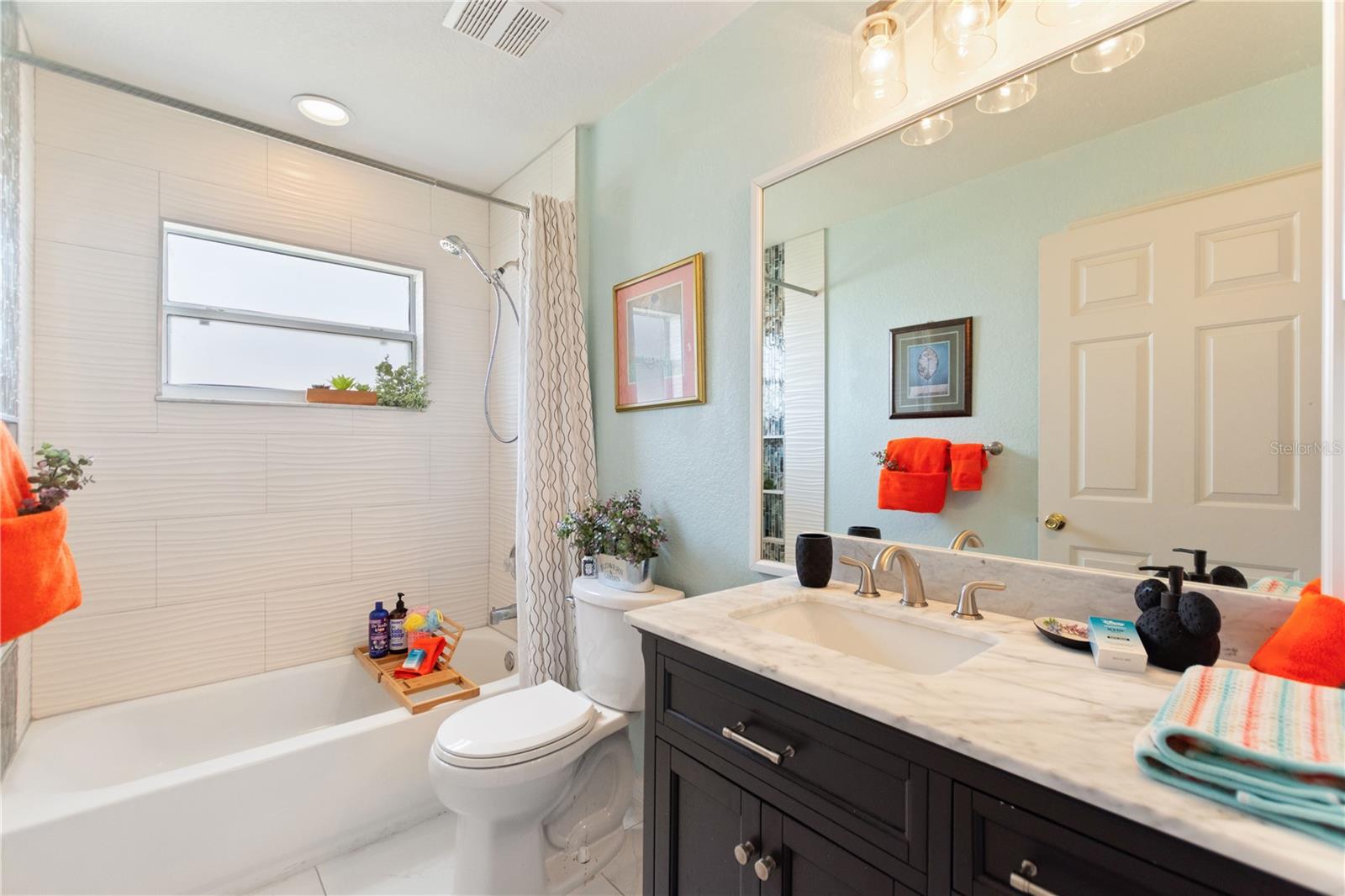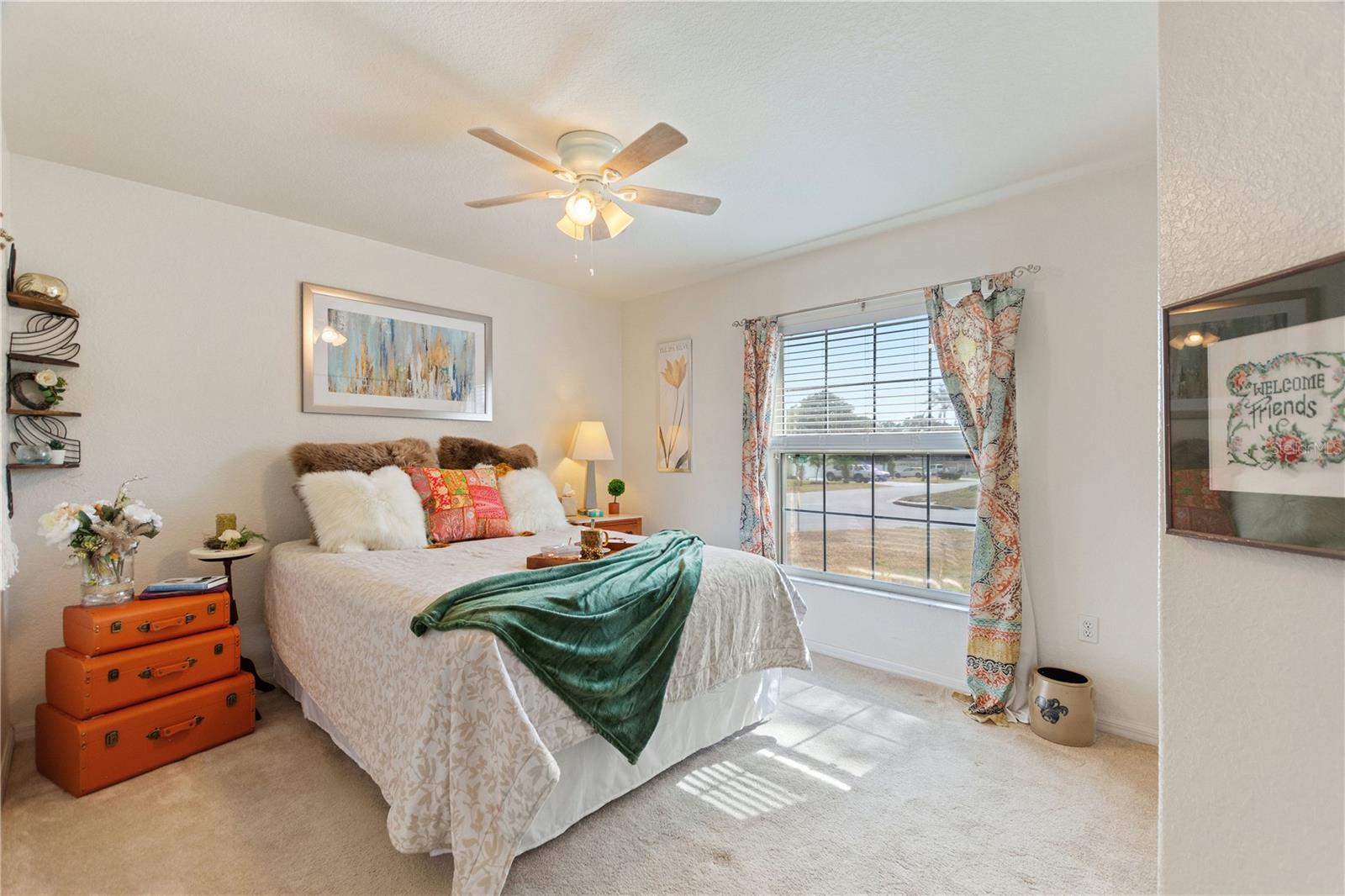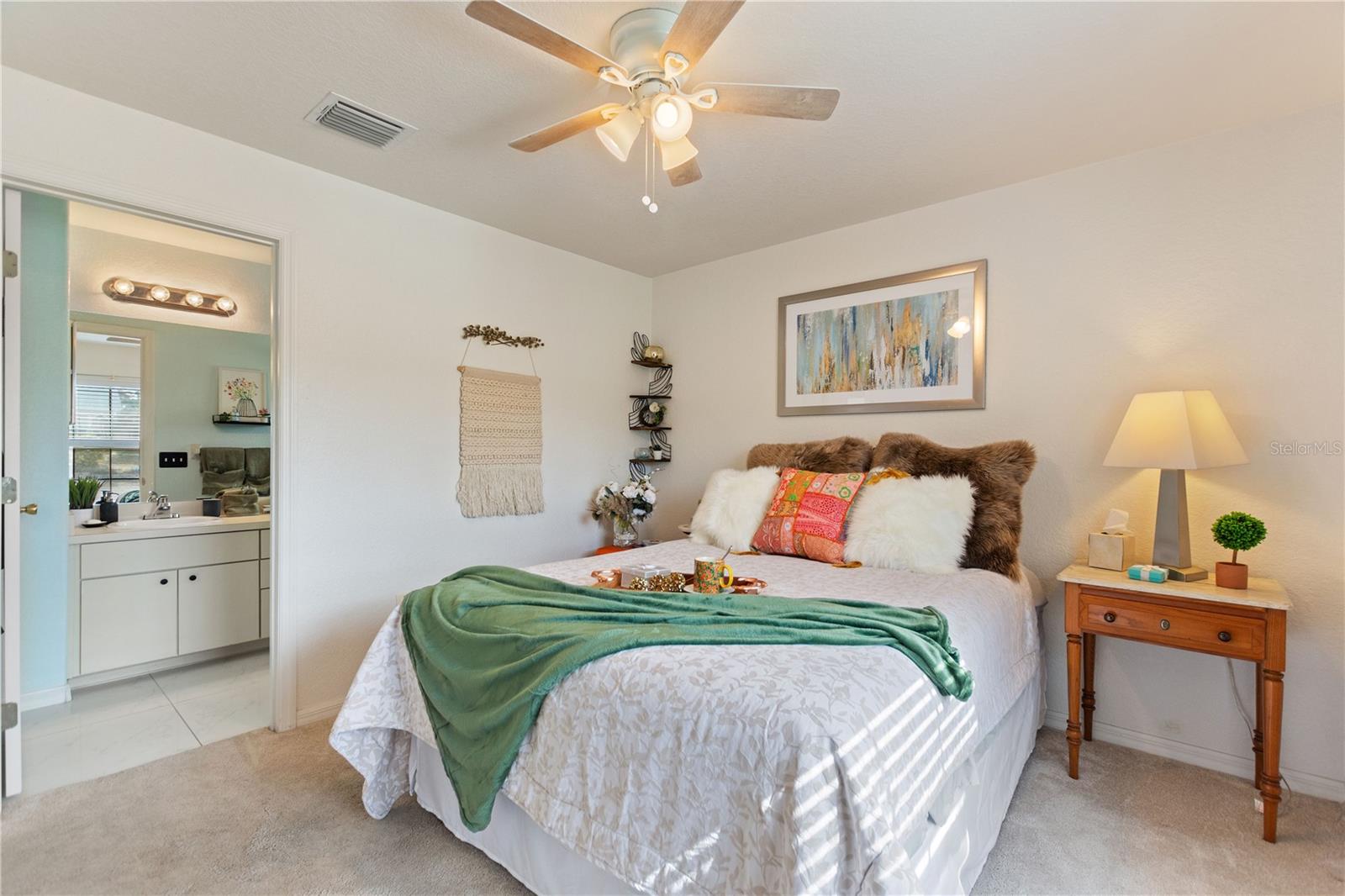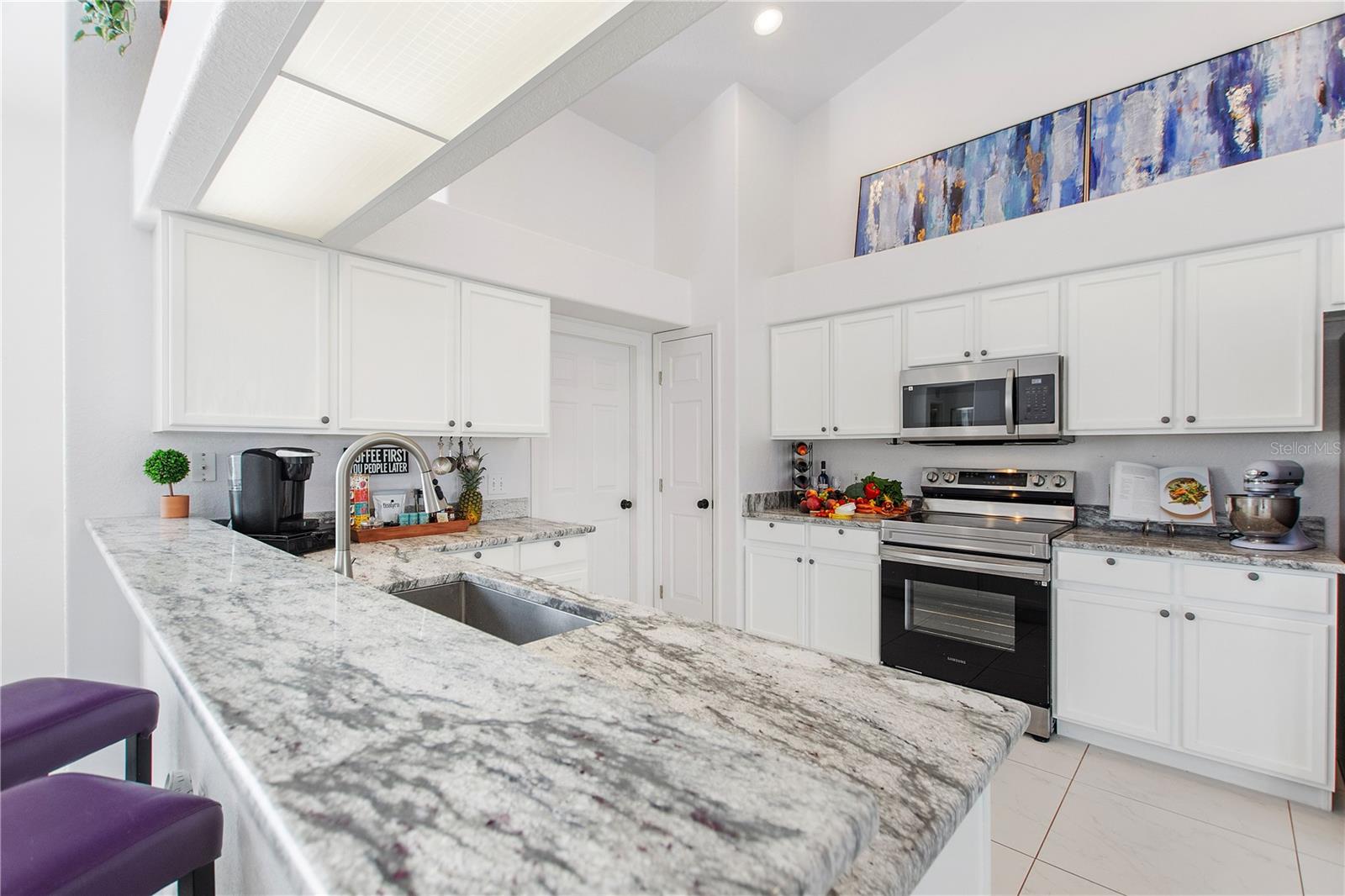 Back on market... Buyer financing fell through last minute...This extremely well maintained single level 4 bedroom, 3 full bath home shines as brightly as Florida's most brilliant sunny days! Located on a 1/4 acre corner lot located a few minutes to abundant shopping, restaurants and Omni's Championsgate Golf Club, not to mention only 15 minutes to Disney! The home rests on high ground with skyward views from almost every vantage point. Delightful from top to bottom, the open/split floor plan enjoys vaulted/cathedral ceilings, skylights, and abundant oversized windows flooding the home with light, providing it with its perfectly sunny disposition. The oversized Porcelain Tiles are a study in Carrera marble and grace nearly the entire home. The bedrooms provide for soft & warm landing with well cared for, high quality carpets. The Kitchen is the heart of the home, overlooking every aspect of the house, and it’s new granite countertops rest exquisitely on white painted solid wood cabinets. The new Samsung suite of stainless steel appliances are a seamless aesthetic blend, and the large single basin under mount kitchen sink is a perfect joy. The Dining Room opens to the large covered lanai with French Doors and an expansive pool & deck for you and your guests to revel in. This is truly an entertaining home with several areas to grill, lounge, dine al fresco, or simply lap up the ubiquitous sunshine. The outdoor shower is both refreshing & convenient. Fully fenced, there are two side gardens which can accommodate your own putting green, fruit trees or herb garden, fire pit, dog run… let your imagination run wild! Once back inside, you’ll find two ensuite bedrooms with Eastern exposures: The Primary (King Sized) Bedroom has pool views, oversized garden tub, corner shower, double walk in closet and privy. The second en suite enjoys a southern exposure. On the West side of the home, are the two guest rooms, sharing the updated bath with new tile surround tub & inserts, cabinet & marble top. All rooms accommodate at least queen sized beds. This fully solar powered home allows for both primary residential or second/vacation home status. With a new roof, solar panels, spray insulation (2022), freshly painted drive, and so much more, this home will be nearly carefree for years to come. The extremely low HOA fees include tennis court & community pool! Come take a look & make your plans. You’ll want to stay.