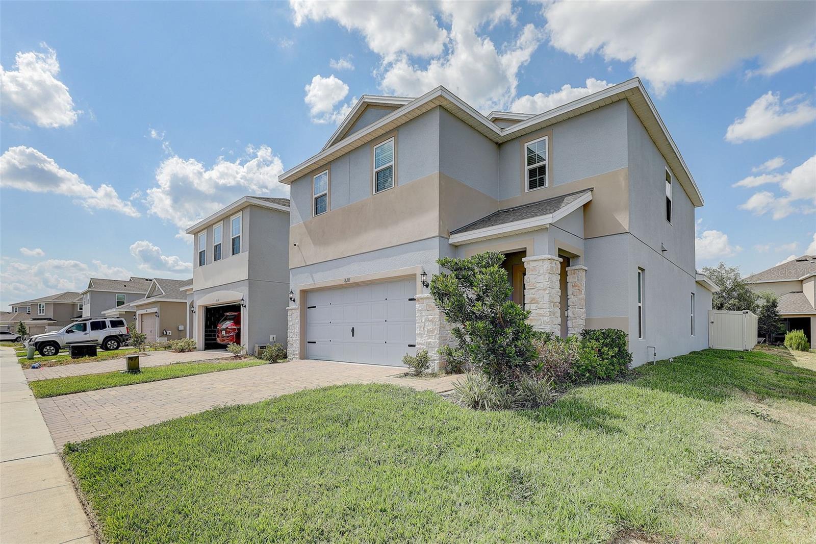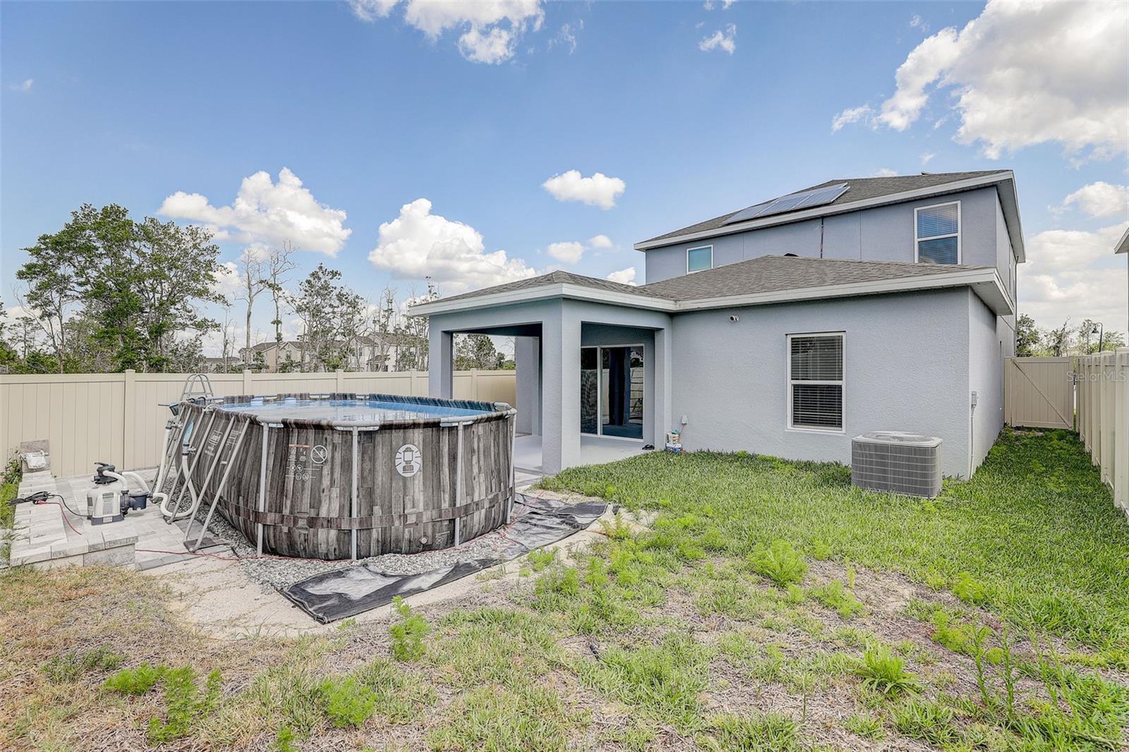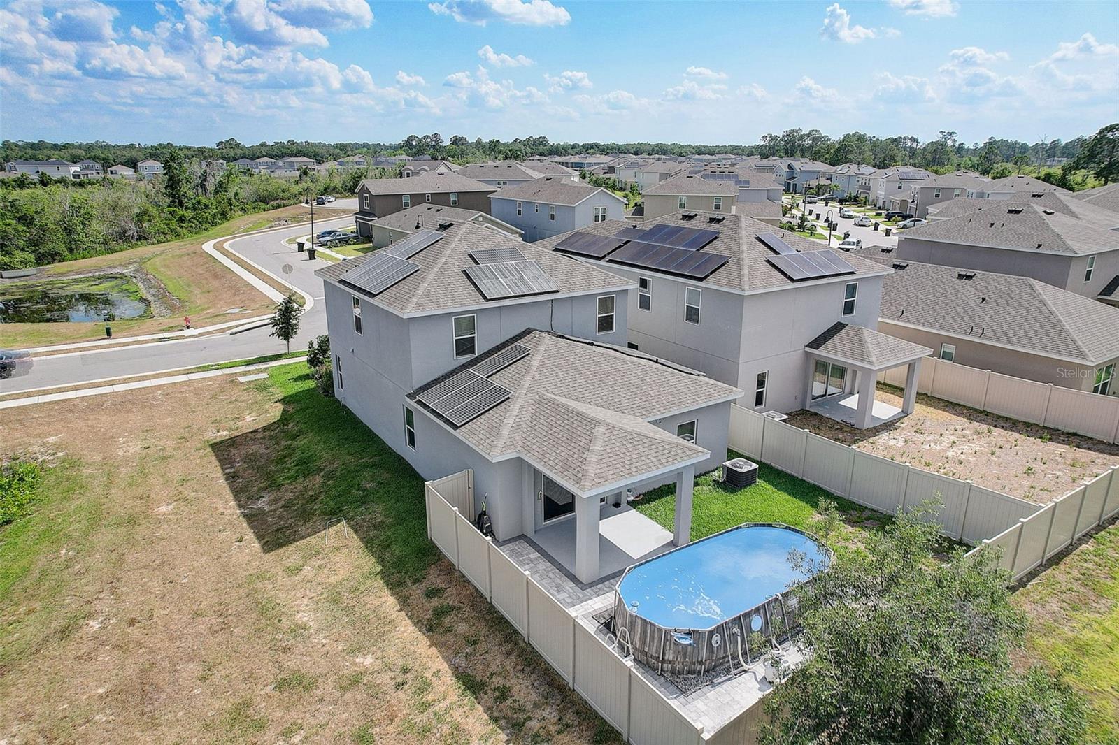 Short Sale. Short sale opportunity! Step into this stunning solar-powered 5-bedroom, 2.5-bath home, where comfort and modern convenience meet. As you enter, you'll be welcomed by an inviting open-concept layout that seamlessly blends the spacious kitchen and family room, making it the perfect hub for gatherings. The first-floor master suite offers a peaceful retreat, complete with a luxurious en-suite bathroom featuring a large digital-controlled shower for the ultimate spa-like experience. Upstairs, a versatile loft connects four additional bedrooms, providing plenty of space for family, guests, or a home office setup. Step outside to your private backyard oasis, where an above-ground pool awaits—perfect for staying cool during those warm Florida days. For added peace of mind, this home is wired for a security system with video surveillance, and the garage is equipped with MyQ smart technology for convenient smartphone access. Don’t miss the opportunity to make this beautiful home yours—schedule a showing today! Solar panels to be assumed by the buyer. Monthly rate is lower than average power bill saving money on power for the buyer.