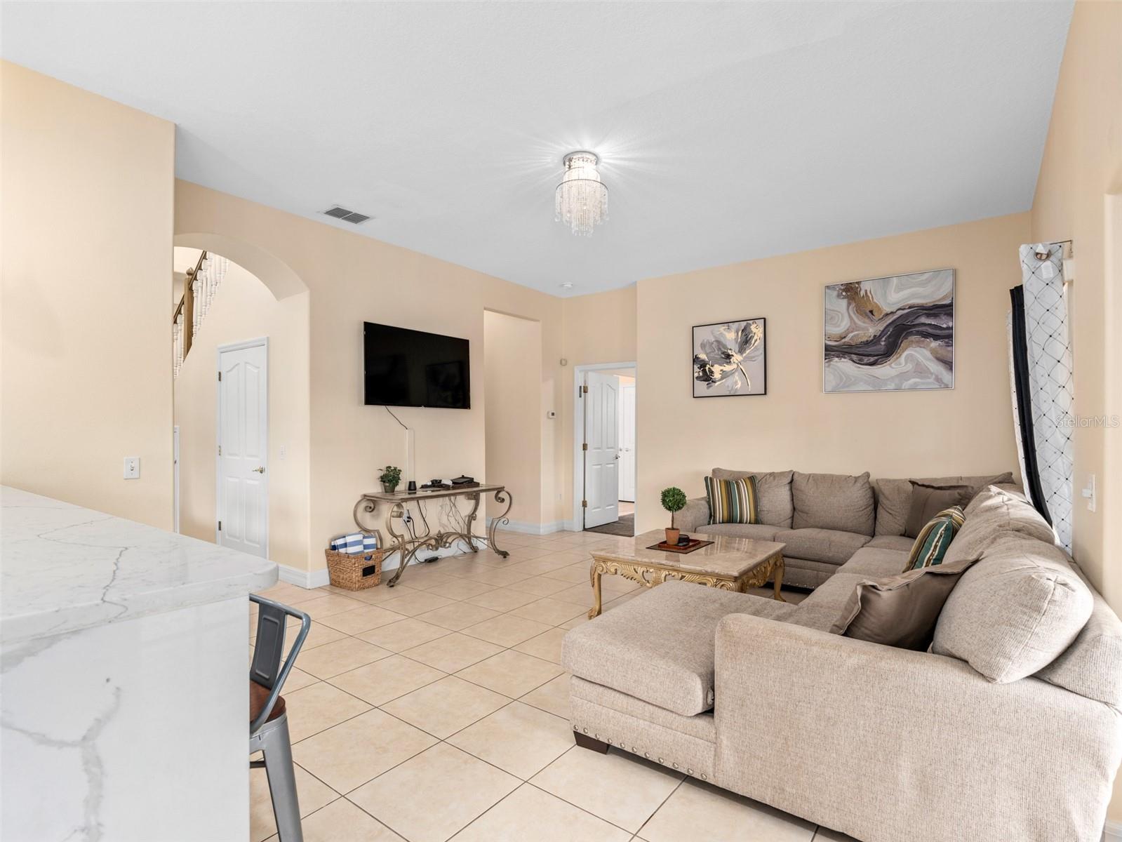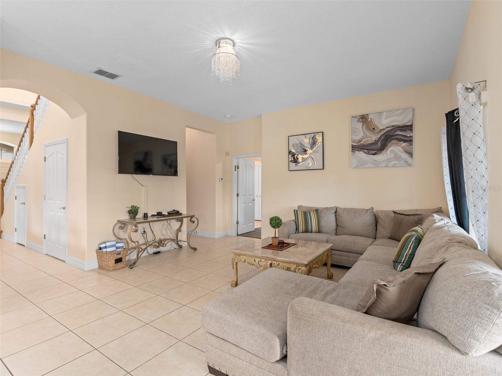Price REDUCED to Sell Fast!!! This exceptional residence features 5 bedrooms, 7 full bathrooms, and a sauna, making it ideally suited for short-term rental, long-term occupancy, or as a primary residence. This house was utilized as a short-term vacation rental through Airbnb for a couple of years after current owner moved out of state. Positioned just 12 minutes from the Disney Parks, this property is nestled within a secure gated community on a generously sized corner lot. Upon entry through the double French doors, guests are welcomed by elegant ceramic tile flooring.To the right lies the primary living room, complemented by a charming fireplace and overlooking the dining room. The dining area provides access to an open-concept kitchen space featuring updated cabinetry, a double kitchen sink, dishwasher, new garbage disposal,microwave,refrigerator, and range. Adjacent to the kitchen is a breakfast nook comfortably seating six individuals. Facing the kitchen is another living area,which leads to a second set of double French doors providing access to the stunning pool and ground spa area, enveloped by a brick decking and accompanied by a full stand-up shower. Here, guests can unwind and appreciate the captivating sunrises and sunsets with loved ones. Please note that the built-in grill is currently non-operational and requires a new burner. The first floor hosts the primary master bedroom,complete with a dual-sink bathroom and expansive walk-in closets. Opposite the master bedroom is a spacious master bathroom featuring a steam stand-up sauna and separate tub. Additionally, a generously sized laundry room is conveniently situated on the same floor, with access to the double-car garage below. Upstairs, four additional bedrooms await discovery. The second master bedroom offers dual sinks, tiled floors, a separate shower and tub, and a walk-in closet. The third bedroom is equipped with a full shower/tub bathroom, while the fourth bedroom features a stand-up shower. The fifth bedroom also boasts its own full shower/tub bathroom, all adorned with Mediterranean-style roofing. FURNITURE in the pictures will NOT CONVEY, However, the Sauna Room and Equipment will. Land, Site, and Tax Information