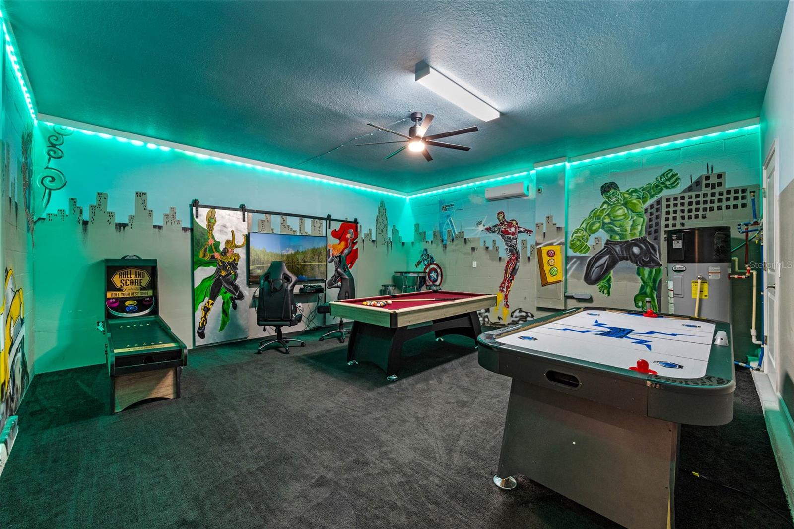 Turnkey Short-Term Rental Home with paid off Solar panels,in ChampionsGate Resort – Ready to Generate Income! Welcome to this FULLY FURNISHED, turnkey short-term rental pool home located in the prestigious ChampionsGate Resort, a top-rated vacation destination. This property is perfectly positioned to generate immediate rental income and is a rare find in a community with strong rental demand (Over $23,000 already booked in 2025). The home has been fully optimized for short-term rental success, featuring multiple themed bedrooms that appeal to families and guests, including Toy Story, Harry Potter, Beauty and the Beast, and a custom-designed MOVIE THEATER. These unique touches make it stand out in the competitive vacation rental market. In addition, established bookings can convey with the sale, allowing the new owner to step into a property already generating revenue. Energy efficiency is a key advantage, with smart thermostats and FULLY PAID OFF SOLAR PANELS that will save you thousands annually on electric bills, improving your return on investment. ChampionsGate Resort itself offers a state-of-the-art clubhouse, a LAZY RIVER over 1,000 feet long, indoor cabanas, an arcade, fitness center, GOLF COURSE, and a Tiki Bar by the pool. Guests can also enjoy beach volleyball courts, an onsite movie theater, and world-class amenities that ensure a memorable experience. Located only 15 minutes from DISNEY PARKS and offering easy access to Universal Studios, major highways, shopping, and dining, this home is perfectly situated to take advantage of Orlando’s thriving tourism market. With over 75 million visitors annually, the area provides a steady stream of potential renters. The opening of Universal’s EPIC UNIVERSE in 2025 will drive even more traffic to the region, securing long-term demand for vacation homes. This fully furnished home is truly turnkey and ready for immediate RENTAL INCOME. The association takes care of exterior maintenance, minimizing the hassle for owners. With a superhero-themed garage and bedrooms that captivate children and adults alike, this home offers something for everyone. Take advantage of this exceptional investment opportunity in one of the most sought-after vacation rental markets in the country. This property is ready to hit the ground running and will deliver high returns for the savvy investor. Don’t miss your chance—schedule a tour today!