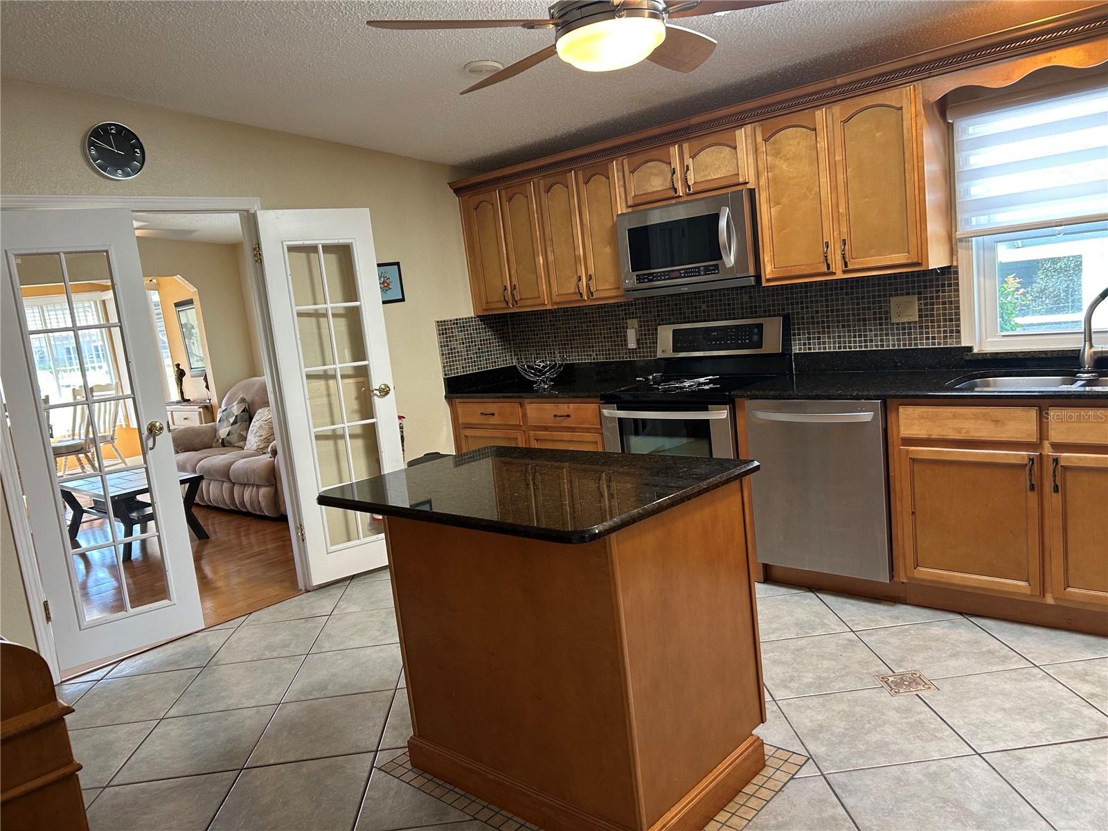 Park East is an age 55+ Resident Owned Cooperative (Co-op) Community. The price of the home includes 1 share of the community ownership valued at $56,400). When you are a shareholder there is no lot rent to pay. The HOA fee for this property is $254.00 every month which includes Lawn Cutting and Edging, DIRECTV STREAM Cable and Frontier Fiber Optic High Speed WIFI. The clubhouse features an exercise room, library, billiard room and large hall with full kitchen (available to rent for private parties) where loads of community activities take place including Bingo half the year on Thursday nights and community holiday parties. Golf carts ok in community to drive on roads. Come live in this well sought after community and also enjoy the beautiful picturesque lakefront with 2 boat docks and picnic area. Executive public 9 hole golf course surrounds this beautiful community. Incredible picturesque lakefront with picnic area ,bbq's and firepit private boat ramp docks and fishing pier. Pool area with lounges, heated pool with relaxing spa. 15 minutes to Disney property. Taxes are paid to Polk County. Waiting for that spectacular home in this well sort after community of Polo Park East? Well here it is!! Location is just superb. Located in between to bodies of water with views of memory lake with its beautiful fountain and Lake Davenport in sight when looking over the 1st green on the golf course where this home sits on the 1st fairway!! That is just the location part of this beauty. Add this very well maintained a home that exudes with pride of ownership in every part of the home. Engineered hardwood and ceramic tile floors throughout. Modern kitchen with granite counter and top of the line stainless steel appliances and a center island.The huge lanai in the rear of the home boasts the magnificent views of the bodies of water while you relax and take it the views or enjoying a nice meal or snack while doing so. Master bedroom with french doors and updated master bath with floor to ceiling tiles in the shower. Formal Living room and dining room with engineered hardwood floors. This home was originally built has a 3 Bedroom now boast a comfortable great room for enjoying informal gatherings. Roof and Air condition less than a year old. Updated double pane windows throughout. House is impeccable don't miss it. Carport with 2 spaces and room for a golf cart. attached shed for storage. Indoor laundry area. House is being conveyed fully furnished with all high end furniture as seen.