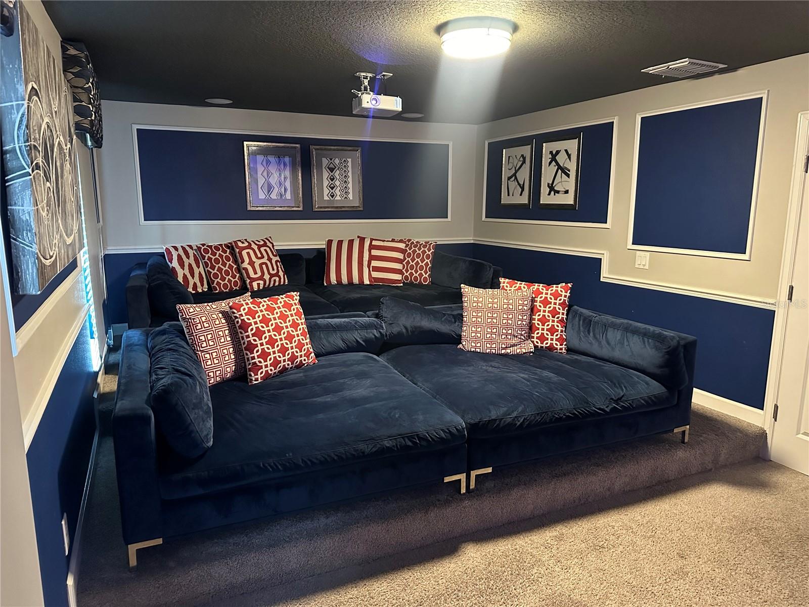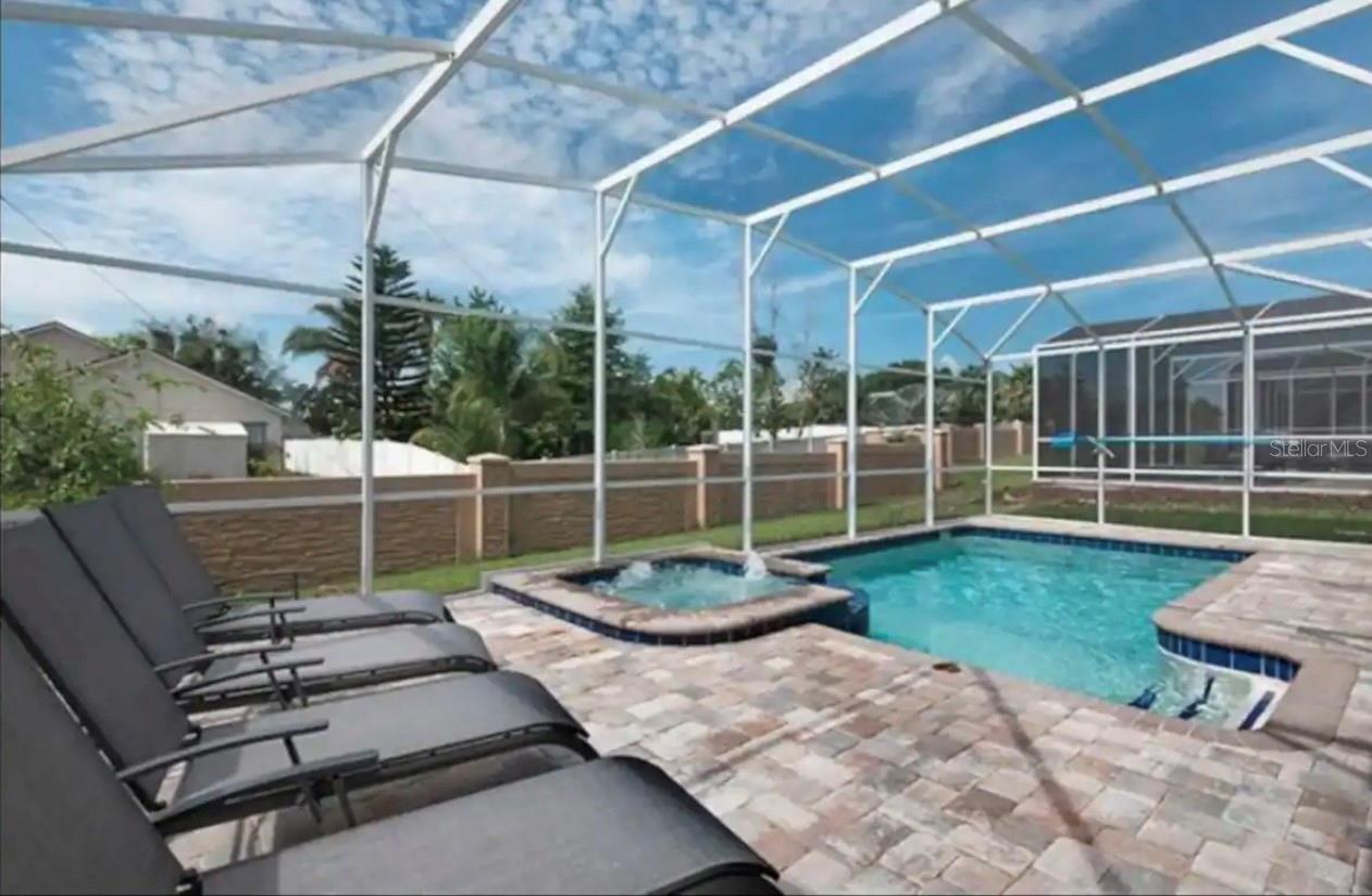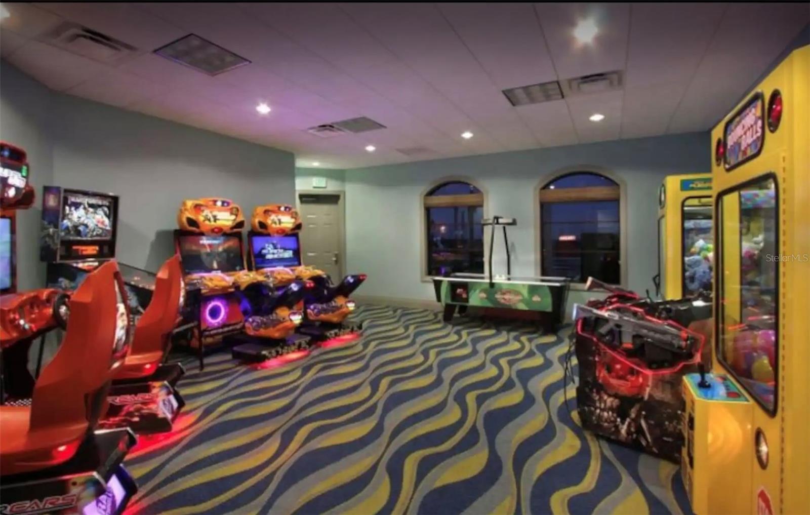 Amazing TURN KEY 8 bedroom, heated pool/spa home located in the Retreat at Champion's Gate just a few blocks away from the Oasis resort-style clubhouse loaded with family-fun amenities and restaurant / bar. This updated home is currently used for and has everything needed for short-term rentals. As you enter the home the fun begins! On the left is the ONE OF A KIND military tribute, Call of Duty themed, fully converted garage / games room with 4 GAME STATIONS, air hockey, foosball, ceiling fans, and air conditioner. Continuing through you have the open floor plan including the modern kitchen with granite countertops, large comfortable living room, elegant dining room, and direct access to the patio area with refreshing, heated POOL & HOT TUB!!!. Also downstairs are two bedrooms. The split plan has one bedroom with ensuite / shared bathroom in the front and the downstairs primary bedroom / bathroom in the back. The downstairs primary bathroom has dual sinks, a walk in shower, garden tub, and direct access to the pool /patio. Upstairs is another large living area with a billiard table and large tv surrounded by 6 more bedrooms, 3 bathrooms, and laundry closet with washer and dryer. Two of these bedrooms are THEMED. One SUPER HERO bedroom and the other beautifully designed FROZEN themed. Also upstairs you will find a spacious comfortable theater room with a projector, large screen, and huge comfortable seating to ENJOY THE SHOW!!!. This home was professionally designed / furnished with custom made window treatments, tvs, and ceiling fans. Rain or shine this beautiful home was designed to accommodate and entertain large or multiple families / groups. If you decide to venture out, enjoy the day at the Oasis clubhouse featuring a lazy river, large community pool, splash area, restaurant, movie theater, fitness room, and volleyball courts... All of this without having to leave the Gated Resort! Then of course you have all the wonderful theme parks Kissimmee has to offer to make more lasting memories. Come take a look, you won't be disappointed!