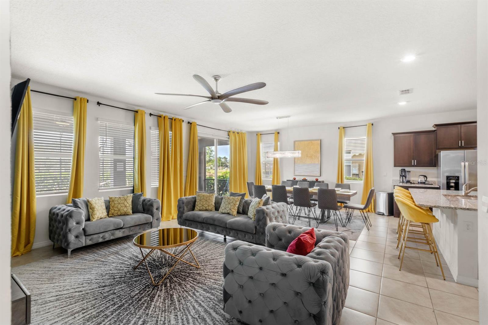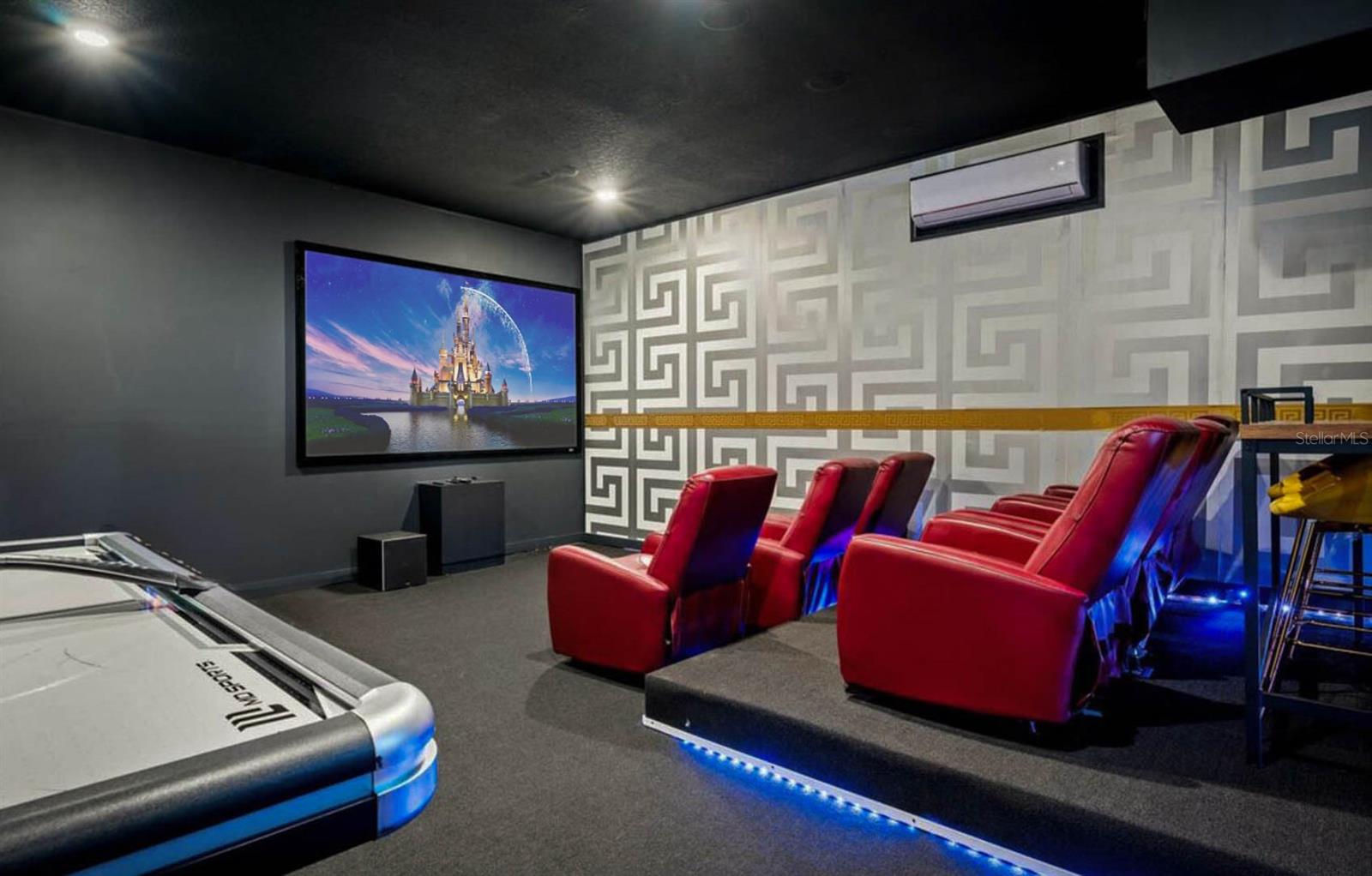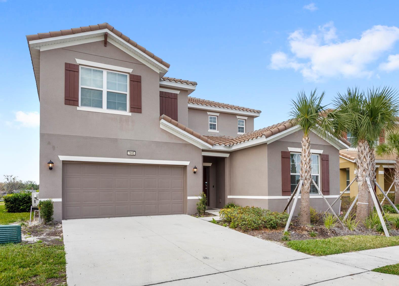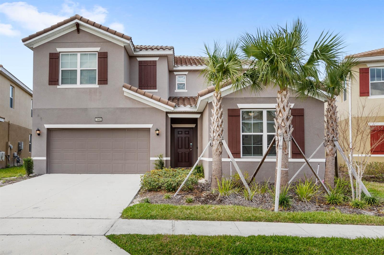 This is the vacation home you've been waiting for! TURN KEY, FULLY FURNISHED, DECORATED and THEMED to IMPRESS! The private pool overlooks a WATER VIEW. GARAGE has been CONVERTED TO AN ENTERTAINMENT SPACE with its own air conditioning split. Seven bedrooms, five and a half bathrooms. This home features TWO PRIMARY BEDROOM SUITES: one on the first floor and one on the second floor. A total of two bedrooms downstairs and five upstairs. A large upstairs loft with a pool table. Solterra Resort is perfect for your second home next door to Walt Disney World Theme Parks, Seaworld, and Universal Studios. The Resort Style Community is GUARD GATED, has a LUXURY RESORT STYLE POOL, LAZY RIVER, WATER SLIDE, ONSITE BAR AND GRILL, FITNESS CENTER, CLUBHOUSE, HOT TUB, TENNIS COURTS, PLAYGROUND, and WALKING TRAILS. Only a short drive to CHAMPIONSGATE Golfing, restaurants, and grocery. Close to POSNER PARK SHOPPING CENTER for more shopping, and dining options.