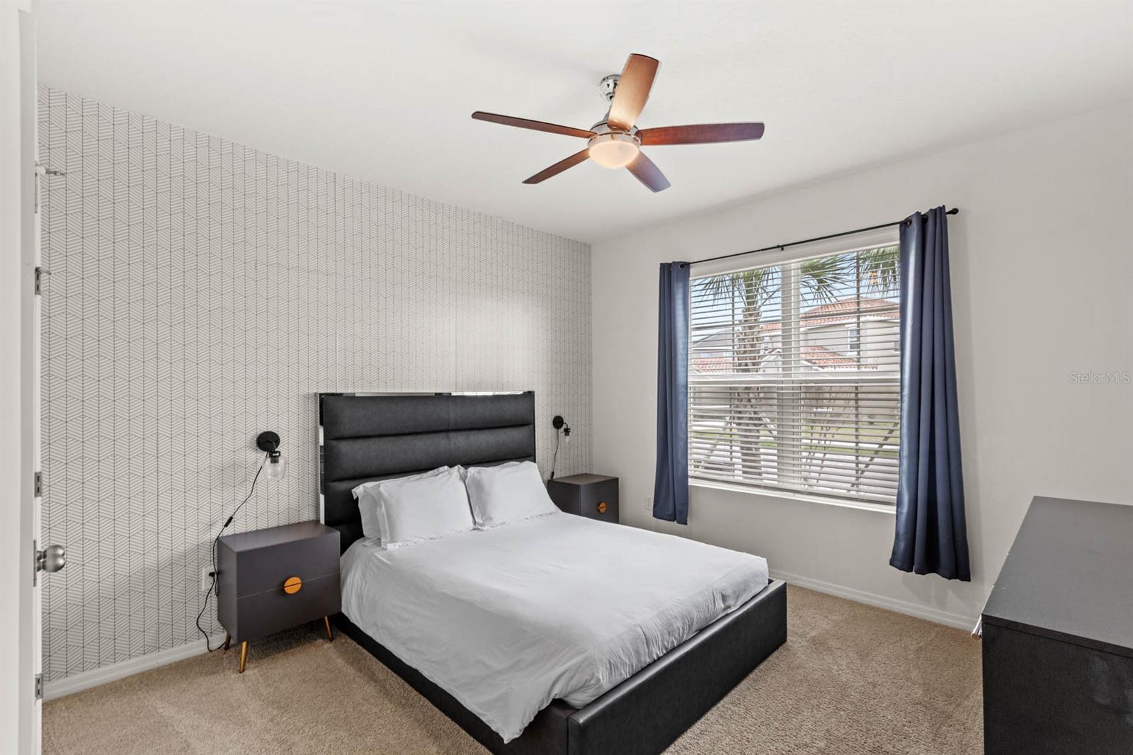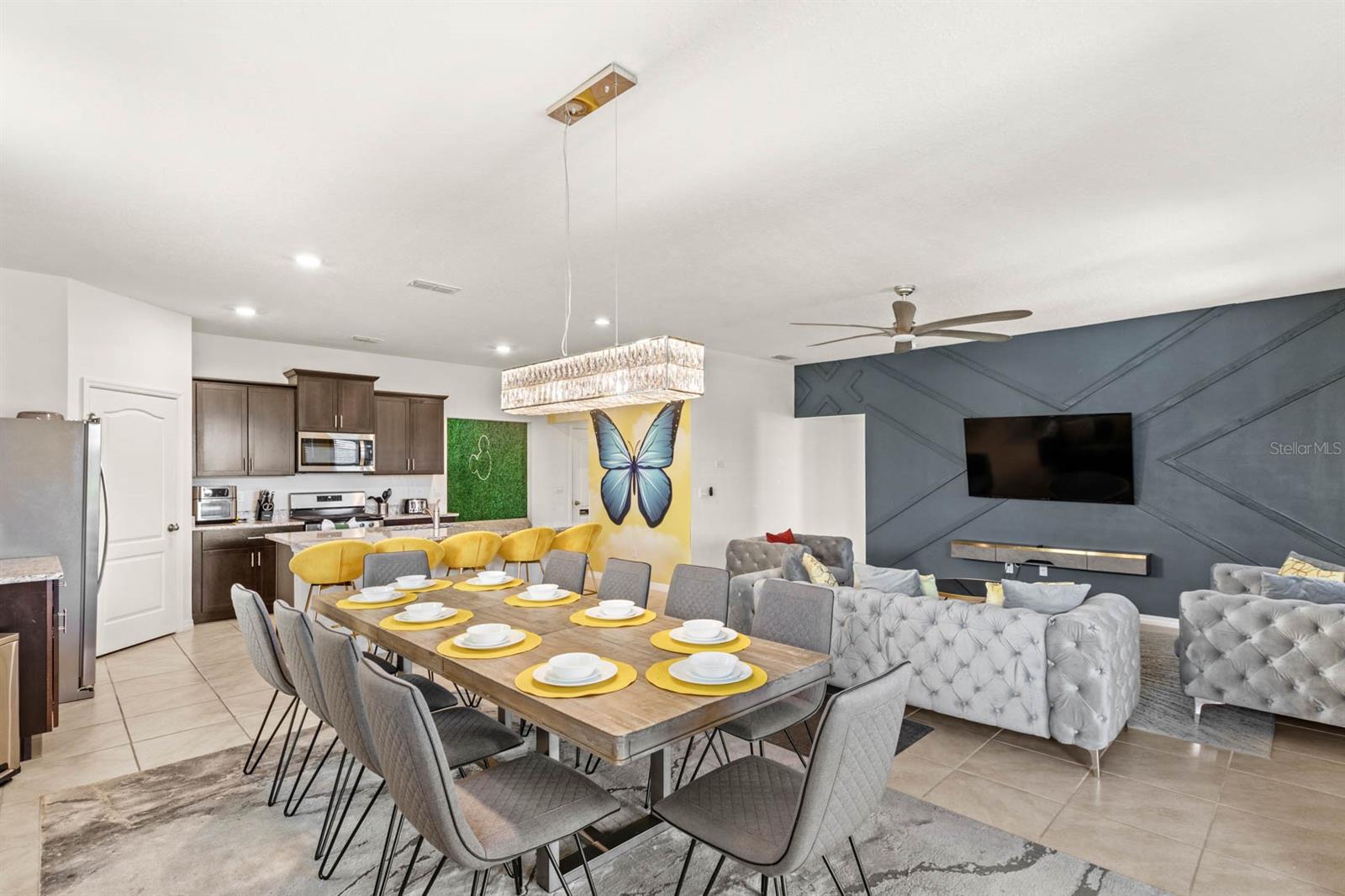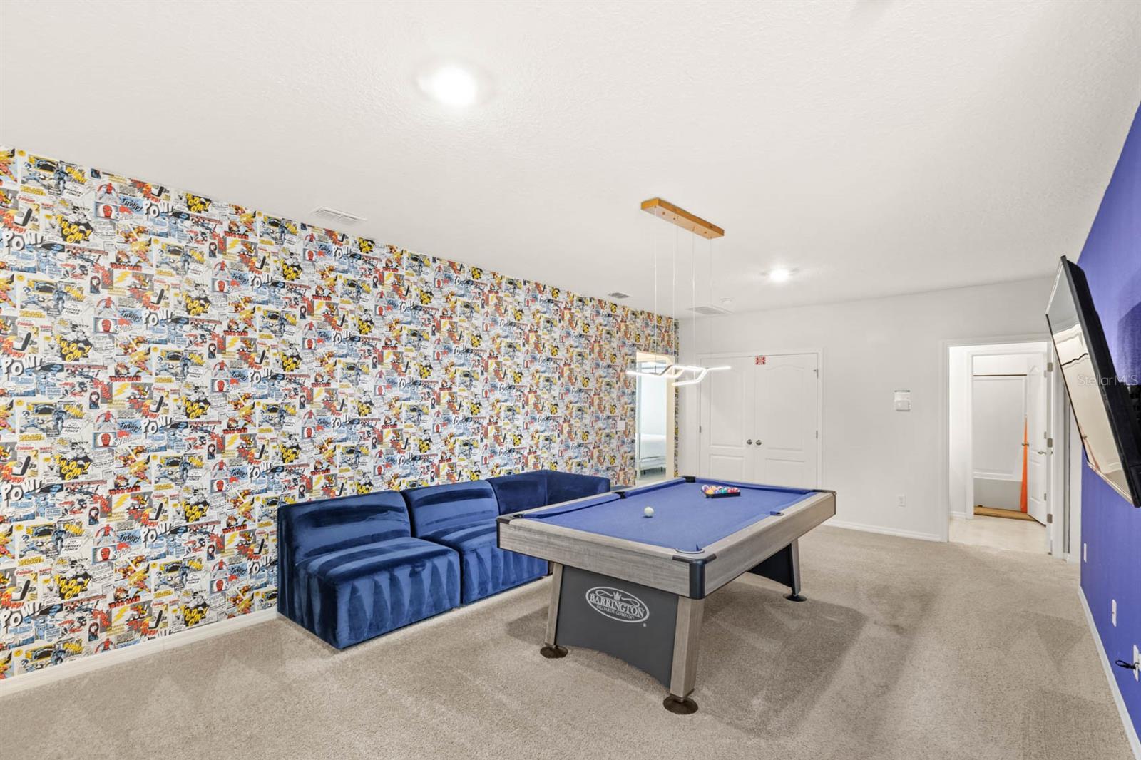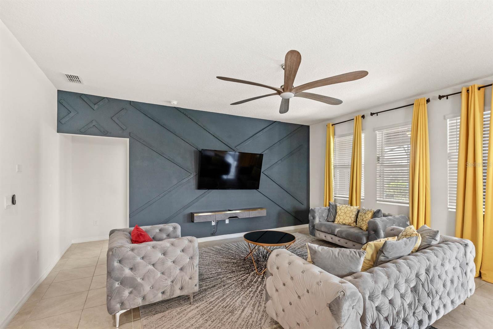 This is the vacation home you've been waiting for! TURN KEY, FULLY FURNISHED, DECORATED and THEMED to IMPRESS! The private pool overlooks a WATER VIEW. GARAGE has been CONVERTED TO AN ENTERTAINMENT SPACE with its own air conditioning split. Seven bedrooms, five and a half bathrooms. This home features TWO PRIMARY BEDROOM SUITES: one on the first floor and one on the second floor. A total of two bedrooms downstairs and five upstairs. A large upstairs loft with a pool table. Solterra Resort is perfect for your second home next door to Walt Disney World Theme Parks, Seaworld, and Universal Studios. The Resort Style Community is GUARD GATED, has a LUXURY RESORT STYLE POOL, LAZY RIVER, WATER SLIDE, ONSITE BAR AND GRILL, FITNESS CENTER, CLUBHOUSE, HOT TUB, TENNIS COURTS, PLAYGROUND, and WALKING TRAILS. Only a short drive to CHAMPIONSGATE Golfing, restaurants, and grocery. Close to POSNER PARK SHOPPING CENTER for more shopping, and dining options.