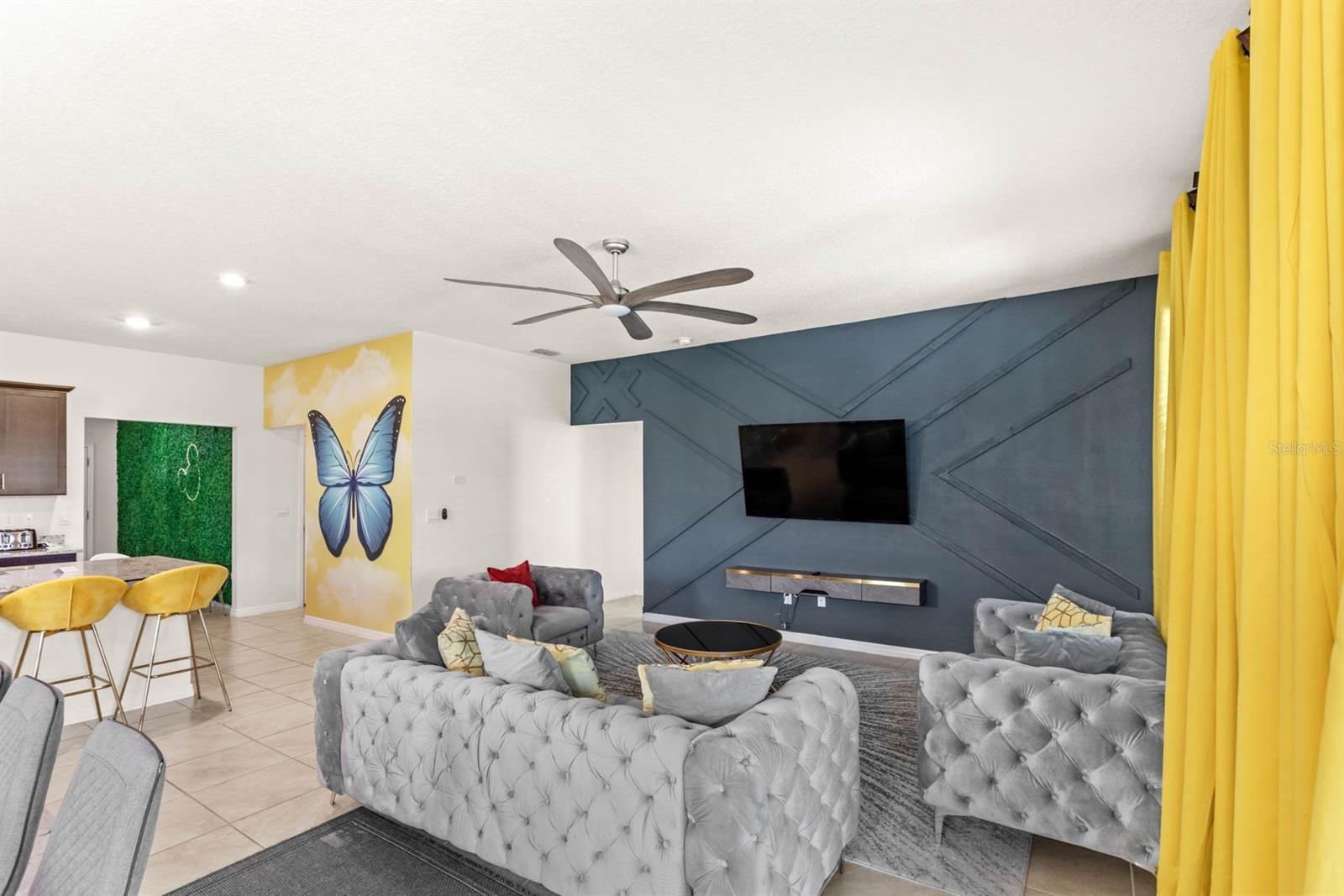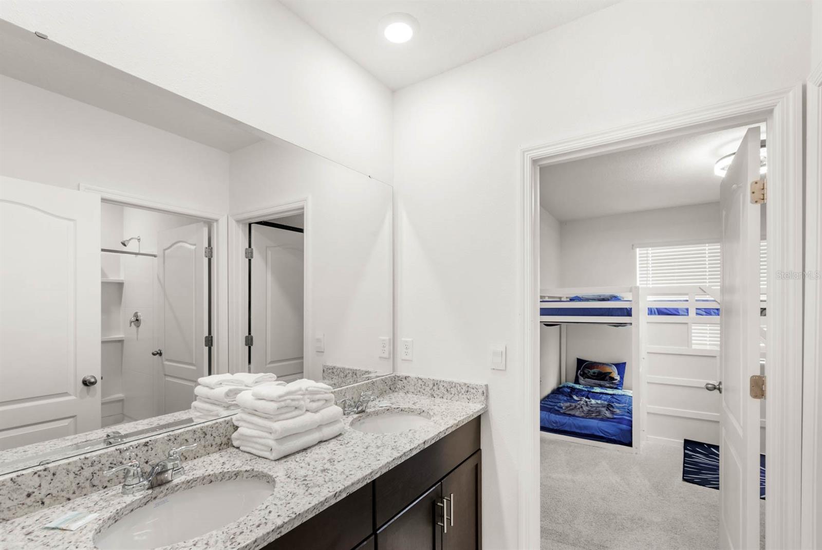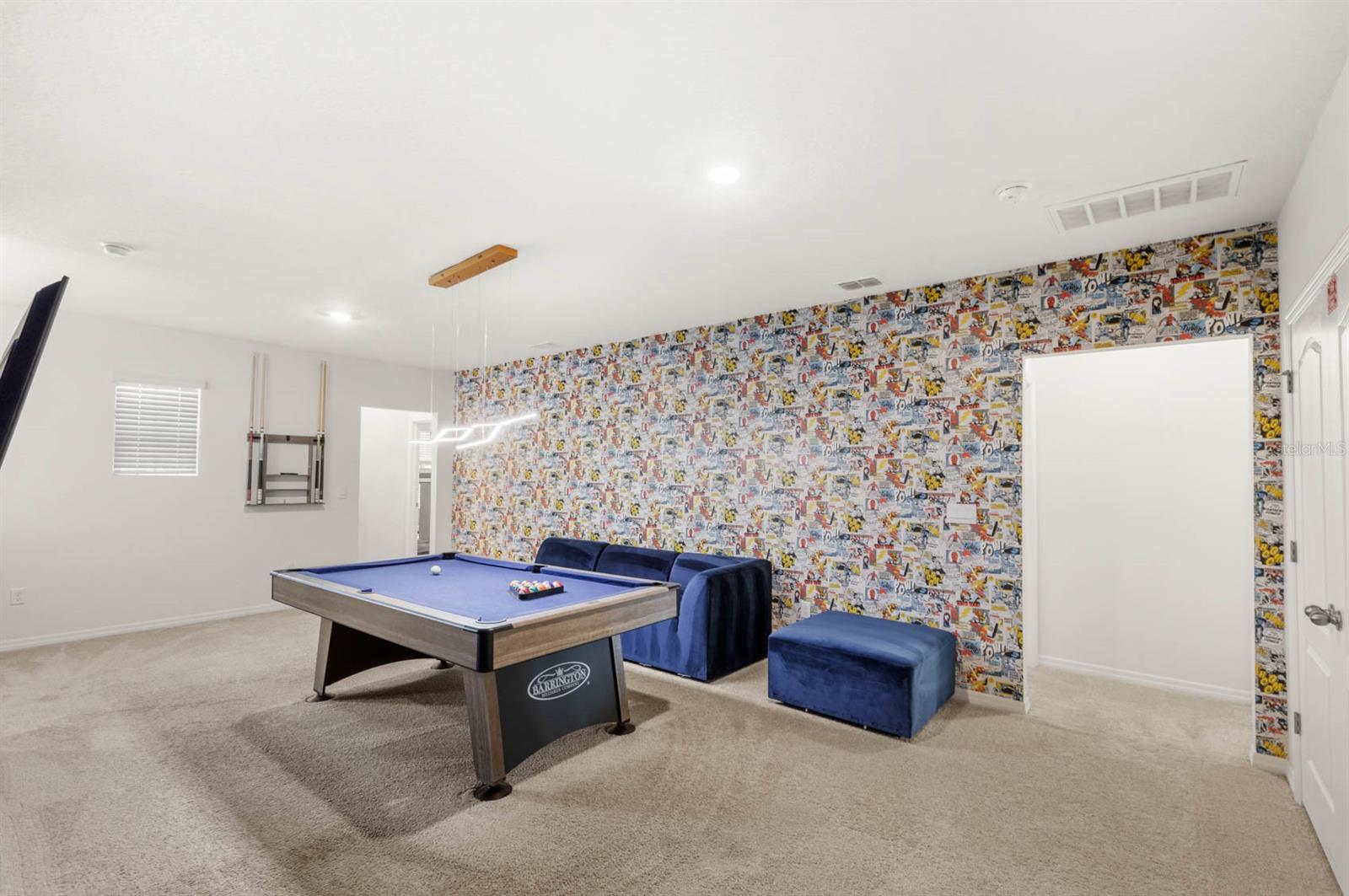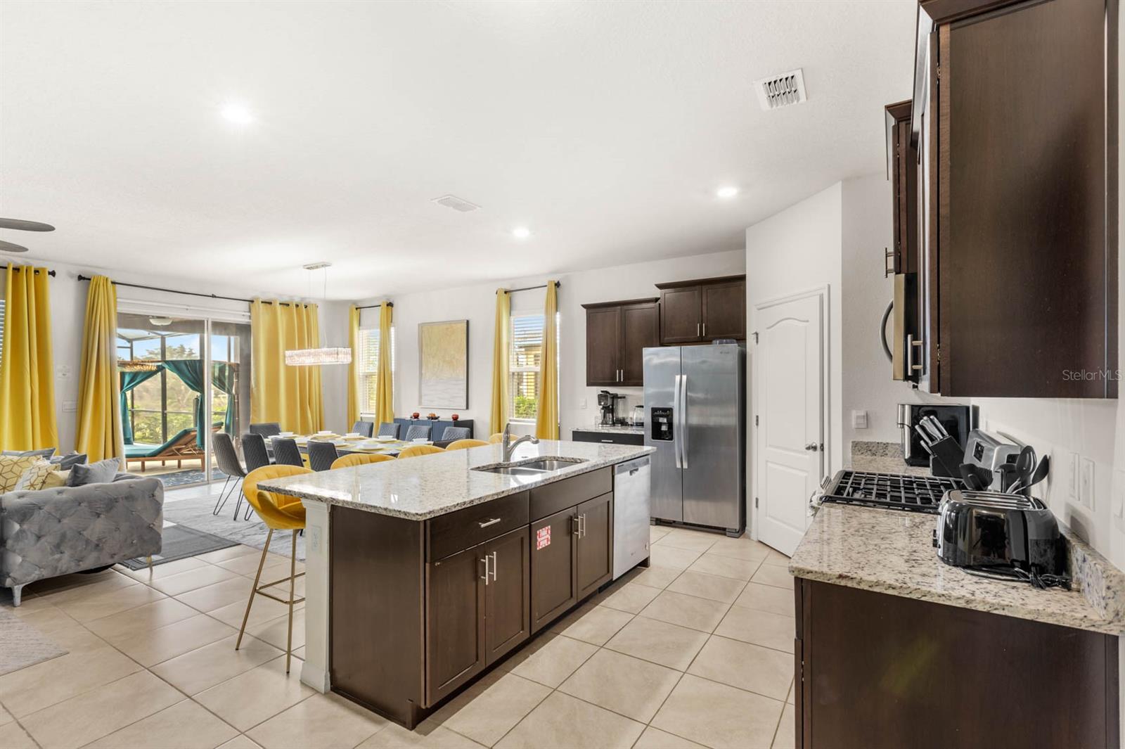 This is the vacation home you've been waiting for! TURN KEY, FULLY FURNISHED, DECORATED and THEMED to IMPRESS! The private pool overlooks a WATER VIEW. GARAGE has been CONVERTED TO AN ENTERTAINMENT SPACE with its own air conditioning split. Seven bedrooms, five and a half bathrooms. This home features TWO PRIMARY BEDROOM SUITES: one on the first floor and one on the second floor. A total of two bedrooms downstairs and five upstairs. A large upstairs loft with a pool table. Solterra Resort is perfect for your second home next door to Walt Disney World Theme Parks, Seaworld, and Universal Studios. The Resort Style Community is GUARD GATED, has a LUXURY RESORT STYLE POOL, LAZY RIVER, WATER SLIDE, ONSITE BAR AND GRILL, FITNESS CENTER, CLUBHOUSE, HOT TUB, TENNIS COURTS, PLAYGROUND, and WALKING TRAILS. Only a short drive to CHAMPIONSGATE Golfing, restaurants, and grocery. Close to POSNER PARK SHOPPING CENTER for more shopping, and dining options.