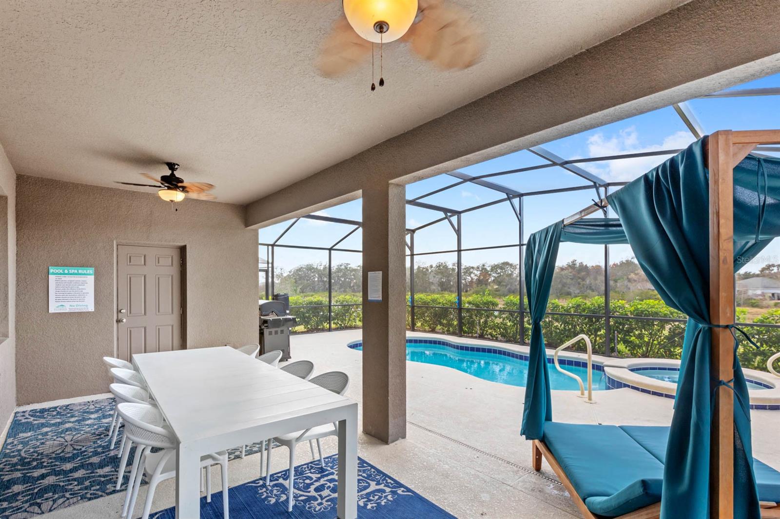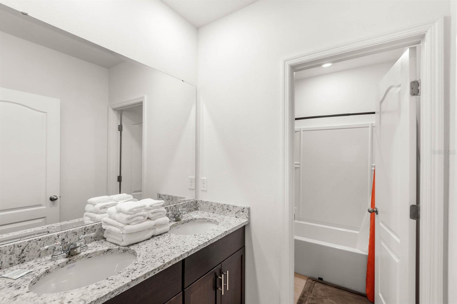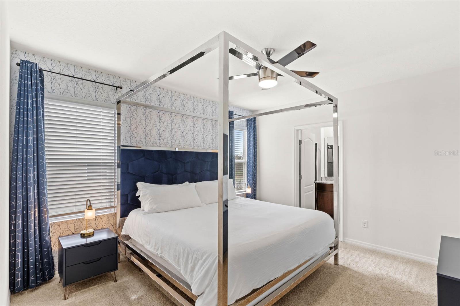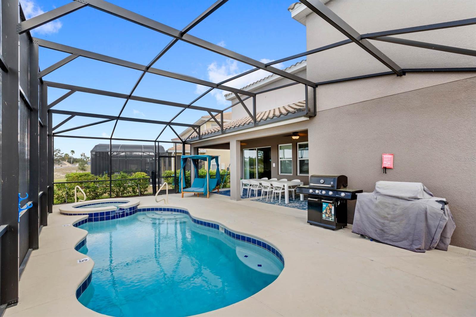 This is the vacation home you've been waiting for! TURN KEY, FULLY FURNISHED, DECORATED and THEMED to IMPRESS! The private pool overlooks a WATER VIEW. GARAGE has been CONVERTED TO AN ENTERTAINMENT SPACE with its own air conditioning split. Seven bedrooms, five and a half bathrooms. This home features TWO PRIMARY BEDROOM SUITES: one on the first floor and one on the second floor. A total of two bedrooms downstairs and five upstairs. A large upstairs loft with a pool table. Solterra Resort is perfect for your second home next door to Walt Disney World Theme Parks, Seaworld, and Universal Studios. The Resort Style Community is GUARD GATED, has a LUXURY RESORT STYLE POOL, LAZY RIVER, WATER SLIDE, ONSITE BAR AND GRILL, FITNESS CENTER, CLUBHOUSE, HOT TUB, TENNIS COURTS, PLAYGROUND, and WALKING TRAILS. Only a short drive to CHAMPIONSGATE Golfing, restaurants, and grocery. Close to POSNER PARK SHOPPING CENTER for more shopping, and dining options.