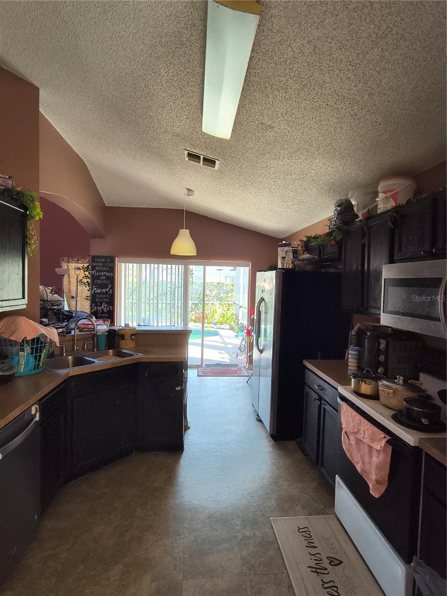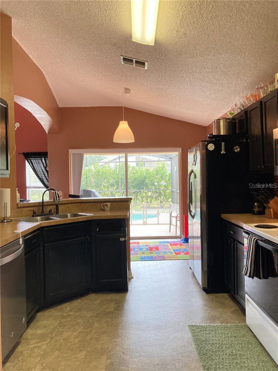 LOCATION!LOCATION!SO MANY POSSIBILITIES! This spacious 5 Bedroom 3 Bath pool home could be your next permanent residence, investment property or vacation home. You will find a huge master bedroom w/ unsuited, oversized living room, formal dinning room, eat-in kitchen, spare bedroom, full guest bathroom, and laundry room all on the 1st floor. The additional three bedrooms and full bathroom with tub/shower combo can be found on the 2nd floor. The high ceilings and large windows allow for plenty of natural light. The home is just a few minutes away from all the shopping centers, restaurants, and shopping malls, very close to Disney and other attractions. Buyers are responsible for taking over the solar-panels. WELCOME HOME!