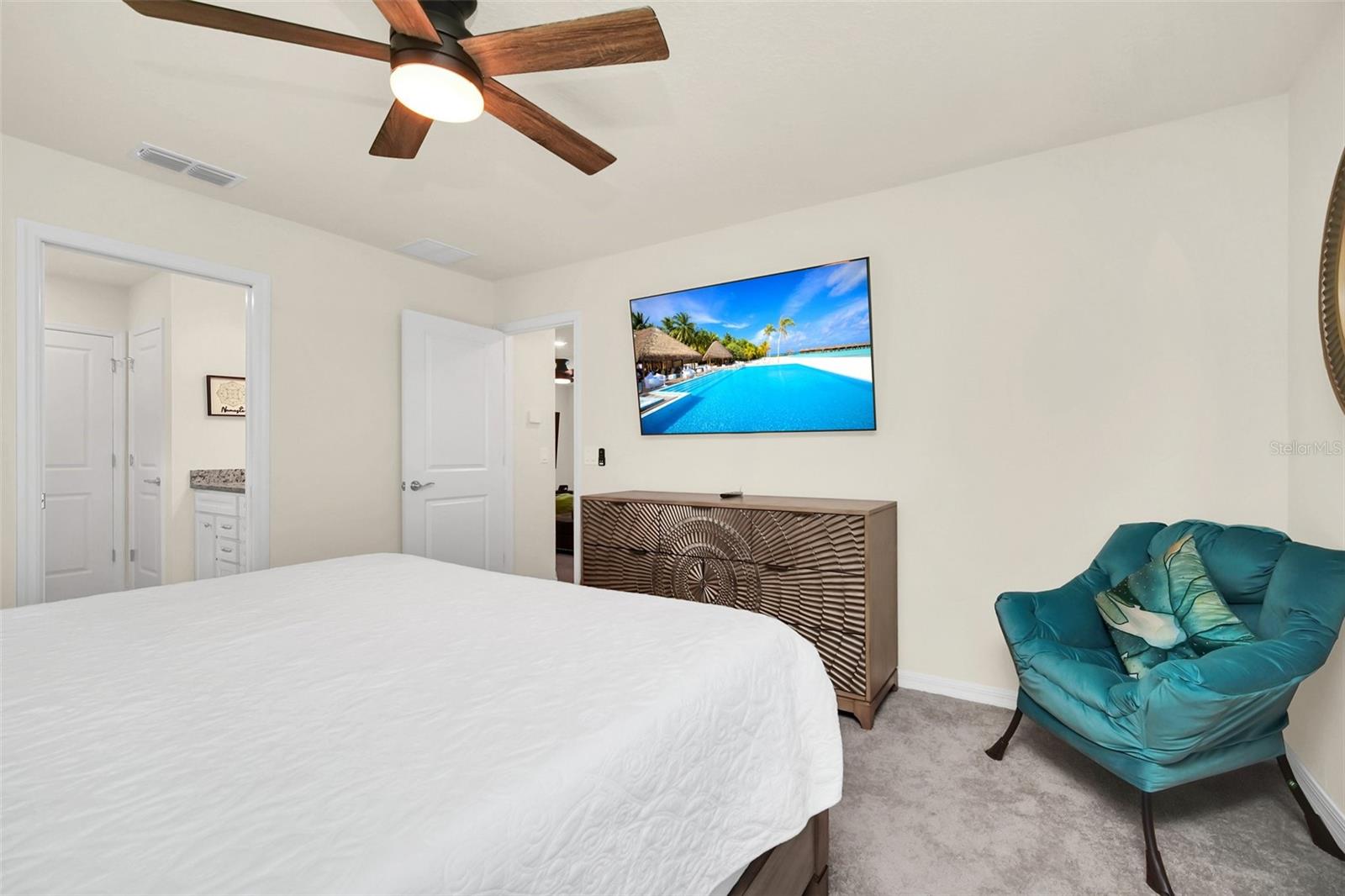 Don't miss your chance to own this stunning luxury vacation home, complete with an AMAZING GAMES ROOM and private pool, located in the sought-after Windsor Island Resort Community! Whether you're looking for your dream vacation retreat or a fully furnished short-term rental property, this home is a perfect fit. With an already packed booking schedule, which can transfer to the new owner, this property is an incredible investment opportunity. The listing agent also manages the property, so feel free to reach out for more information. Built in 2021, this home comes fully furnished and exudes elegance. The expansive layout features 5 bedrooms and 5.5 bathrooms, offering plenty of space for everyone to relax and unwind. Upon entering, you're welcomed by a generous great room with views that stretch out to the pool. The open-concept family room, dining area, and kitchen create an inviting atmosphere, ideal for hosting guests. The kitchen is filled with natural light and boasts a large island with quartz countertops, stainless steel appliances, and more. Sliding doors lead out to the pool area and screened-in lanai. Enjoy outdoor dining or grilling on the lanai, or take a dip in the sparkling pool! The primary suite, located on the first floor, offers a luxurious ensuite bathroom featuring dual sinks, a garden tub, and a spacious walk-in closet. A half bath is conveniently located off the kitchen and opens directly to the pool area for easy access. Upstairs, a large loft area provides additional space for lounging or extra accommodations for guests when entertaining large groups. Every bedroom has its own television and private bathroom for maximum comfort and privacy. Windsor Island Resort offers world-class amenities, including a breathtaking water park with slides and a lazy river, a modern clubhouse, a fully equipped gym, basketball and volleyball courts, and even a mini-golf course! This is a lifestyle like no other. Ideally located near Disney World and other Central Florida attractions, this property is the perfect base for exploring the area. Schedule your tour today and experience resort-style living at its finest! All information recorded in the MLS is intended to be accurate but cannot be guaranteed. The buyer is responsible for their own due diligence, including but not limited to verifying HOA covenants and governing documents, association transfer fees, capital contributions, resales fees, pet restrictions, parking restrictions, community information, rules, leasing requirements, sq feet, lot size, dimensions and taxes.