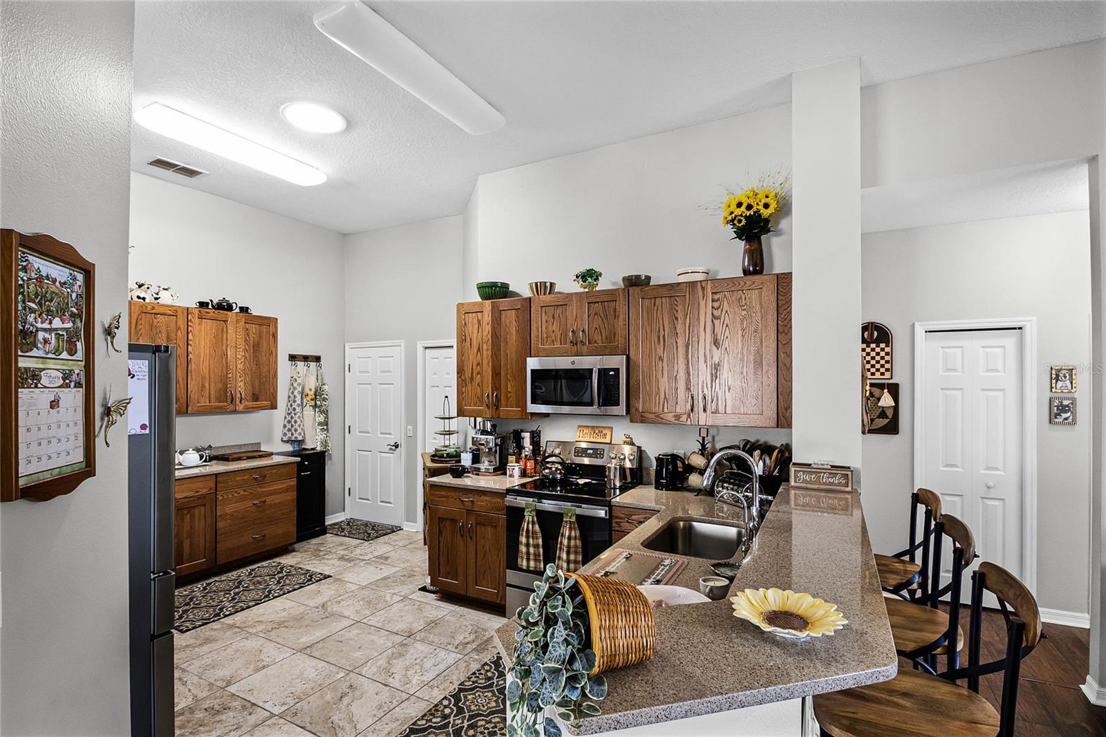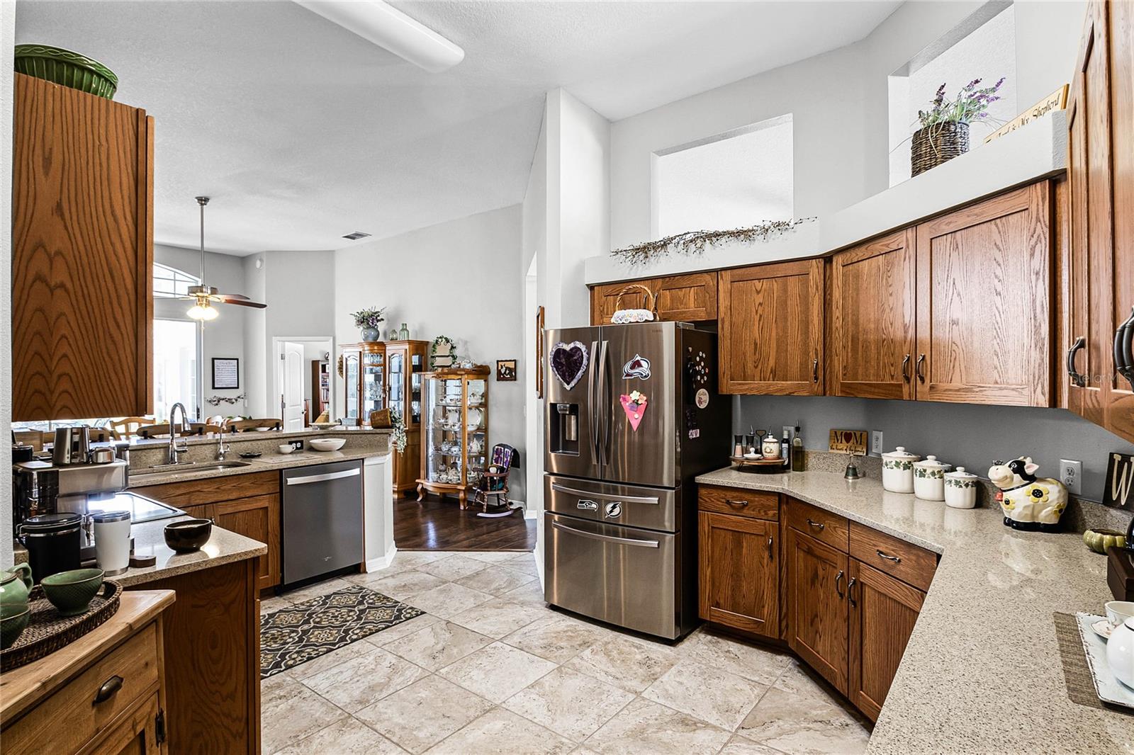 New Price!!! You gotta see this beautiful home! WELCOME TO THE BEST 55+ Golf community in Polk County. Ridgewood Lakes in Davenport, Florida. This incredible Active community is not only guarded and gated but super close to hospitals, grocery stores, Disney, Legoland and more. Step into this beautifully updated 3 bed, 2 bath home featuring a brand-new kitchen with all new appliances, ample counter space, and stylish cabinetry. Enjoy the comfort of a no-carpet interior, offering easy maintenance and a modern touch throughout. Relax in the bright sunroom or unwind in the spacious enclosed lanai, perfect for year-round enjoyment. The primary suite boasts a remodeled walk-in closet, providing plenty of storage and organization as well as a door to take you onto you patio. A whole-home water filtration system with a water conditioner ensures clean and refreshing water. Thoughtfully updated and move-in ready, this home is a must-see!