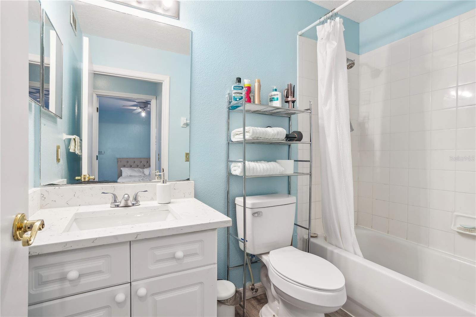 INVESTOR ALERT! PRIME OPPORTUNITY IN ISLAND CLUB WEST! Discover this well-maintained, spacious two-story home features 3 bedrooms, each with its own bathroom, offering both comfort and versatility. A standout feature of this property is the first-floor efficiency unit with a private entrance, which can serve as a master suite, an in-law suite, or an independent rental for additional income. Recent upgrades include new flooring, updated granite counter-tops in all bathrooms and kitchen, and fresh interior paint. The main living area welcomes you with an open floor plan, a bright living and dining space, a fully equipped kitchen, and sliding doors leading to a cozy patio perfect for enjoying the sunshine state weather. Upstairs, you’ll find two spacious bedrooms, each with ceiling fans and private bathrooms. The primary suite boasts a walk-in closet, dual sinks, and a separate shower for added luxury. Located in a short-term rental-approved community, this property is highly desirable for both domestic and international vacationers, thanks to its proximity to world-famous theme parks, shopping and dining. The community offers resort-style amenities, including a fitness center, clubhouse, pool and spa, sauna, tennis court, indoor kiddie play area, and more. Whether you're looking for a profitable short-term or long-term investment or a primary residence in a prime location, this property delivers a great return on investment. Don't miss out—schedule your private tour today!