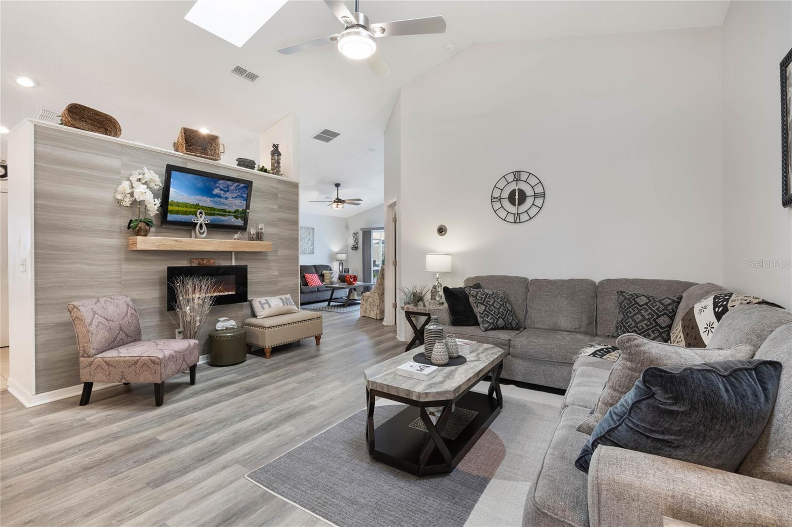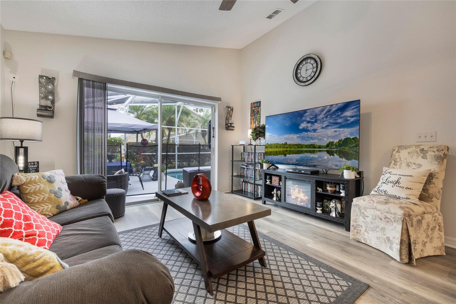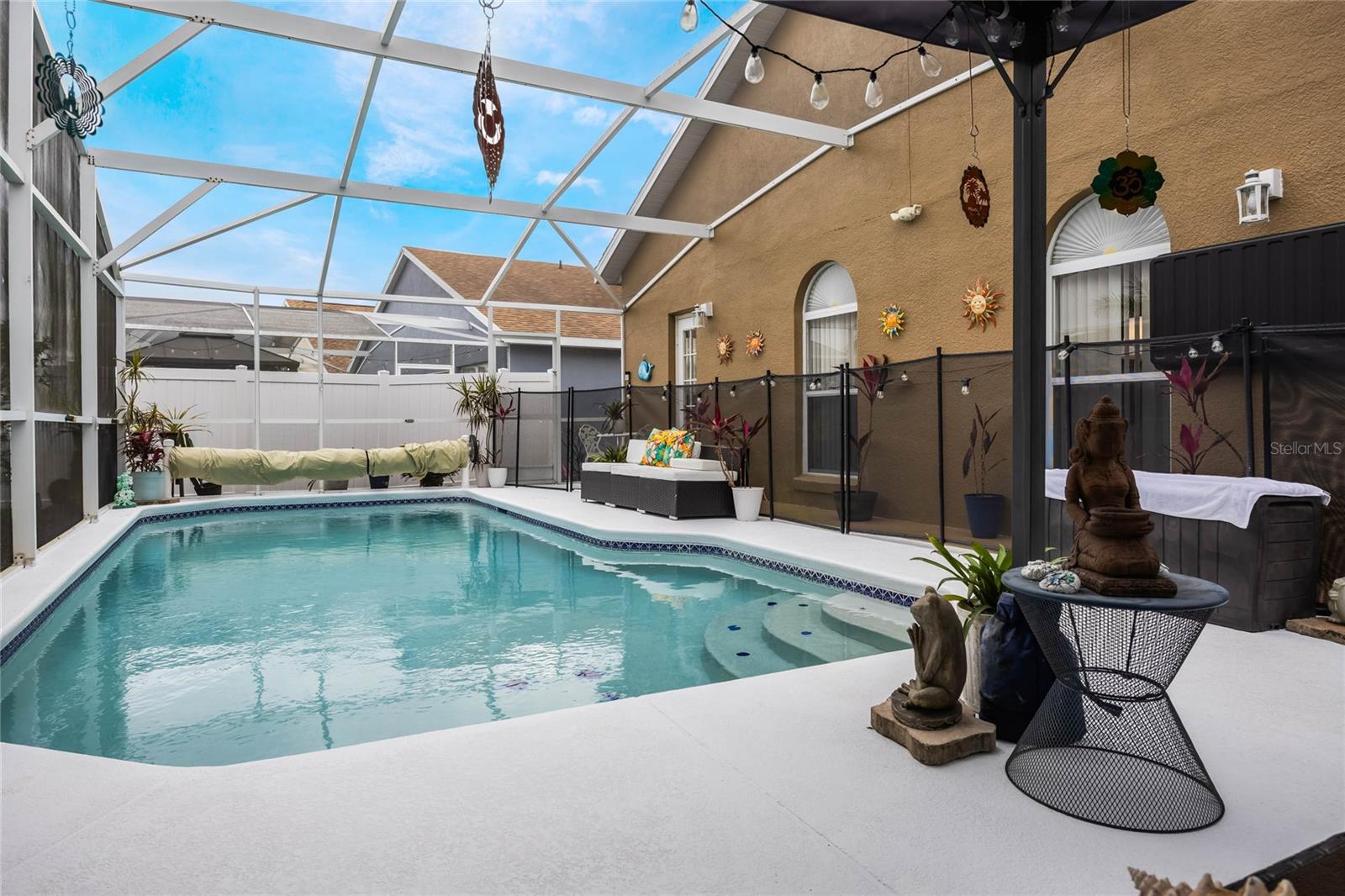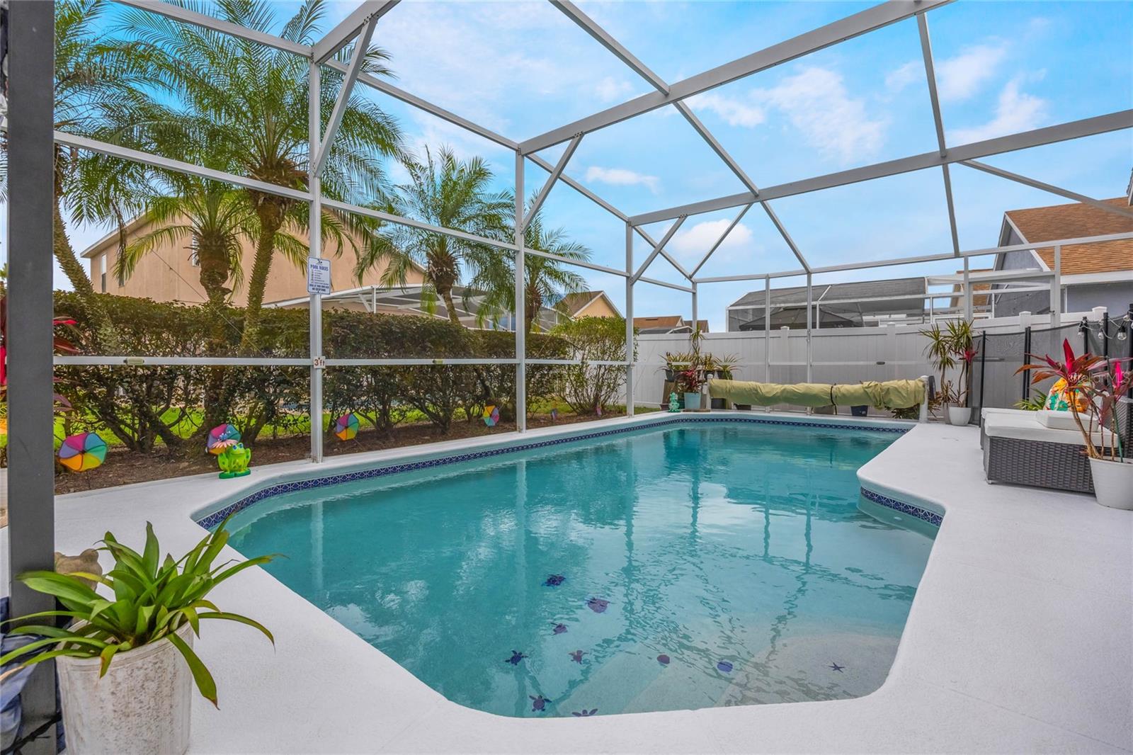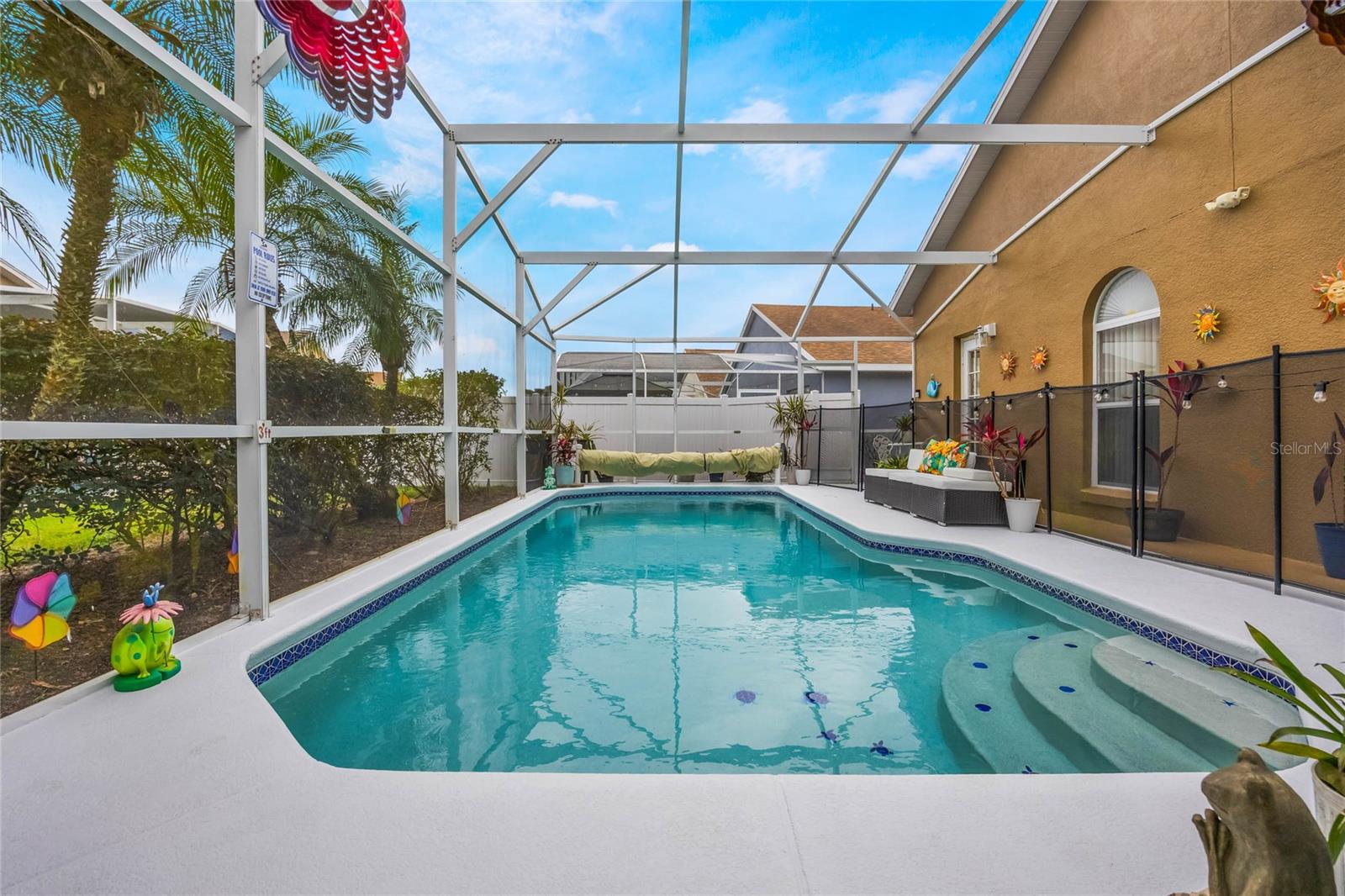 Welcome to Hampton Estates, where the perfect Florida home awaits! This charming 3-bedroom, 2-bathroom POOL home is move-in ready and ideal as a primary residence, vacation home, or short-term rental investment. You’ll be impressed by the many upgrades throughout, ensuring this home is not only beautiful but also built to last. As you step inside you'll immediately notice the high vaulted ceilings and large skylight allowing an abundance of natural light; with an open and inviting layout the space is perfect for hosting friends and family. The dining, living, and family rooms feature beautiful laminate flooring that adds warmth and style to the space, creating a seamless flow throughout. The spacious primary suite offers a tranquil retreat, while the private screened-in pool is perfect for soaking up the Florida sunshine. NEW ROOF 2023, AC handler & condenser are from 2018/2019. The POOL was RESURFACED 3 years ago, the pool heater/ motor (whole system) was replaced 2.5 years ago. The electrical panel receptacle voltage was upgraded three years ago and includes a generator hookup. The generator will convey with the property as well. Exterior painted 2023. There are NEW light and fan fixtures throughout the home. NEW Glass storm door 2024, Front door Glass storm 2018. Some of the pool screen panels are also BRAND NEW. HOA includes landscaping, security and irrigation. Located near Disney theme parks, shopping, dining, and world-class golf courses, Hampton Estates boasts beautifully maintained landscapes, community tennis courts, playgrounds, and walking trails. Whether you're looking for a profitable Airbnb opportunity or a cozy place to call home, this property checks all the boxes. Act fast—homes in this community are selling quickly! Call today to schedule your private tour!