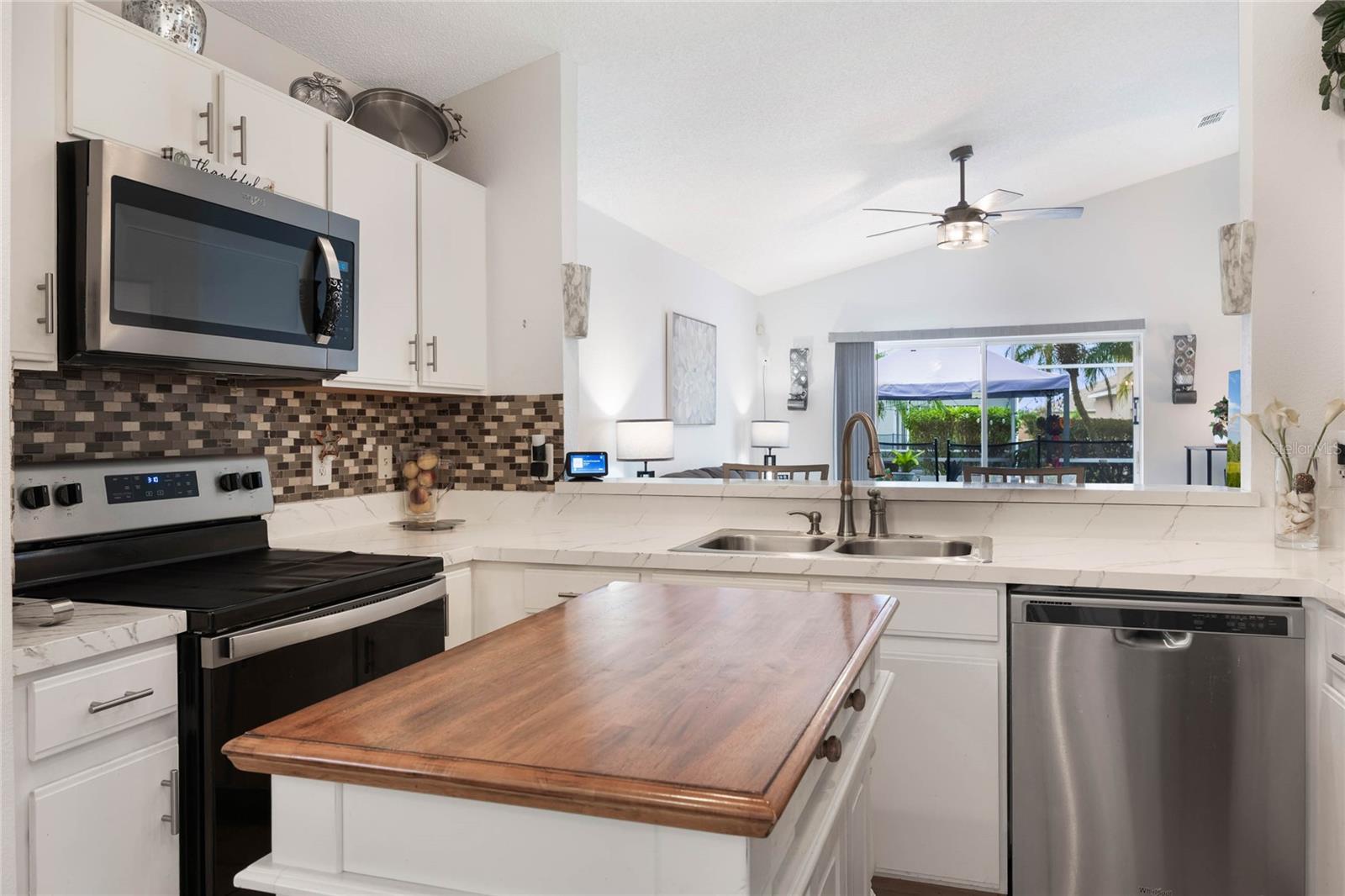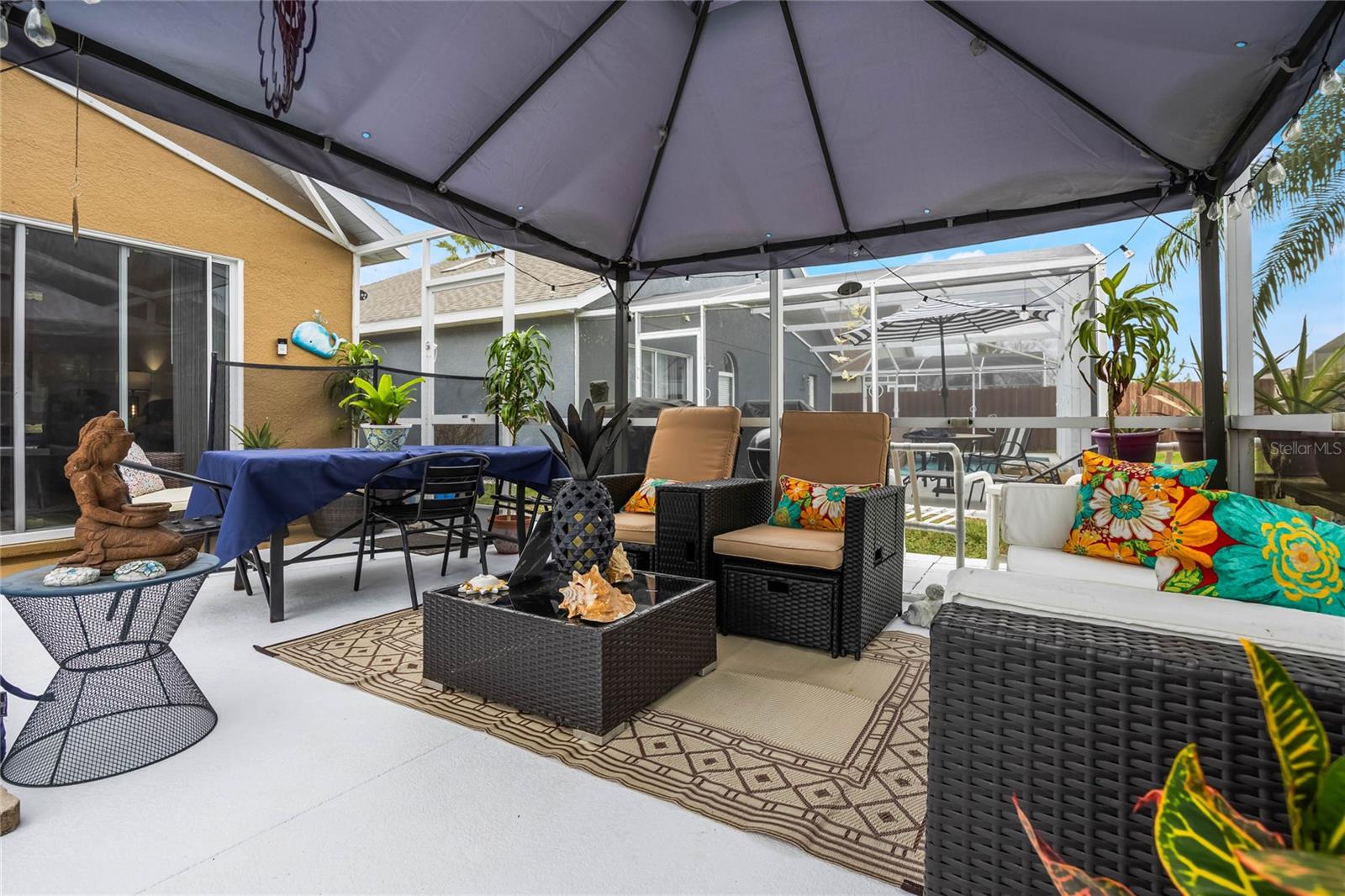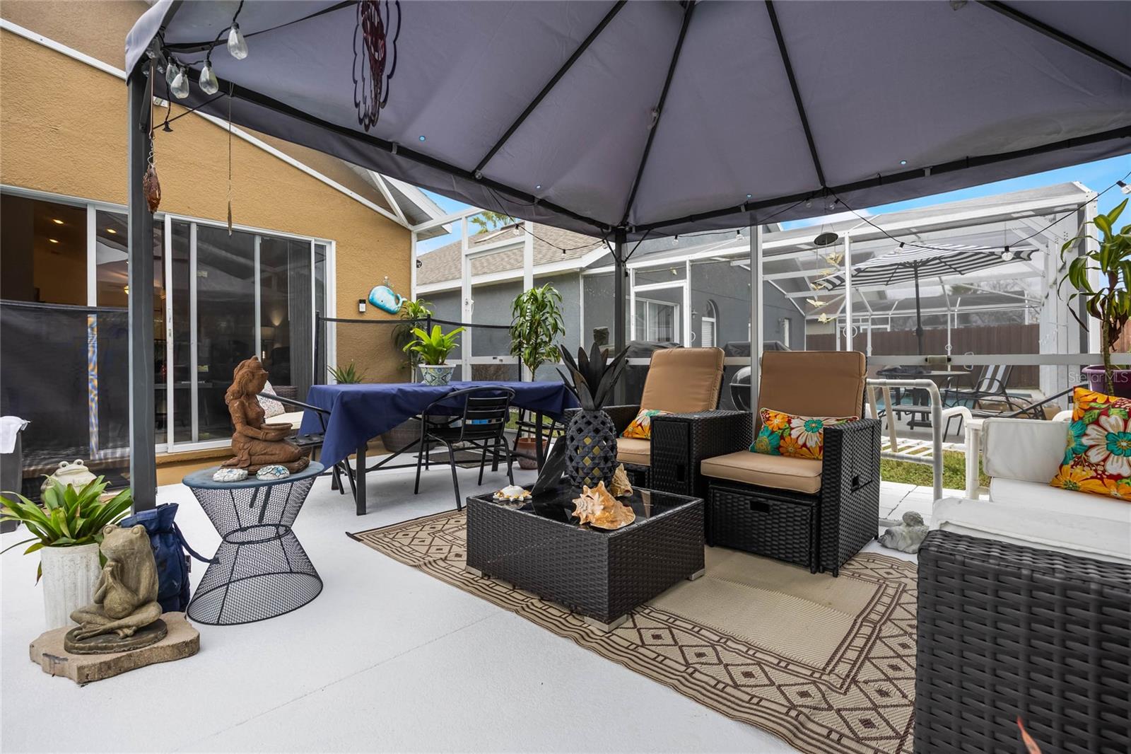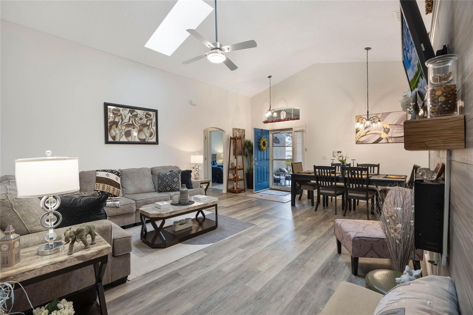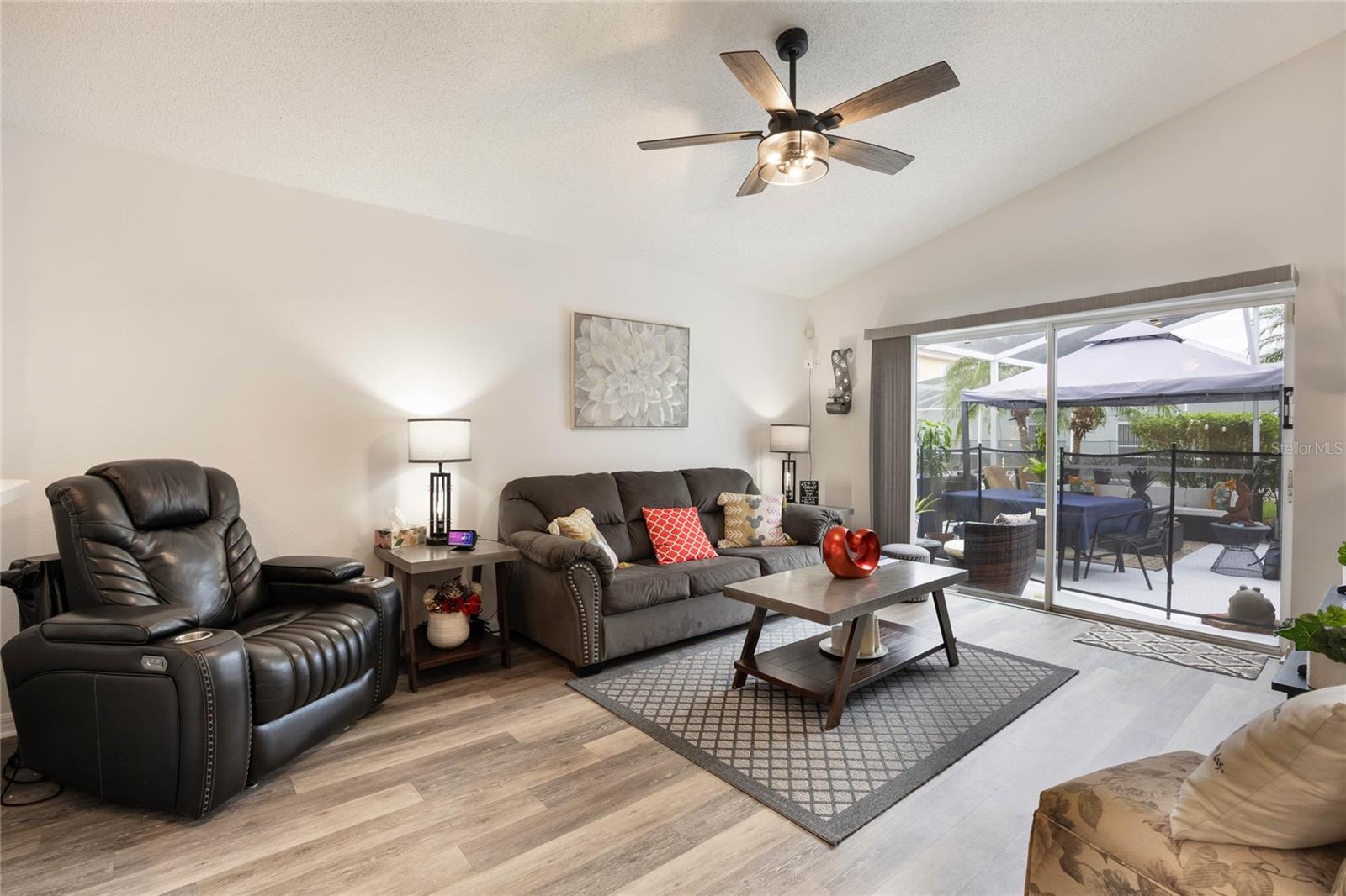 Welcome to Hampton Estates, where the perfect Florida home awaits! This charming 3-bedroom, 2-bathroom POOL home is move-in ready and ideal as a primary residence, vacation home, or short-term rental investment. You’ll be impressed by the many upgrades throughout, ensuring this home is not only beautiful but also built to last. As you step inside you'll immediately notice the high vaulted ceilings and large skylight allowing an abundance of natural light; with an open and inviting layout the space is perfect for hosting friends and family. The dining, living, and family rooms feature beautiful laminate flooring that adds warmth and style to the space, creating a seamless flow throughout. The spacious primary suite offers a tranquil retreat, while the private screened-in pool is perfect for soaking up the Florida sunshine. NEW ROOF 2023, AC handler & condenser are from 2018/2019. The POOL was RESURFACED 3 years ago, the pool heater/ motor (whole system) was replaced 2.5 years ago. The electrical panel receptacle voltage was upgraded three years ago and includes a generator hookup. The generator will convey with the property as well. Exterior painted 2023. There are NEW light and fan fixtures throughout the home. NEW Glass storm door 2024, Front door Glass storm 2018. Some of the pool screen panels are also BRAND NEW. HOA includes landscaping, security and irrigation. Located near Disney theme parks, shopping, dining, and world-class golf courses, Hampton Estates boasts beautifully maintained landscapes, community tennis courts, playgrounds, and walking trails. Whether you're looking for a profitable Airbnb opportunity or a cozy place to call home, this property checks all the boxes. Act fast—homes in this community are selling quickly! Call today to schedule your private tour!