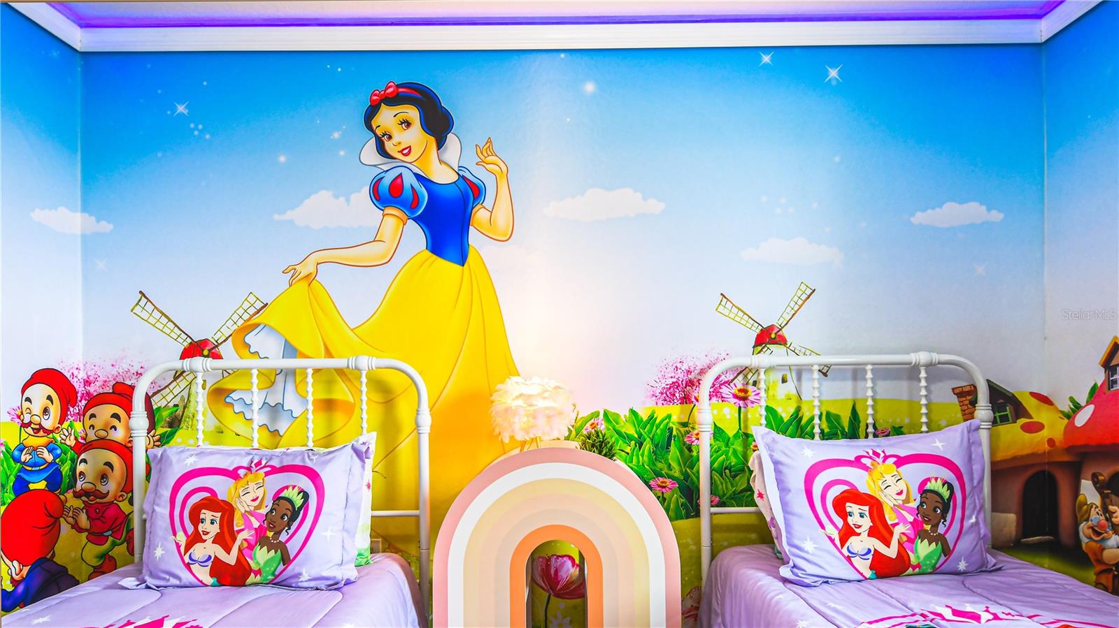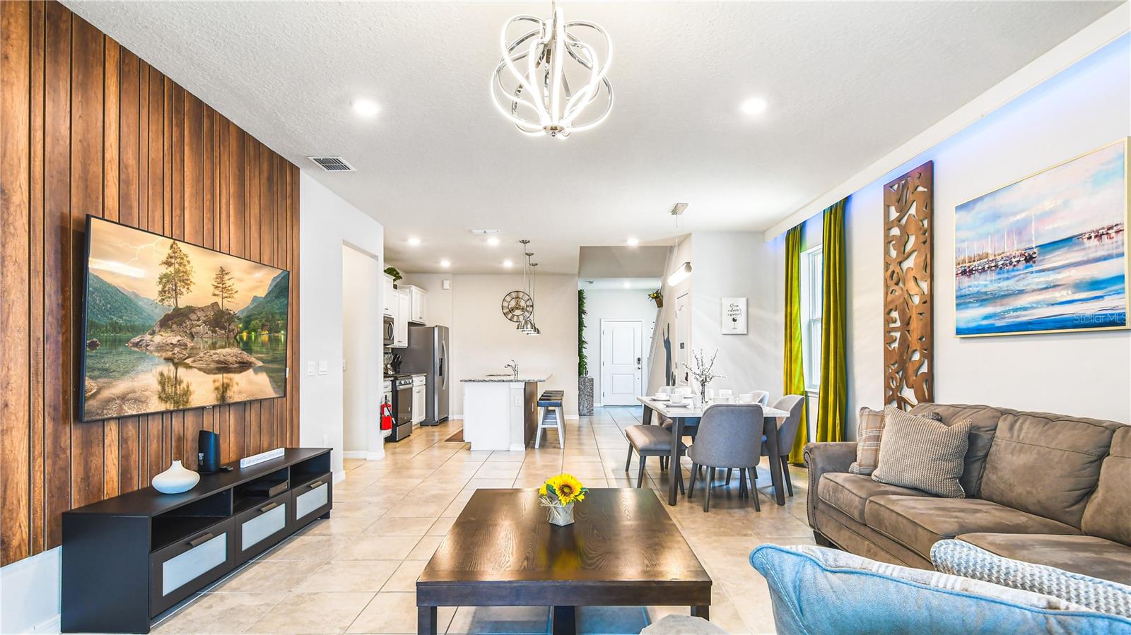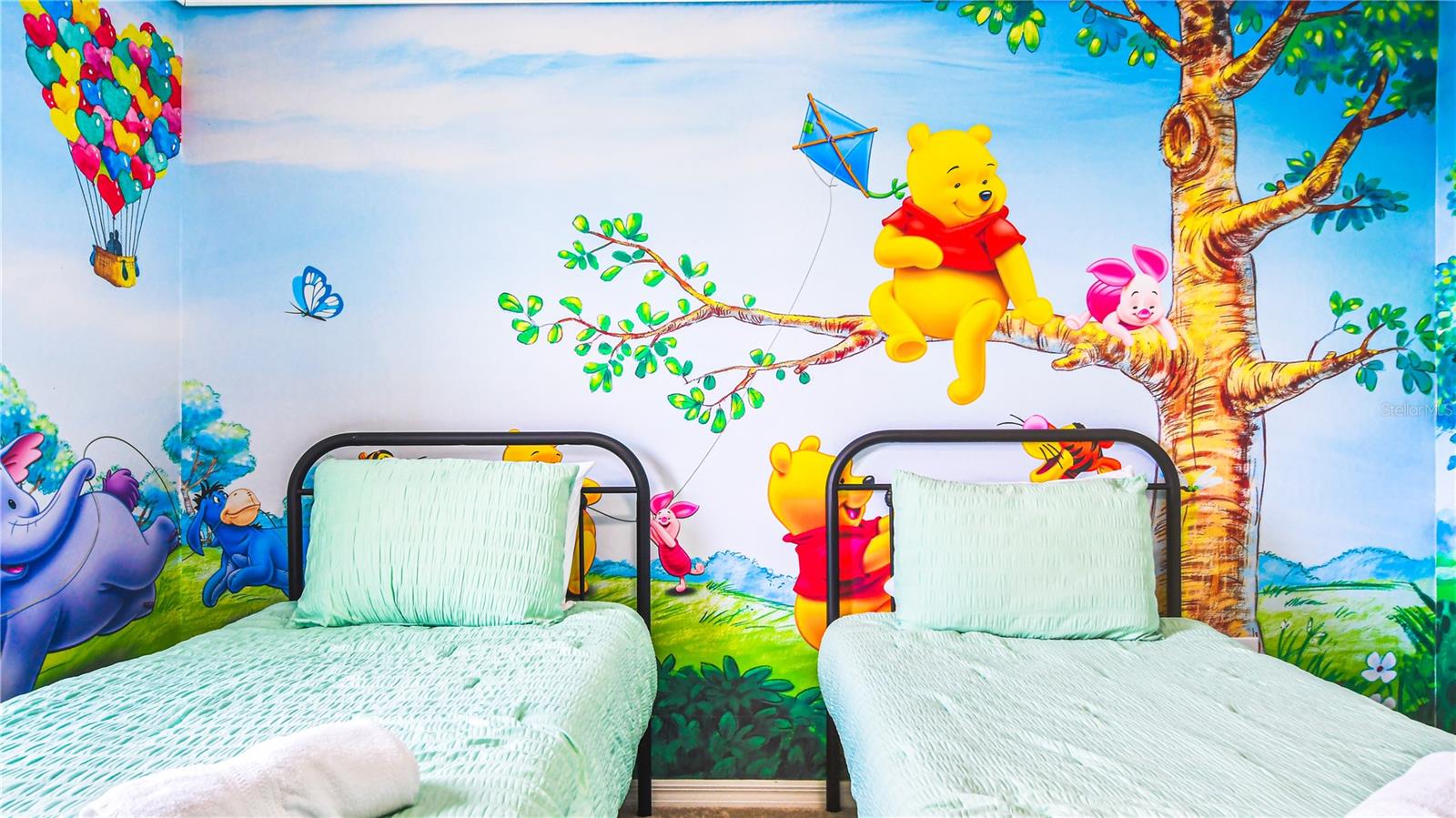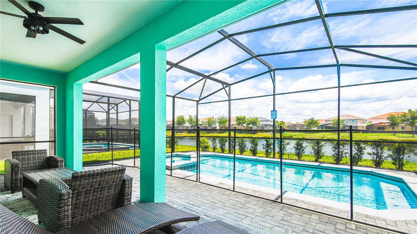 Welcome to this beautifully maintained 7-bedroom, 5.5-bathroom home in the highly sought-after Solterra Resort, where short-term rentals are permitted! Overlooking a serene pond, this fully furnished, turnkey property offers outstanding income potential as both a vacation retreat and an investment opportunity. Step inside to experience modern luxury and comfort. The open-concept living area boasts elegant tile flooring and sliding doors that lead to a private pool and spa, perfect for soaking up Florida’s sunshine. The chef’s kitchen is equipped with stainless steel appliances, granite countertops, and ample cabinetry. Each bedroom has been professionally themed, adding charm and personality to the home. With two master suites—one upstairs and one downstairs—this property provides both spaciousness and privacy for families and groups. The loft, stylishly designed as a game room, offers an additional entertainment space. As a Solterra Resort resident, indulge in world-class amenities, including a resort-style pool with a lazy river, fitness center, snack bar, and convenience store. Located just minutes from Disney, Universal, shopping, dining, and medical facilities, this home is perfectly positioned for both personal enjoyment and high-return rental income.