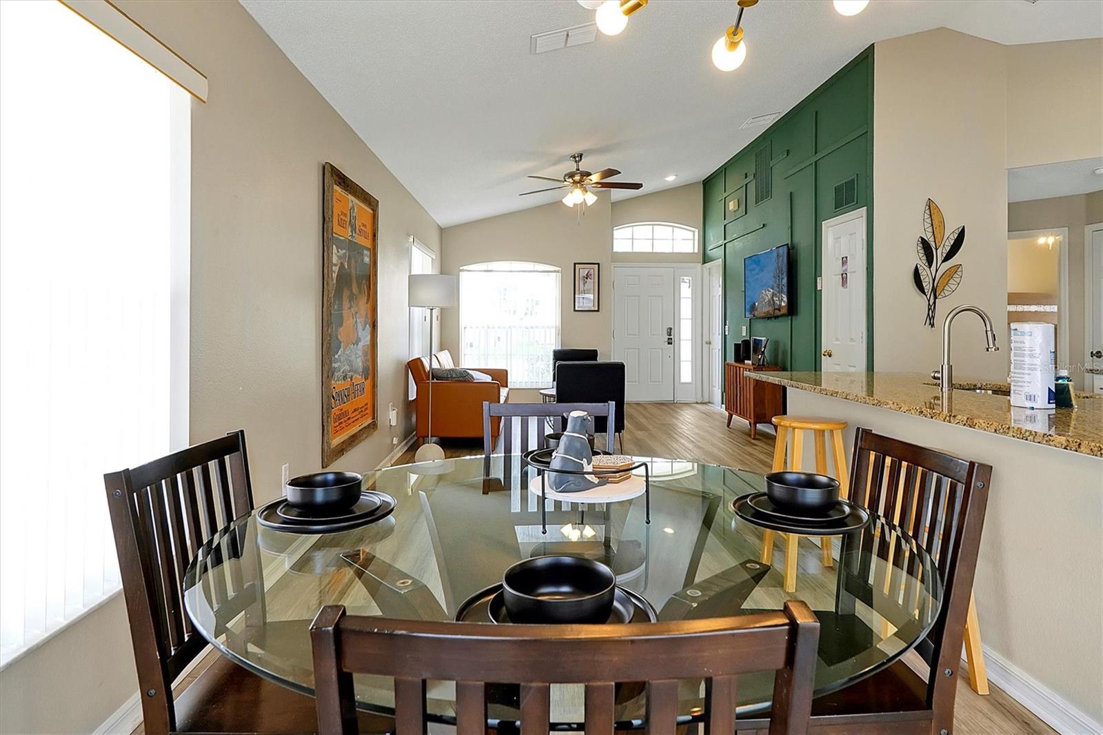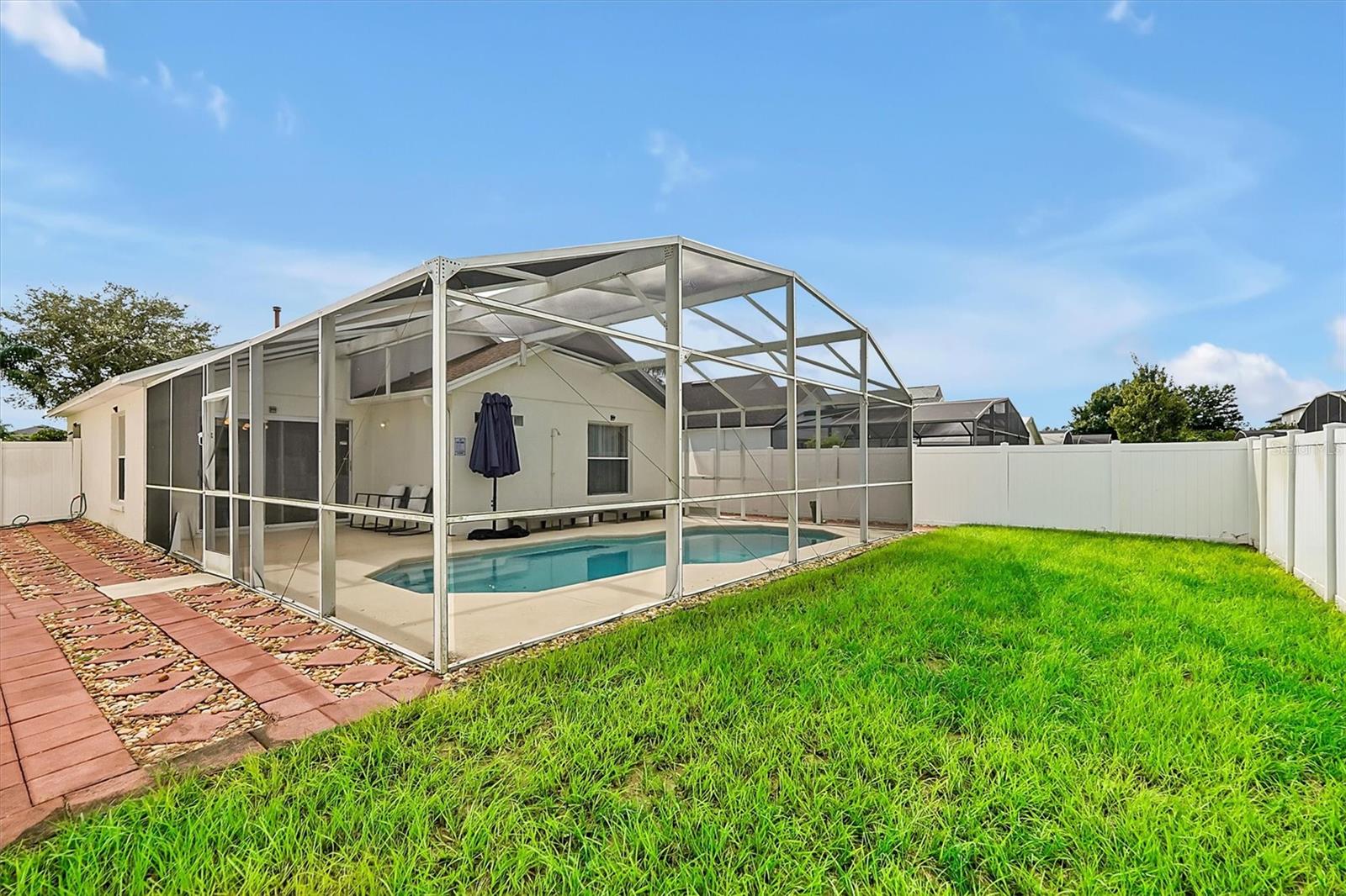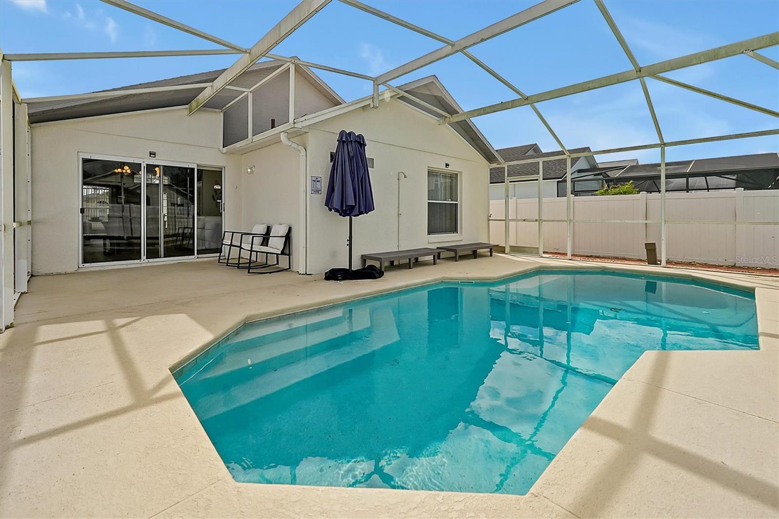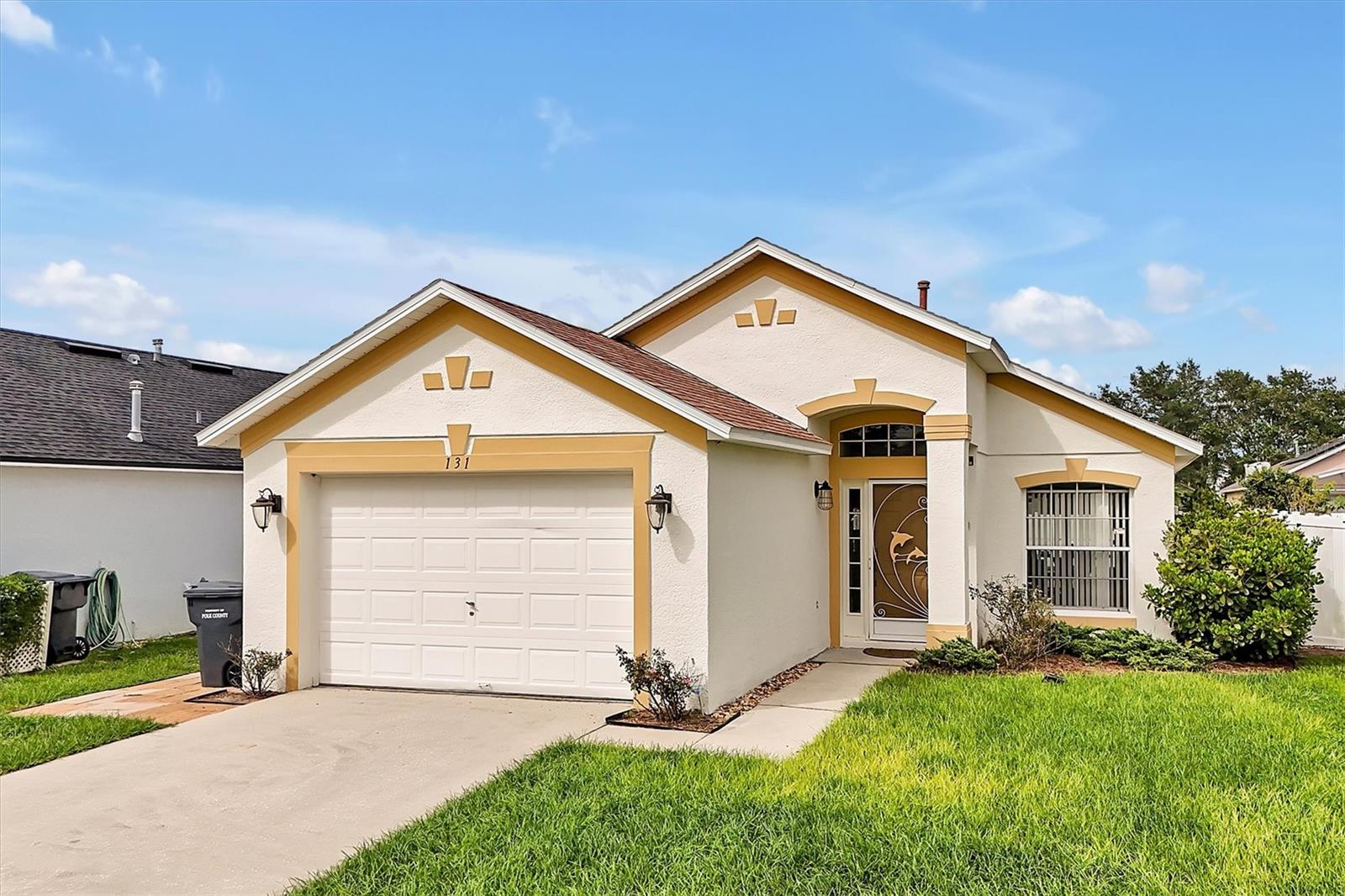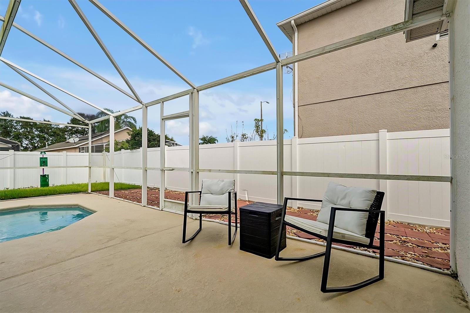 This beautifully FULLY FURNISHED home is an incredible opportunity for both short-term rental investors and families looking for their dream retreat. Located in the sought-after Santa Cruz community near Champions Gate, this 3-bedroom, 2-bathroom gem features a private pool with a pool heater, perfect for year-round enjoyment. The enclosed backyard is designed with pets in mind, offering a secure, spacious area for them to roam freely. A sliding back door with a pool alarm ensures safety and convenience for all. Inside, you'll find laminated floors in the common areas, creating a modern and low-maintenance living space, with plush carpet in the bedrooms for comfort. The kitchen boasts a stylish island with solid countertops, ideal for meal preparation and entertaining. The home is fully furnished with a complete set of appliances, making it move-in ready or ready for its next guests. This home is already set up as a short-term rental, with future bookings in place and a professional management company ready to ensure a smooth transition, making it a fantastic investment opportunity. Whether you're seeking a profitable vacation rental or the perfect home for your family, this property offers endless possibilities. Don't miss your chance to own a piece of paradise in one of the most desirable communities near Champions Gate.