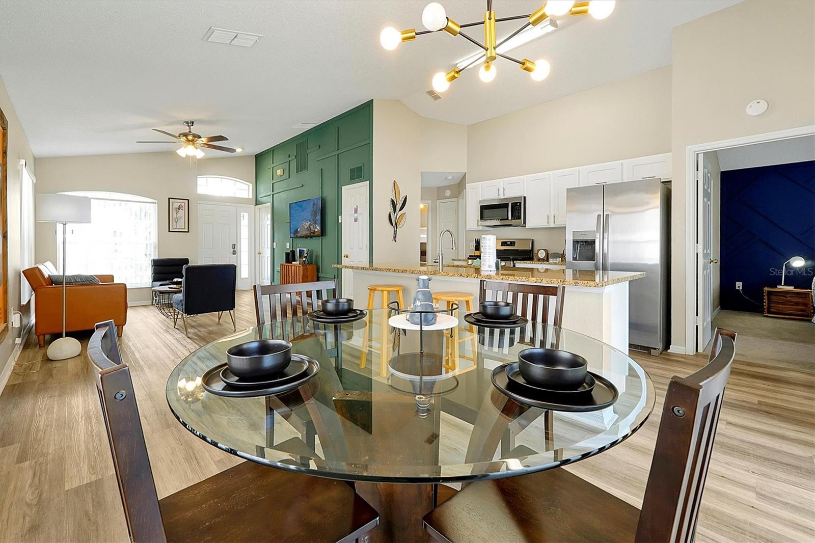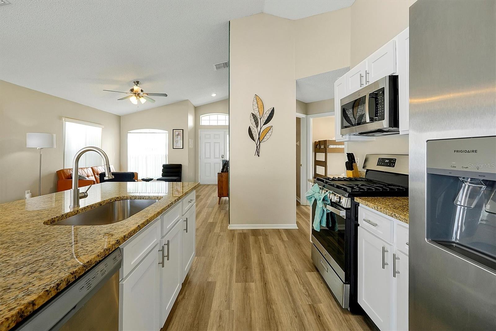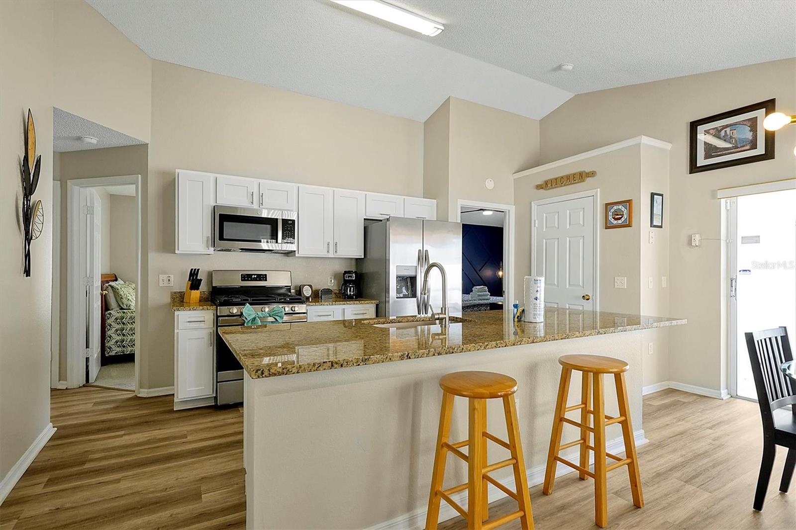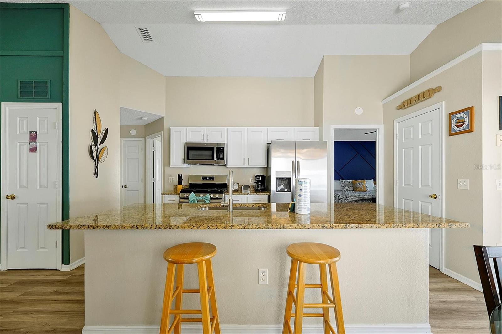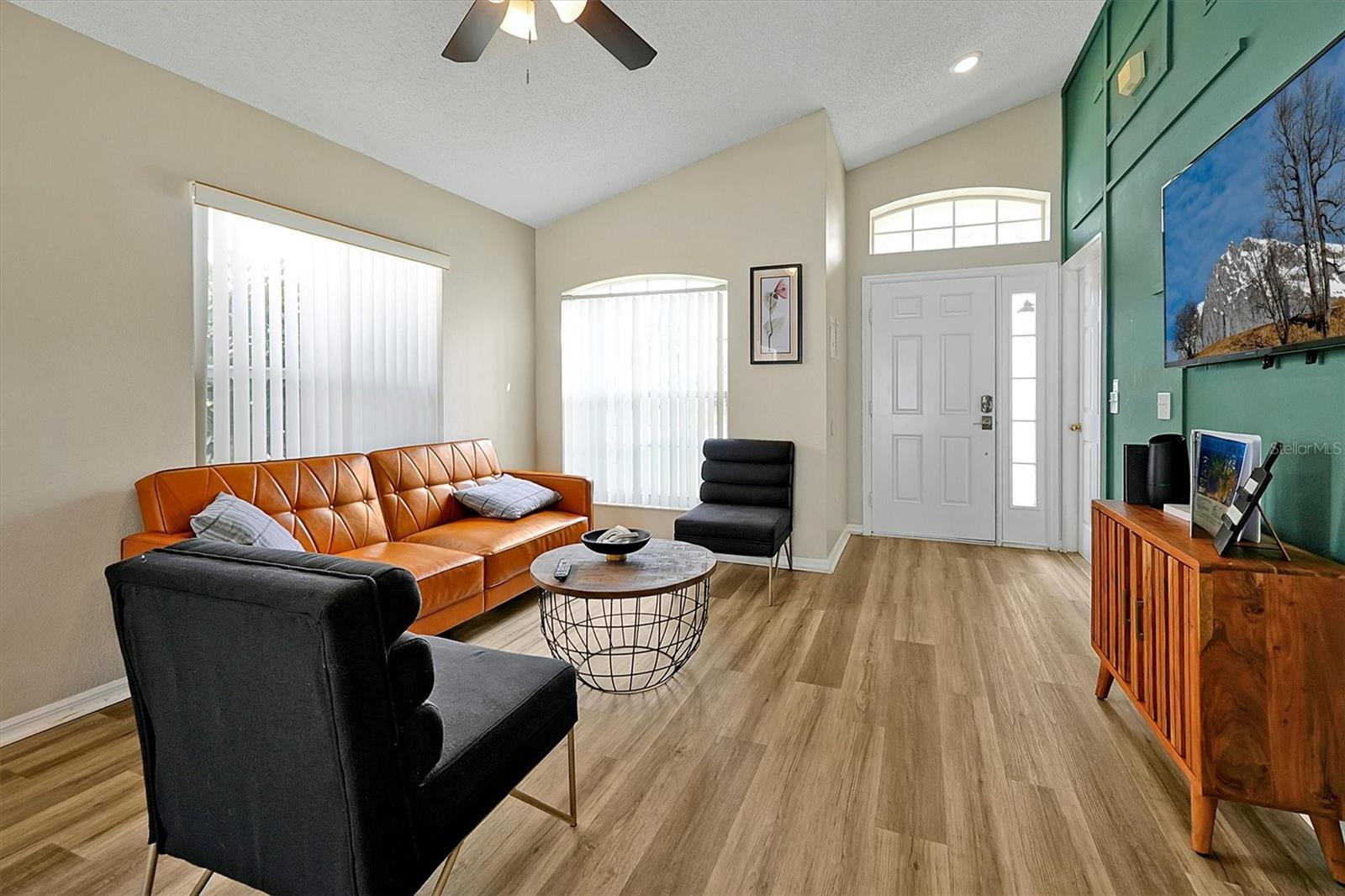 This beautifully FULLY FURNISHED home is an incredible opportunity for both short-term rental investors and families looking for their dream retreat. Located in the sought-after Santa Cruz community near Champions Gate, this 3-bedroom, 2-bathroom gem features a private pool with a pool heater, perfect for year-round enjoyment. The enclosed backyard is designed with pets in mind, offering a secure, spacious area for them to roam freely. A sliding back door with a pool alarm ensures safety and convenience for all. Inside, you'll find laminated floors in the common areas, creating a modern and low-maintenance living space, with plush carpet in the bedrooms for comfort. The kitchen boasts a stylish island with solid countertops, ideal for meal preparation and entertaining. The home is fully furnished with a complete set of appliances, making it move-in ready or ready for its next guests. This home is already set up as a short-term rental, with future bookings in place and a professional management company ready to ensure a smooth transition, making it a fantastic investment opportunity. Whether you're seeking a profitable vacation rental or the perfect home for your family, this property offers endless possibilities. Don't miss your chance to own a piece of paradise in one of the most desirable communities near Champions Gate.