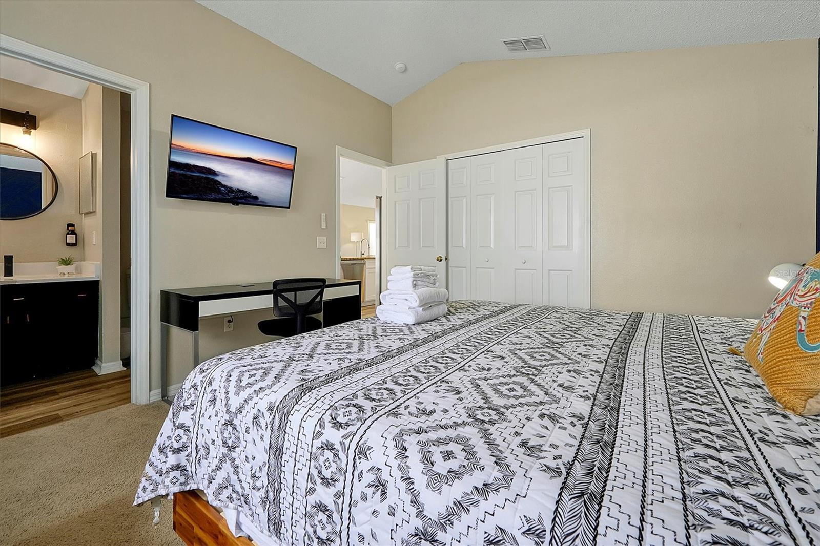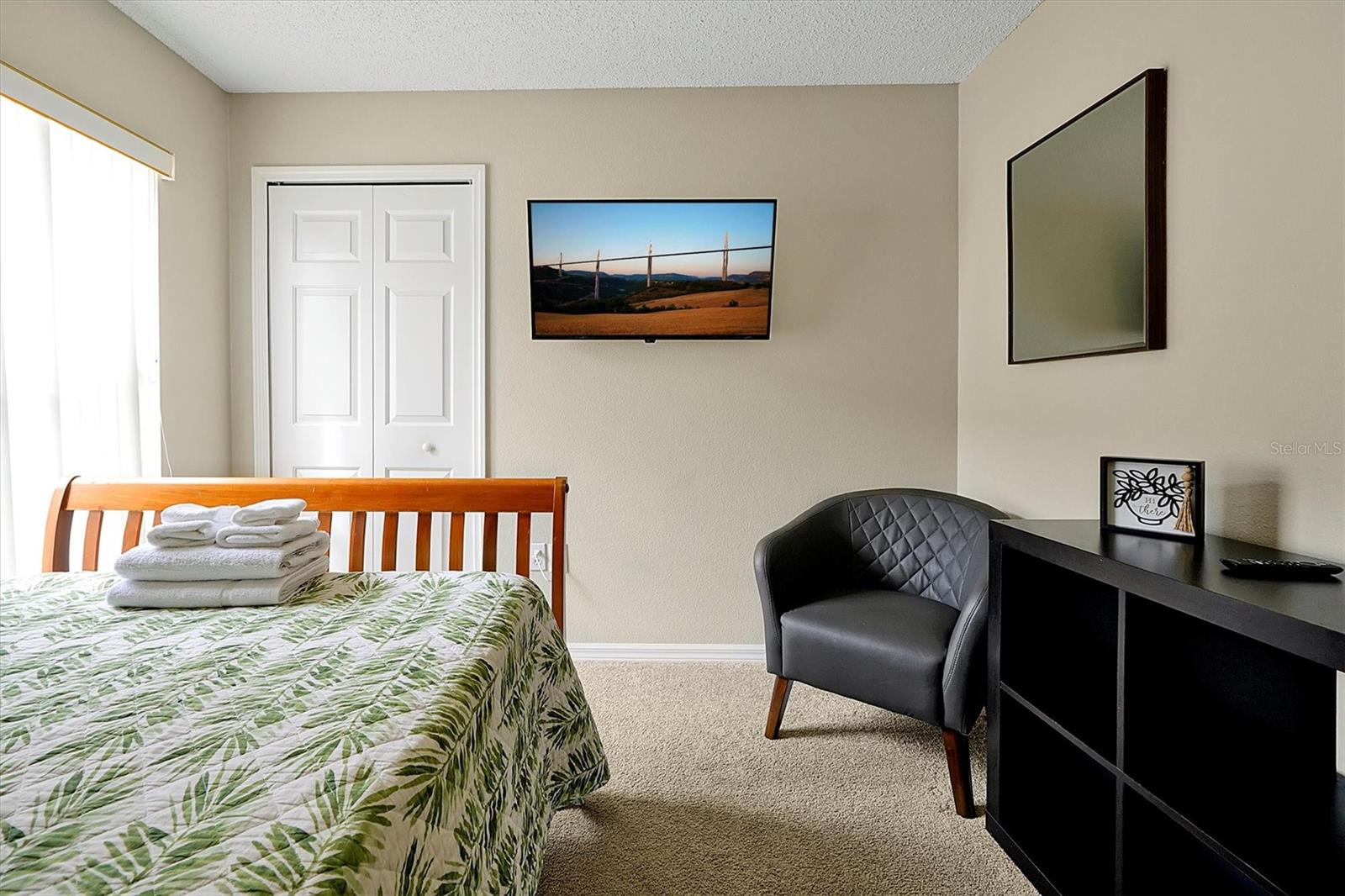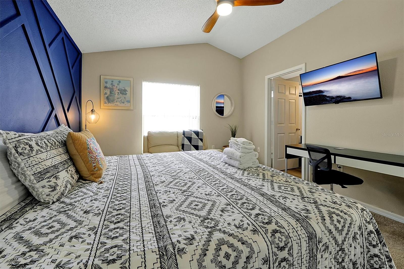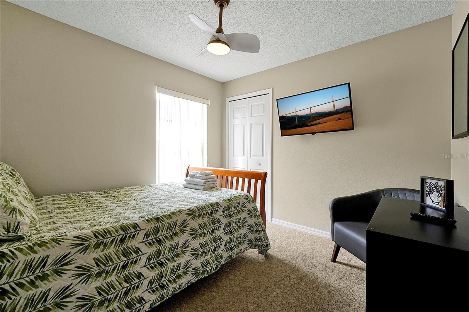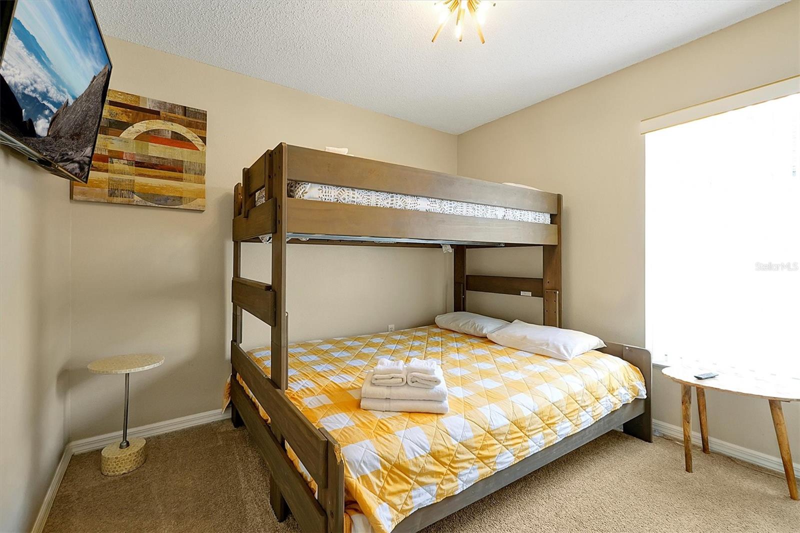 This beautifully FULLY FURNISHED home is an incredible opportunity for both short-term rental investors and families looking for their dream retreat. Located in the sought-after Santa Cruz community near Champions Gate, this 3-bedroom, 2-bathroom gem features a private pool with a pool heater, perfect for year-round enjoyment. The enclosed backyard is designed with pets in mind, offering a secure, spacious area for them to roam freely. A sliding back door with a pool alarm ensures safety and convenience for all. Inside, you'll find laminated floors in the common areas, creating a modern and low-maintenance living space, with plush carpet in the bedrooms for comfort. The kitchen boasts a stylish island with solid countertops, ideal for meal preparation and entertaining. The home is fully furnished with a complete set of appliances, making it move-in ready or ready for its next guests. This home is already set up as a short-term rental, with future bookings in place and a professional management company ready to ensure a smooth transition, making it a fantastic investment opportunity. Whether you're seeking a profitable vacation rental or the perfect home for your family, this property offers endless possibilities. Don't miss your chance to own a piece of paradise in one of the most desirable communities near Champions Gate.