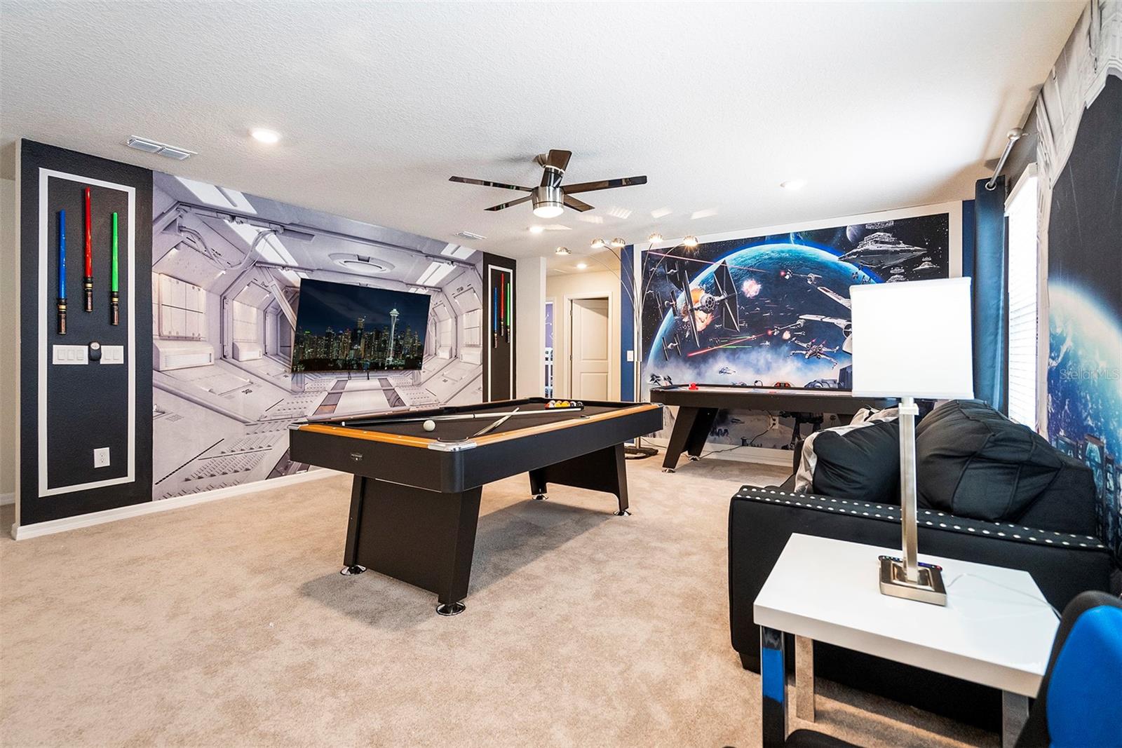 Welcome to your dream vacation home, just minutes away from the magic of Disney! This stunning 7 bedroom, 5.5 bathroom pool home offers the perfect blend of luxury, comfort, and privacy, making it an ideal short-term rental or personal getaway. Fully furnished and move-in ready! Step inside and be greeted by beautiful updated flooring and natural lighting that flows throughout. The open-concept living and dining areas are spacious and inviting, perfect for gathering with loved ones or entertaining guests. The fully equipped kitchen features modern appliances, ample storage, and a large island that makes meal prep a breeze. One of the standout features of this home is its dual primary suites, one on the ground floor and one upstairs, offering flexibility and convenience for multi-generational families or groups. Both suites are complete with large en-suite bathrooms. Upstairs, you’ll find a cozy loft that serves as an additional living space, ideal for movie nights, gaming, or just relaxing with a good book. The remaining bedrooms are spacious and beautifully appointed, ensuring everyone has their own comfortable space to unwind. Step outside to your own private backyard oasis, where a sparkling pool and spa await. With no rear neighbors, you'll enjoy some privacy while you soak up the Florida sun or relax under the covered patio. This peaceful outdoor space is perfect for lounging, entertaining, or simply taking in the beautiful surroundings. Located just a short drive from Disney, this home is not only a prime short-term rental investment but also a fantastic vacation home for personal use. With easy access to world-class attractions, dining, shopping, and entertainment, guests will love the convenience and comfort this home provides. Don’t miss the opportunity to own this incredible 7-bedroom pool home near Disney!