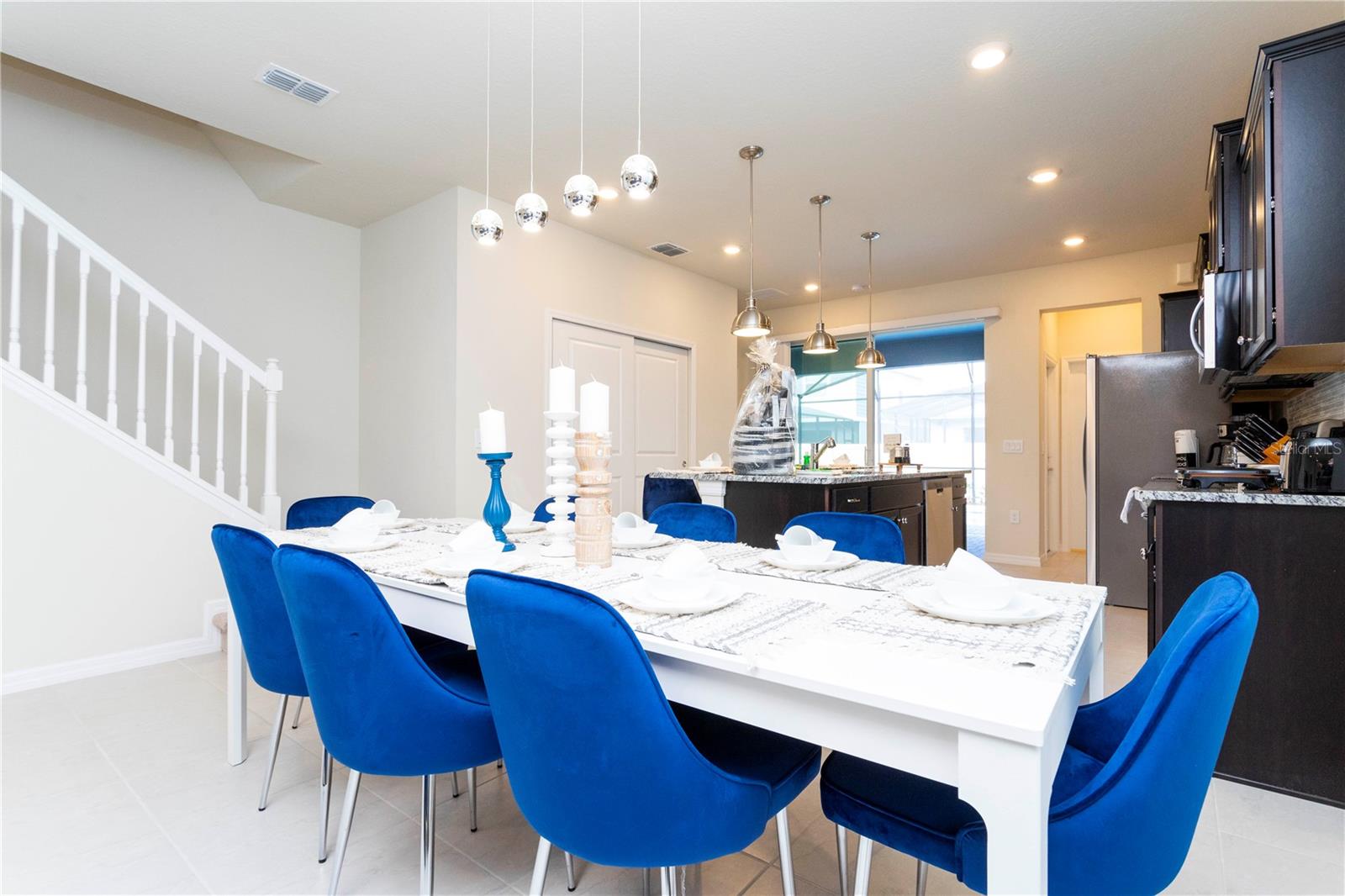 NEW DREAM VACATION HOME BEING SOLD ALL FURNISHED!!!!!!!!!! This amazing 5-bedroom, 5-bathroom FULLY FURNISHED home is perfectly situated in Windsor Island Resort, just minutes from Orlando's world-famous theme parks Disney, Universal and Seaworld. This property is an ideal choice for both personal use and investment opportunities. With an open-concept floor plan featuring modern decor, high-end finishes, and abundant natural light. The kitchen has beautiful granite countertops, stainless steel appliances, and a large island that flows seamlessly into the dining and living areas, making it perfect for entertaining. The spacious master suite offers a private retreat with an en-suite bathroom, dual vanities, and a walk-in shower. Enjoy your private screened-in lanai with a sparkling pool—ideal Florida sunshine days. As part of the Windsor Island Resort community, you can access world-class amenities including a resort-style pool, lazy river, water slides, fitness center, clubhouse, and more. Conveniently located near top attractions, dining, and shopping, this townhome offers the perfect blend of luxury, convenience, and entertainment. Don't miss out on this exceptional property—schedule your private showing today!