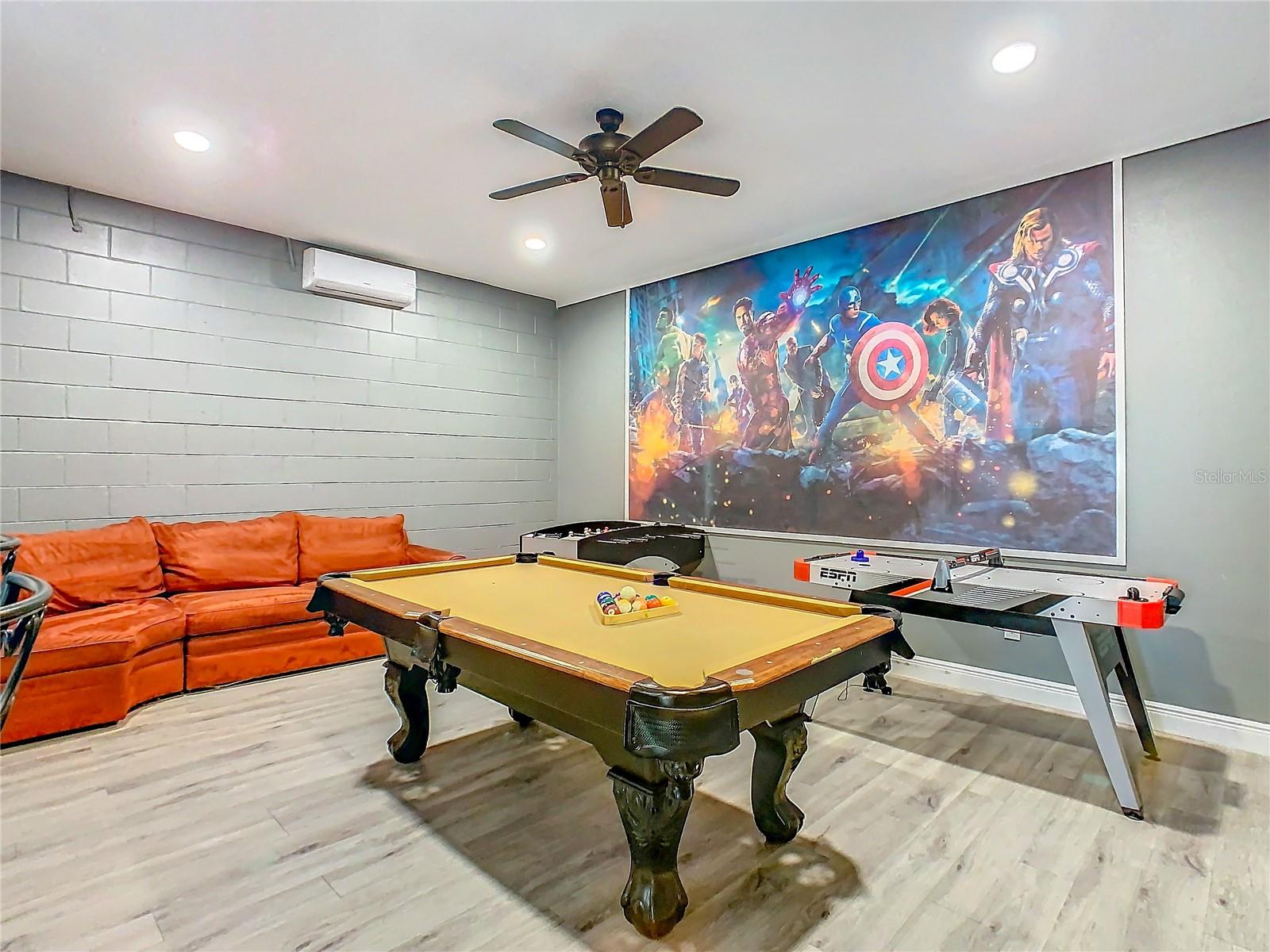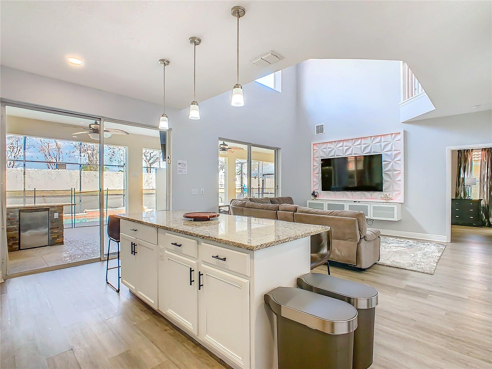 In a coveted Solana community, this modern 6-bedroom, 4.5-bathroom home tells a story of refined Florida living. Upon entering, guests are greeted by a spacious formal living and dining area with high ceilings, leading to an open kitchen equipped with wood cabinetry, a full-size stainless steel refrigerator, and top-tier appliances. An outdoor dedicated BBQ kitchen—with its own full-size stainless steel refrigerator and large TV—complements the indoor space, inviting al fresco dining under the covered lanai. Designed for seamless short-term rental operation, the home comfortably sleeps 10–12 adults. The first floor hosts a master suite with a spacious bath, while upstairs, five additional bedrooms and three bathrooms await. A converted garage serves as a lively game room featuring a pool table, foosball, and hockey table, with the potential to revert to a two-car garage. Outside, the heated pool, extended deck, and spa create the perfect setting to enjoy Florida's year-round weather. Enhancing the living experience, the Solana community offers exceptional amenities, including a clubhouse, resort-style pool, sand volleyball, playground, and a mini golf course. With proximity to Disney and I-4, this turn-key residence is ready for you to move in and continue its successful operation.