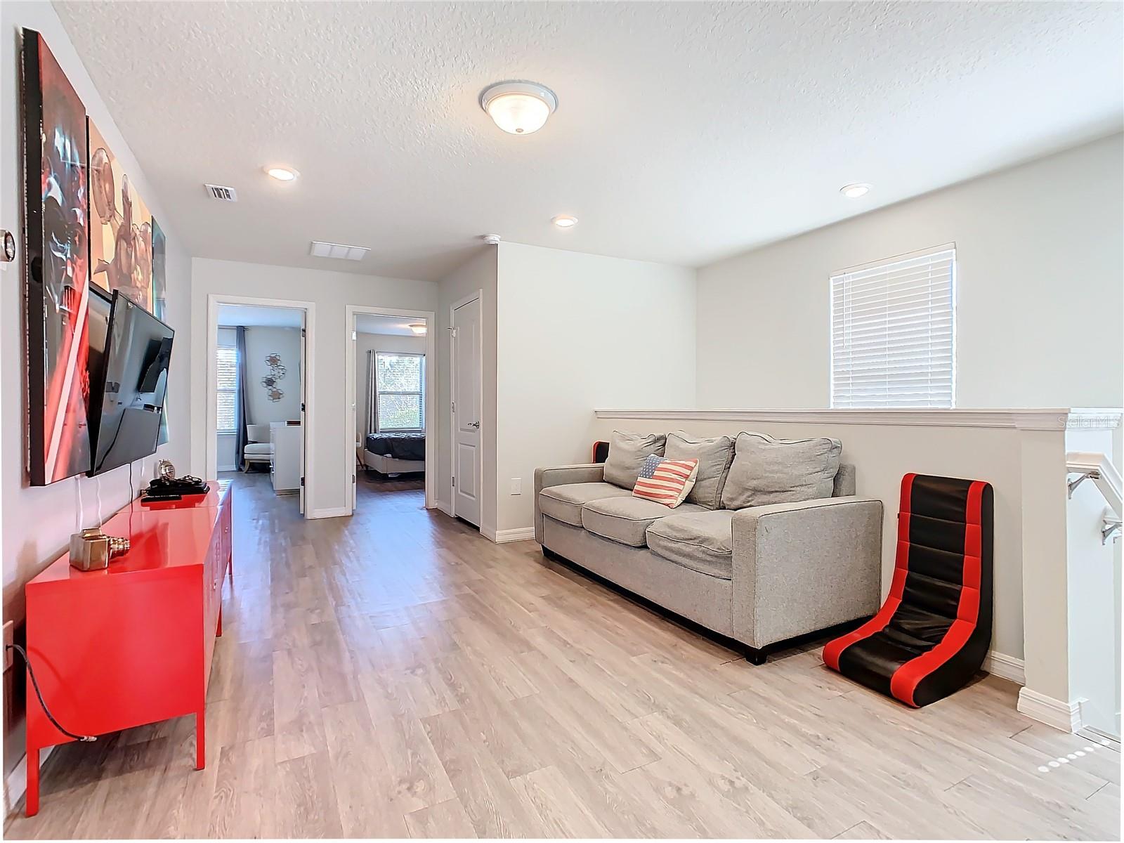 Your Dream Vacation Retreat Awaits! Discover the ultimate family getaway in this stunning end-unit townhome, thoughtfully crafted by Pulte—an exceptional opportunity to own a luxurious vacation home or a lucrative short-term rental. With 5 spacious bedrooms and 4.5 elegant bathrooms, this home offers the perfect blend of comfort, fun, and convenience for memorable family escapes or passive income. Step inside to a bright, open-concept living space that seamlessly combines the family room, chef’s kitchen, and dining area—ideal for entertaining guests or unwinding after a day of adventure. Large sliding glass doors open to your private screened-in lanai, where a sparkling pool invites you to relax under the sun or enjoy peaceful evenings under the stars. The upstairs features a whimsical Minion-themed bunk room—sure to delight kids and add a touch of fun to your stay—and a versatile loft/gaming area, perfect for family games or a quiet retreat. Four additional beautifully appointed bedrooms provide ample space for family and friends to relax in comfort. Located within a vibrant community renowned for its resort-style amenities, you’ll have access to a lazy river, resort pool, fitness center, tennis courts, and more—offering endless entertainment for your guests or family members. Plus, with fully maintained landscaping, cable, and daily valet garbage pickup, your focus can remain on creating unforgettable experiences rather than upkeep. Just a short drive from the magic of Disney, this property is an excellent investment for short-term rentals or a second home where you can escape to paradise whenever you desire. Whether you’re seeking a family-friendly vacation spot or a smart investment, this home delivers on both. Don’t miss your chance to own a piece of paradise—schedule your visit today and see why this townhome is the perfect place to create lifelong memories or generate passive income!