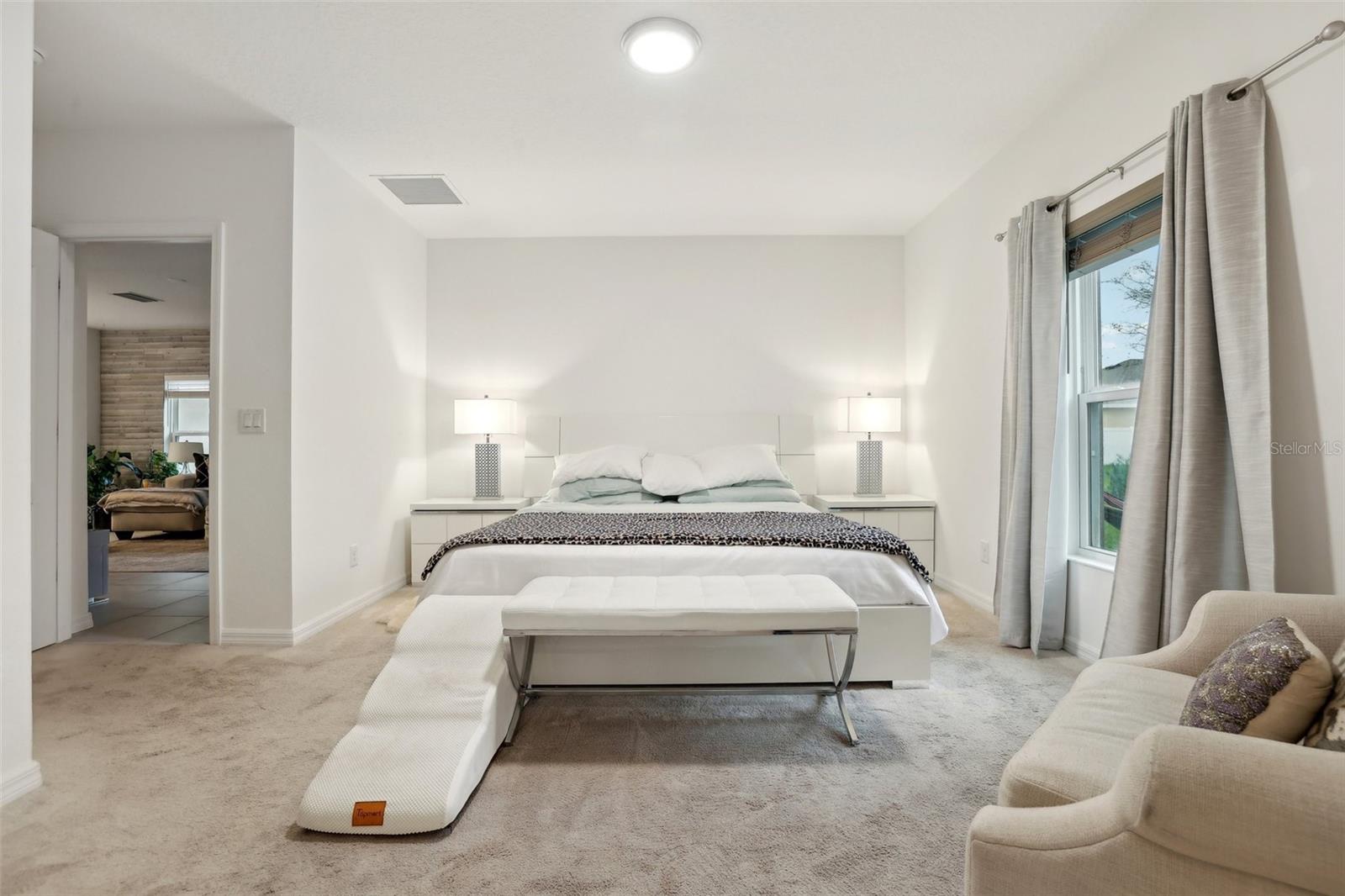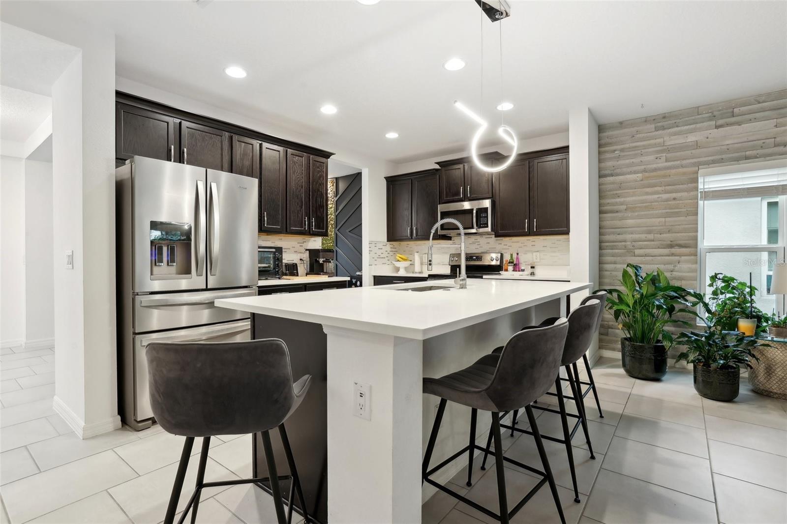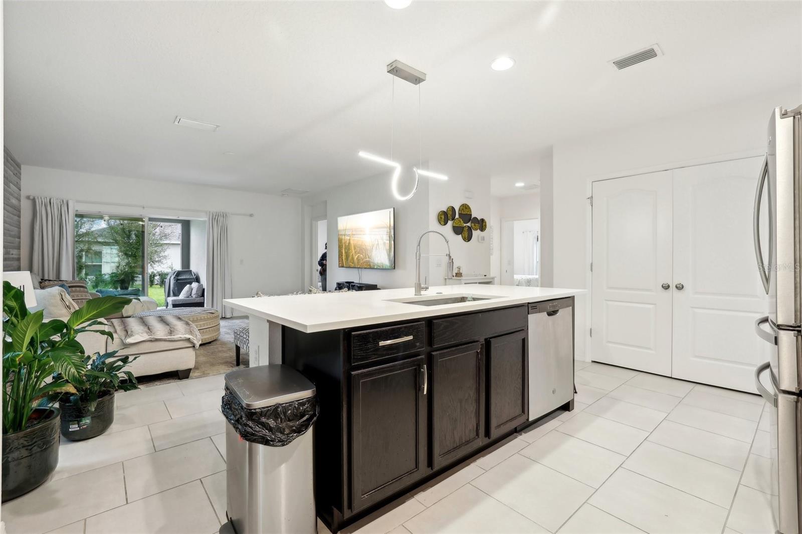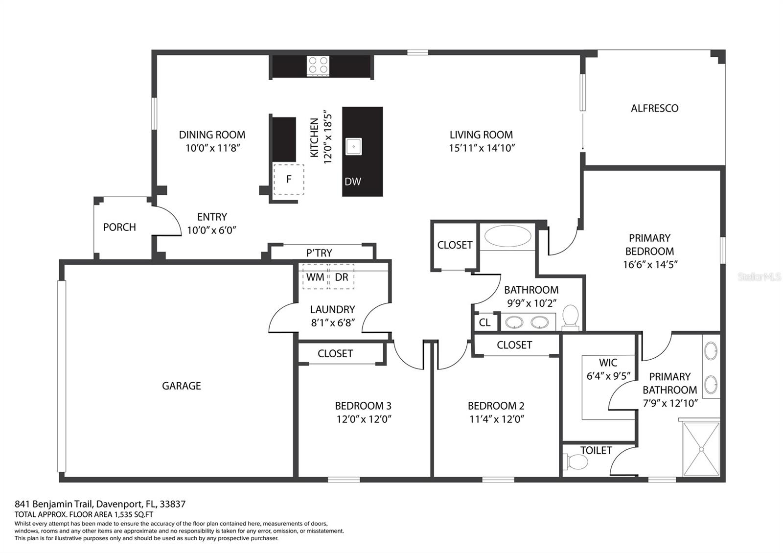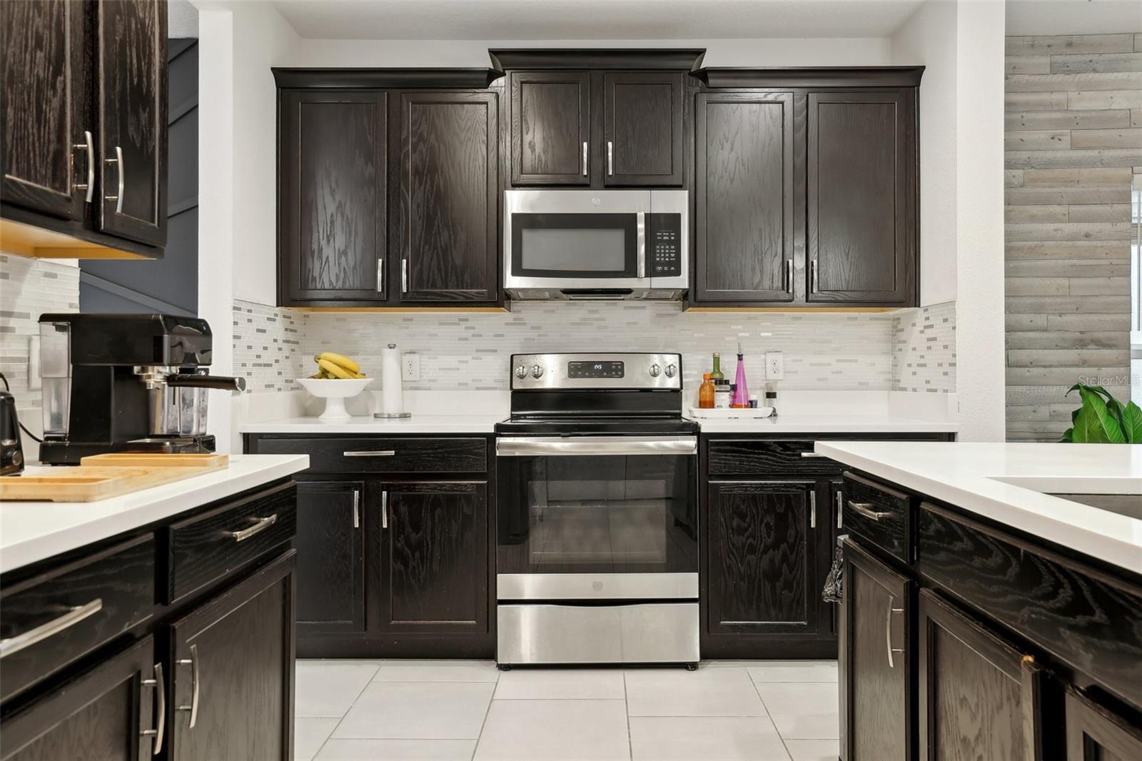Welcome to this beautiful 3-bedroom, 2-bathroom home located in the gated community of Williams Preserve. Boasting 1,704 sq ft of well-designed living space, this home has been well maintained by the owners and offers comfort and style throughout. As you step inside, you are immediately greeted by the formal dining room featuring an eye-catching accent wall that adds a touch of sophistication. The kitchen and living room seamlessly connect, creating an open-concept floor plan perfect for both entertaining and everyday living. The kitchen offers a large center island with solid surface countertops, and all stainless steel appliances. The primary bedroom is generously sized and includes an en suite bathroom complete with dual sinks, a large walk-in glass-tiled shower, and a walk-in closet. Outside, enjoy your covered patio that overlooks the expansive backyard, offering plenty of space for outdoor activities or simply unwinding. Situated just minutes from Disney and other popular attractions, this home offers the perfect blend of tranquility and convenience. With a 2-car garage and a prime location within a gated community, this home is truly a gem!
