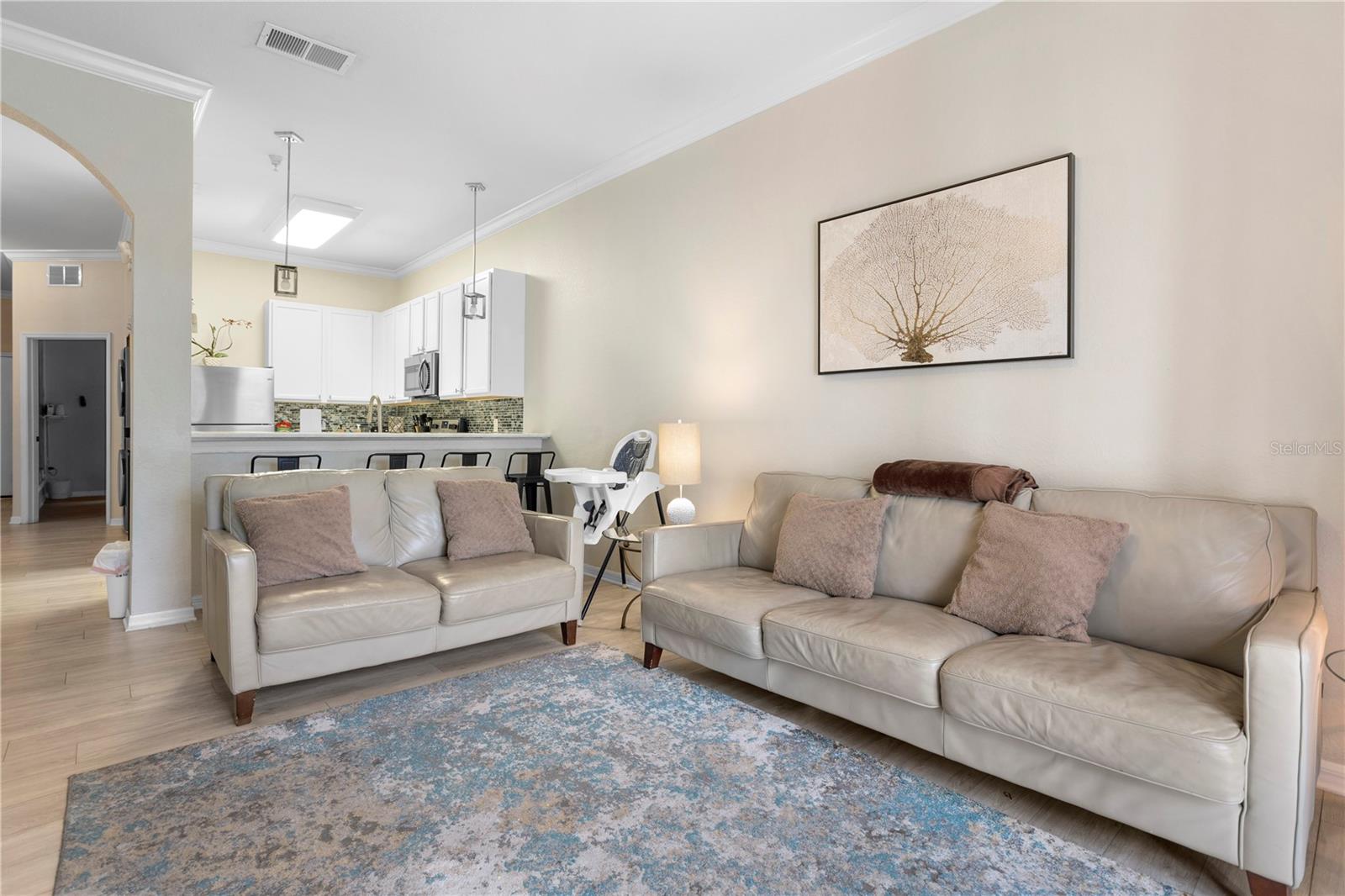 Perfect investor opportunity! FULLY FURNISHED 3 Bedroom, 2 Bathroom ground floor condo unit located within the beautiful, gated Bahama Bay Resort. Step inside to the spacious, open floorplan with beautiful plank flooring and crown moulding running throughout the home, and tile in the wet areas. The updated kitchen is equipped with stainless steel appliances, stone countertops, tile backsplash, 32” cabinets and a breakfast bar overlooking the family room. A dinette area is also conveniently located right off of the kitchen. A private, screened-in patio allows residents to enjoy outdoor views in a comfortable setting. Residents of Bahama Bay Resort have access to a variety of amenities, including a clubhouse, fitness center with sauna, multiple pools and spa, tennis and basketball courts, shuffleboard, and paved nature trails for outdoor activities. Also, an on-site restaurant and bar for convenient dining experiences, and a full-sized fishing dock on Lake Davenport for residents who enjoy fishing! Conveniently located near major Orlando theme park attractions, Disney World, shopping centers, and restaurants, offering residents easy access to a variety of entertainment and dining options. This condo presents an excellent opportunity for those seeking a vacation home or a short-term rental investment in a well-appointed community with a range of amenities. For Investors or Vacation Homeowners, this property has an 8.9% cap rate at the current price, a Cash-on-Cash Return of 10.82%, and has made over 121K in the past two years! Don’t wait - Schedule a showing today!