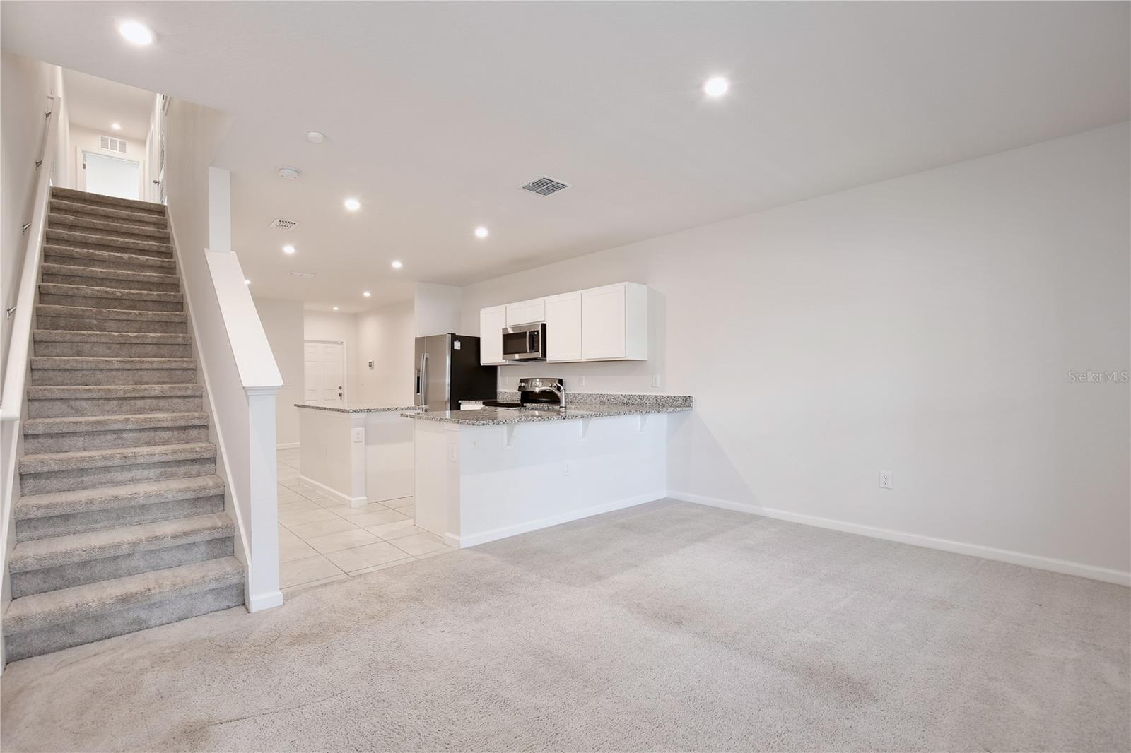 Welcome to your dream townhouse nestled in the charming Magnolia Grove community, an idyllic blend of comfort and style that's perfect for everyone from first time homebuyers to savvy investors alike! This delightful residence features a one car garage and a light and bright floor plan bathed in neutral colors, creating a canvas for your personal touch. Upon entering, the inviting foyer ushers you into a dining area that seamlessly transitions to the heart of the home, the kitchen. Tile floors adorn both the dining room and kitchen, enhancing the clean, modern vibe while also providing convenience for guests with access to a half bath. The kitchen is a chef's dream featuring sleek stainless steel appliances, chic shaker cabinets, lustrous granite countertops, a central island for meal prep, and bar top seating for casual dining. The adjacent living room is the perfect space to unwind and offers access to the enclosed patio, an ideal spot for savoring your morning coffee or hosting a weekend BBQ. Upstairs, the serene primary suite awaits, a generously sized sanctuary with a luxurious en suite bath equipped with dual vanities, a beautifully tiled shower, and a spacious walk in closet. Two additional bright and inviting guest bedrooms welcome family and friends, complemented by a full guest bath with a tub/shower combo. Outdoors, enjoy a fenced backyard overlooking a grassy area framed by towering trees. Located with quick access to highway 27 and I-4, your new home is minutes from world famous attractions like Walt Disney World and Legoland. You’ll also be close by AdventHealth, Publix, shopping at Target and HomeGoods, and a plethora of dining options. Experience this home virtually through the 3D tour and take the next step to make it yours by scheduling a showing today.