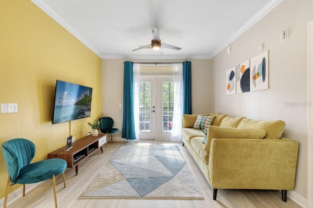 Welcome to the gated community of Tuscana, located right off I4 in ChampionsGate in Davenport, where this top-rated 4.83 STAR RATED Airbnb is located at 1371 Tuscan Terrace, #3203. This beautifully REMODELED, FULLY FURNISHED 2-bedroom, 2-bathroom condominium is designed with both comfort in mind, featuring HANDICAP ACCESS to accommodate all guests. The unit boasts NEWER FURNITURE and NEW LUXURY PLANK VINYL FLOORING, that's right, NO CARPET, PLUS AC & WATER HEATER BOTH 4 YEARS OLD, ensuring a luxurious and convenient stay! As you enter, you'll be greeted by a charming screened porch, perfect for relaxing and soaking in the Florida lifestyle. The interior showcases a spacious living area with contemporary decor, creating a warm and inviting atmosphere. The fully equipped kitchen features STONE COUNTERTOPS and NEW STAINLESS STEEL APPLIANCES, and all the essentials needed to prepare your favorite meals. Each bedroom is thoughtfully furnished to provide a restful retreat after a day of exploring the nearby attractions. The master suite includes a comfortable bed and an en-suite bathroom, while the second bedroom offers ample space and comfort. Tuscana Resort offers an array of resort-style amenities. Guests can enjoy a HEATED SWIMMING POOL WITH HOT TUB AND CABANAS, FITNESS CENTER AND CLUBHOUSE,THEATER, RESTAURANT & BAR, all set within beautifully landscaped grounds. The resort's prime location provides easy access to Orlando's world-famous theme parks, shopping centers, and dining options, making it an ideal choice for both relaxation and adventure. Whether you're seeking a comfortable home near Orlando's attractions or an investment opportunity in the thriving rental market, this condo offers it all. Experience the perfect blend of luxury, convenience, and accessibility at this exceptional Airbnb property.