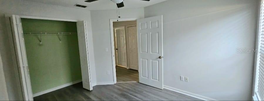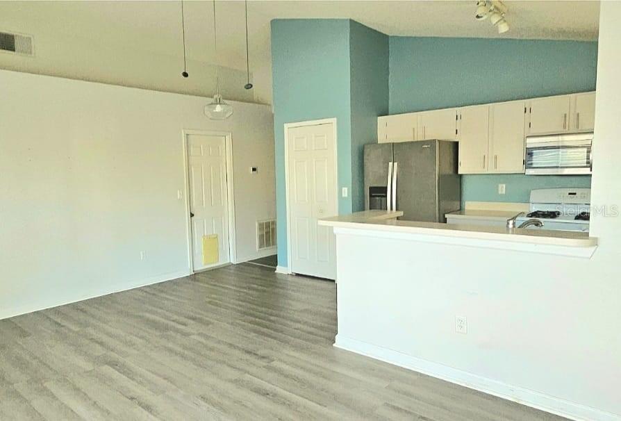 This beautifully maintained 3-bedroom, 2-bathroom home is located in a secure, gated community, offering both privacy and convenience with easy access to stores, restaurants, and I-4. Featuring hardwood floors throughout, the home has been freshly painted both inside and out within the past year. New blinds, ceiling fans, and modern light fixtures add to the updated appeal. The open-plan kitchen showcases sleek white cabinetry, complemented by a spacious pantry for ample storage. The master bedroom features an expansive walk-in closet and a large en-suite bathroom, providing a luxurious retreat. Additional storage space is available with two hallway closets. One of the standout features of this property is its generous yard, offering the new owner endless possibilities to design their own backyard paradise, perfect for relaxation and entertaining.