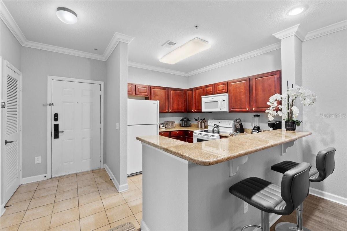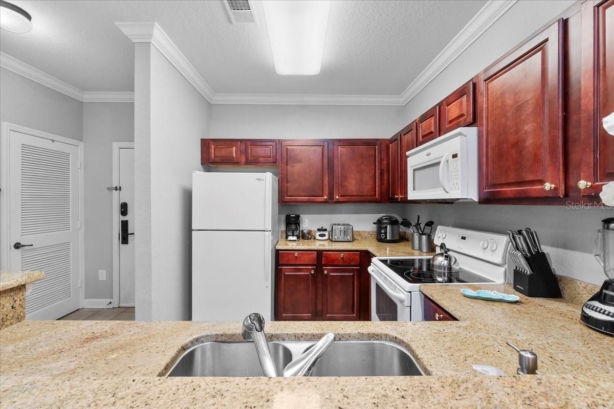 Income producing 2bed/2bath renovated unit. The unit features tile flooring in the kitchen and bathrooms, luxury vinyl plank flooring in the living room, dining room and bedrooms. Kitchen features granite countertops, double drop sink, 32in wood feel cabinets. The living room overlooks the balcony where evening coffee breaks are a sight to see. Bedrooms are spacious with amble closet space. Bathrooms have plenty of countertop space, spacious walk-in showers. The community features a beautiful pool, movie theater, restaurant, gym and laundry room.