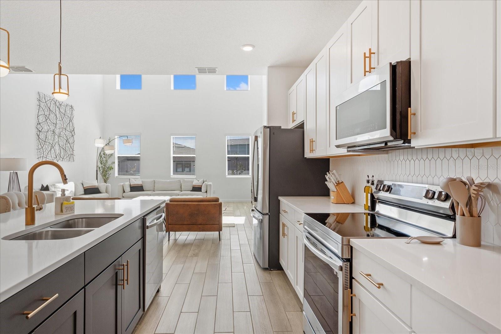 Welcome to 2099 Derwent Drive, nestled in the highly desired community of Glen At West Haven. This exceptional 3,931 sq ft home is positioned perfectly on lot 82 of .15 acre, built by Ashton Orlando Residential. The home features 6 spacious bedrooms, 4 full bathrooms, one half bath, bonus room and an oversized 2 car garage. Step in from the covered entry way to a welcoming entrance, featuring a formal dining room, with extended ceiling height. Nearly new, bright, natural luxury title plank floors throughout the lower level areas and neutral color carpet on the second level, adding to the fresh modern appeal. The chef inspired kitchen is a true standout featuring white wood cabinetry, upgraded quartz countertops, and upgraded stainless steal appliances with a gourmet configuration. There is a breakfast bar that seats four comfortably for casual dining. The kitchen flows effortlessly into the breakfast nook and family room, which is enhanced by vaulted ceilings and natural tones throughout. Two bedrooms are on the first level with one full bath and one half bath, mudroom and a lovely covered rear Lani. Make your way upstairs and you will encounter an extra large master suite with huge walk in shower, closet, also dual sinks. There are three additional bedrooms with ample room, along with two bathrooms. Large laundry room. Dedicated game room in loft area. The Glen At West Haven is a quiet place to call home and still be minutes away from Disney World, downtown Orlando, MCO, I4, upscale shops, malls and outlets, and the coasts. Call today for a private tour.