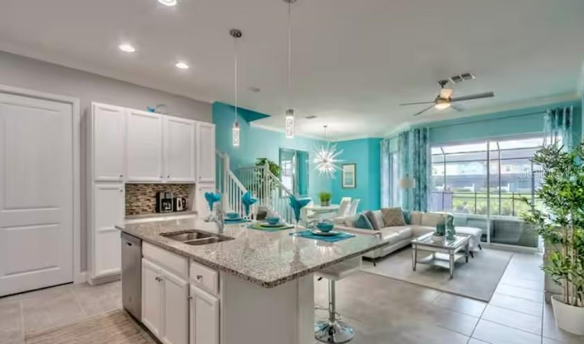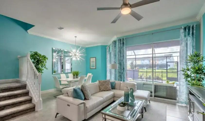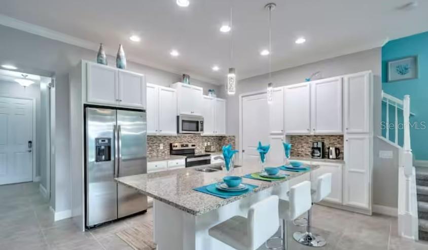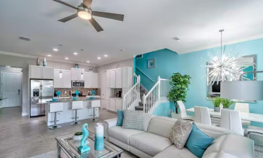 Welcome to this beautifully designed 5-bedroom, 4- full bathrooms, 2 half baths townhome with pool located in the highly sought-after Festival community! This home offers resort-style living with an abundance of amenities for your enjoyment. Step into a unique opportunity to own a gorgeous home with the added bonus of an established, fully operational Airbnb business. This turnkey property offers not only a place to call home but a chance to generate consistent income from day one. Prime Location: Nestled in the heart of the Disney area, this home offers easy access to local attractions, parks, shopping, dining, and public transportation, making it a highly desirable spot for short-term vacation rentals. Fully Furnished and Ready for Guests: All furnishings and amenities necessary for a successful Airbnb are included, from chic décor to high-end appliances, ensuring your guests have an unforgettable stay. Established, High-Review Airbnb Business: With consistently high ratings on the Airbnb platform, this property is a proven money-maker. The current owner/host have built a reputation for providing exceptional guest experiences, and you can continue this success. The spacious master bedroom is conveniently located on the first floor, while the additional bedrooms are situated on the second floor, providing privacy and separation. Throughout the home, you'll find luxurious vinyl plank flooring, adding both style and durability. No Carpet. The modern kitchen is a chef’s dream, featuring sleek stainless steel appliances, elegant Quartz countertops, and pendant lighting. It seamlessly flows into the dining and living areas, creating an open-concept layout perfect for entertaining. Sliding glass doors lead you directly to your private, enclosed lanai, complete with a small pool for ultimate relaxation. Each bedroom is equipped with ceiling fans, ensuring comfort year-round. Both guest bathrooms include dual vanity sinks and walk-in showers, adding a touch of luxury to your daily routine. Private Outdoor Oasis: Step outside to a large back patio with a heated pool and a spacious screened-in enclosure—ideal for year-round enjoyment. The Festival community offers exceptional resort-style amenities, including a stunning pool, splash pad, fitness center, miniature golf course, and a beach volleyball court, making it the perfect place to live and play. Don’t miss out on this fantastic opportunity to own a piece of paradise. Schedule your showing today!