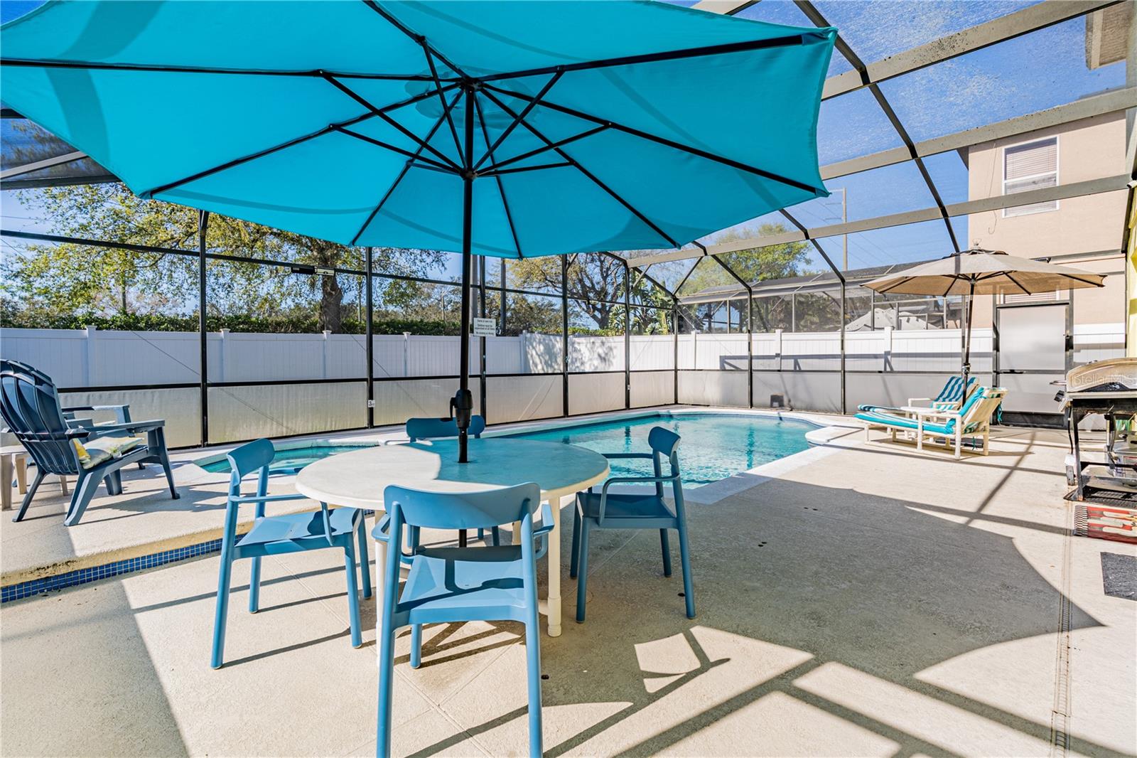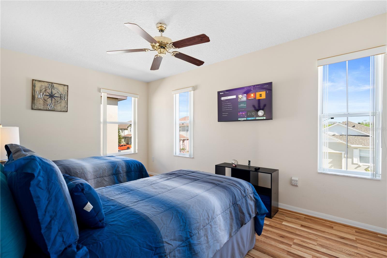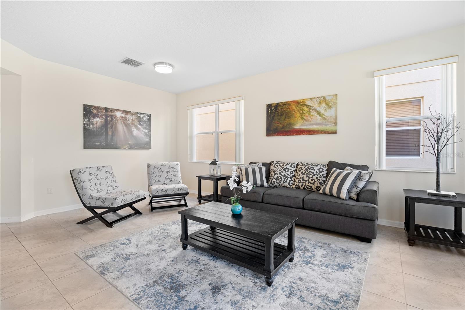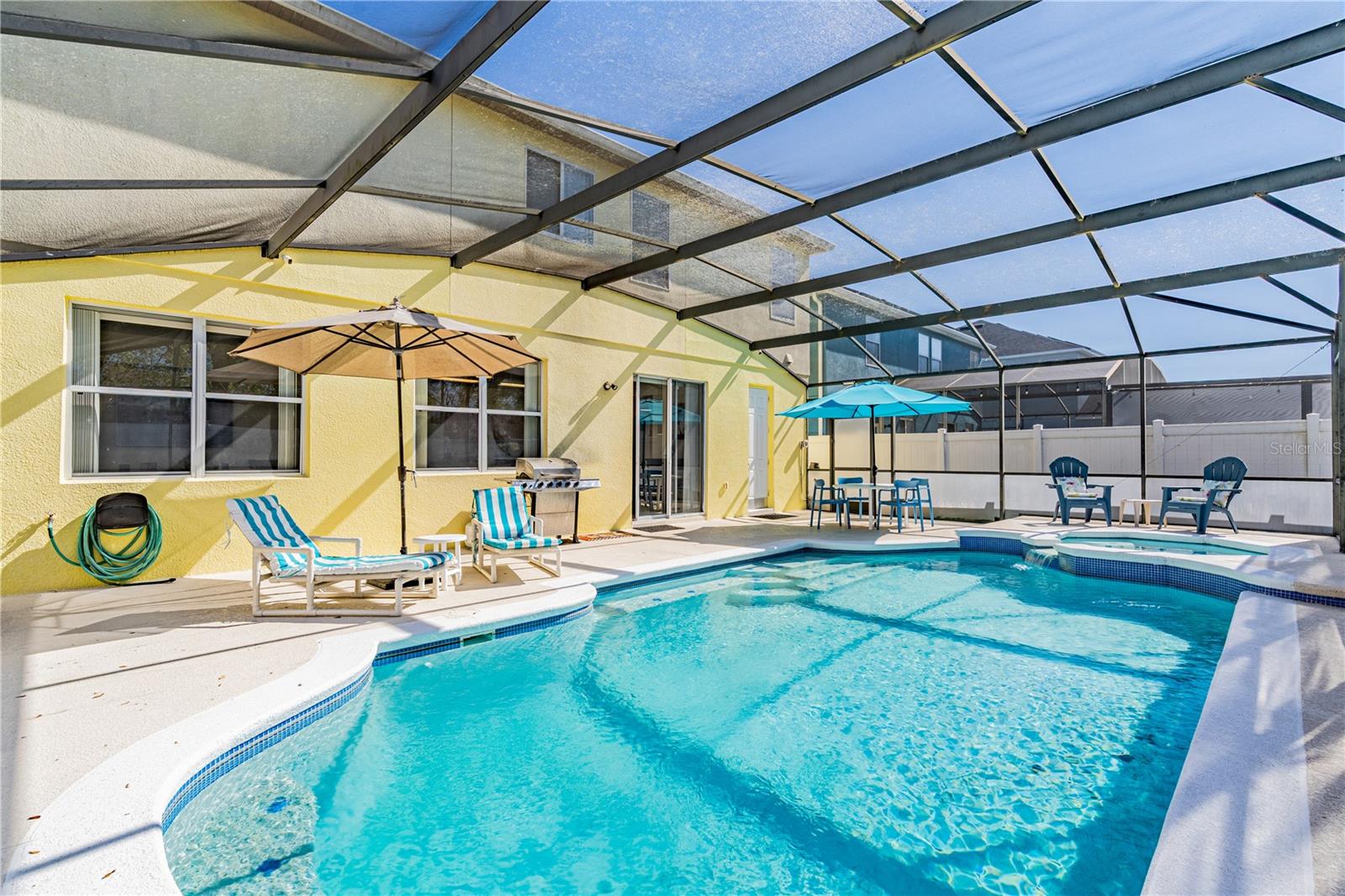 Beautiful Fully Furnished Two-Story Home — Move-In Ready for a Permanent Residence or Short-Term Rental Investment! This spacious home features a modern kitchen, ceramic tile flooring, and wood floors throughout the second story. The large master bedroom offers a luxurious en-suite bathroom with a separate shower, soaking tub, and dual walk-in closets. A second bedroom also features a private en-suite bath, while two additional bedrooms share a convenient Jack-and-Jill bathroom — perfect for family and guests. Enjoy year-round fun with a heated pool and spa, plus a cozy game room with carpet flooring. Solar panels are installed and must be assumed by the buyer, providing energy efficiency and cost savings. Located near world-famous theme parks, restaurants, shopping malls, Orlando airport, as well as hospitals and medical centers, this home offers both convenience and lifestyle. The south-facing pool and spa ensure privacy and sunshine all day long — ideal for entertaining or relaxing. Don't miss this incredible opportunity! Schedule your private showing today!