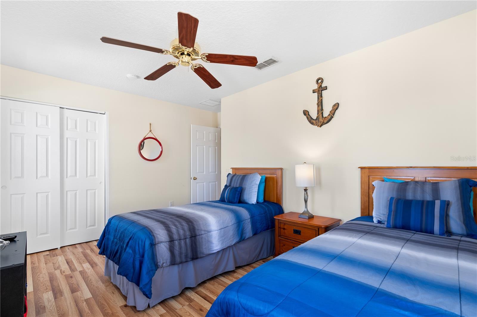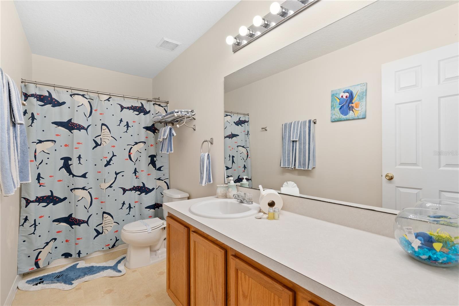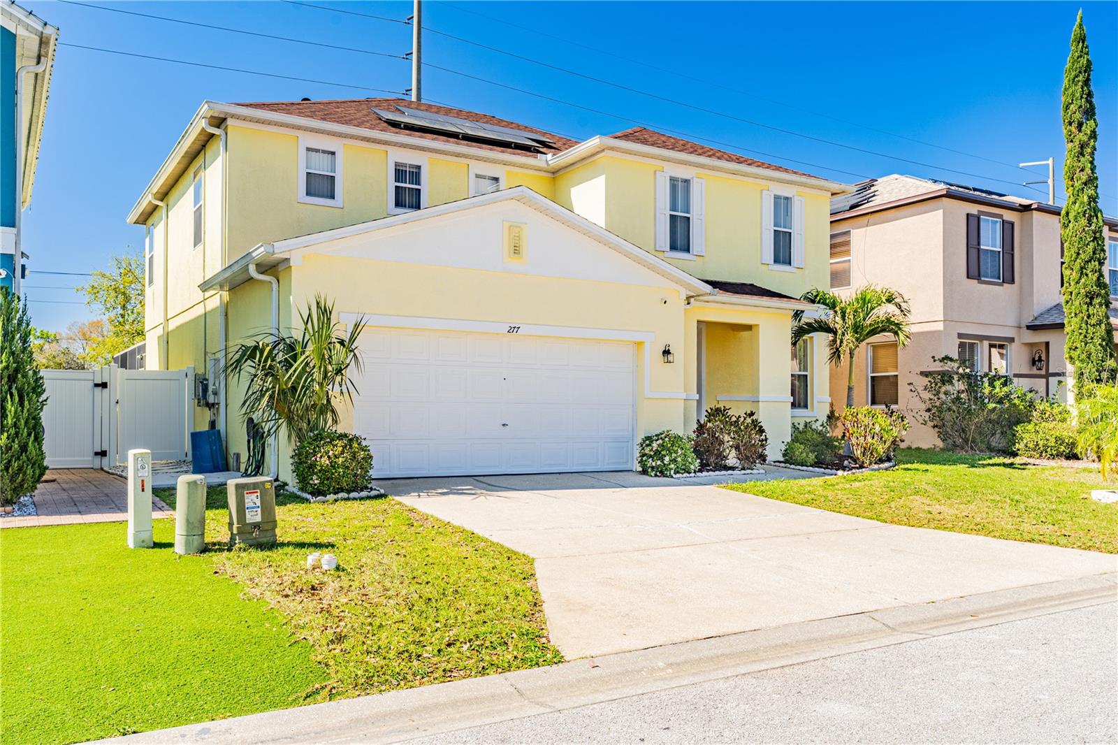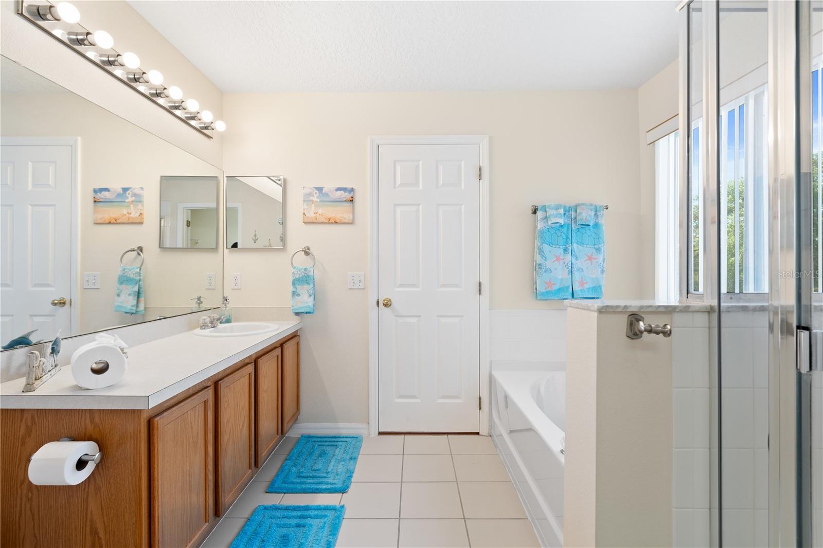 Beautiful Fully Furnished Two-Story Home — Move-In Ready for a Permanent Residence or Short-Term Rental Investment! This spacious home features a modern kitchen, ceramic tile flooring, and wood floors throughout the second story. The large master bedroom offers a luxurious en-suite bathroom with a separate shower, soaking tub, and dual walk-in closets. A second bedroom also features a private en-suite bath, while two additional bedrooms share a convenient Jack-and-Jill bathroom — perfect for family and guests. Enjoy year-round fun with a heated pool and spa, plus a cozy game room with carpet flooring. Solar panels are installed and must be assumed by the buyer, providing energy efficiency and cost savings. Located near world-famous theme parks, restaurants, shopping malls, Orlando airport, as well as hospitals and medical centers, this home offers both convenience and lifestyle. The south-facing pool and spa ensure privacy and sunshine all day long — ideal for entertaining or relaxing. Don't miss this incredible opportunity! Schedule your private showing today!